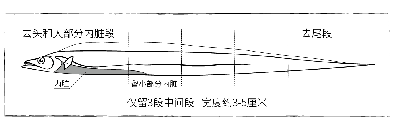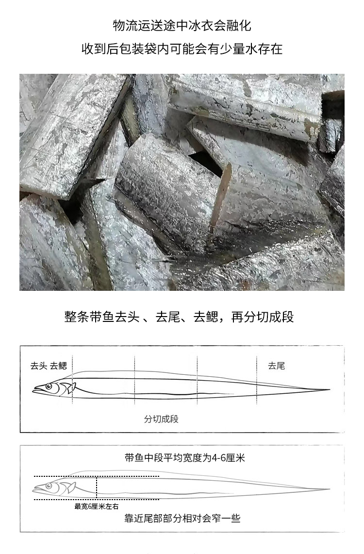 实心去肚段是指选取带鱼中断部位, 由于带鱼内脏比较长,每包里面会有1/3带鱼段会带有细肚段,清洗干净即可,不影响正常食用。