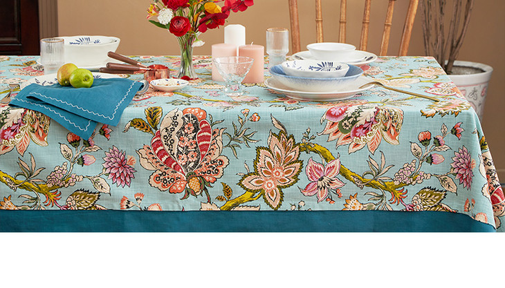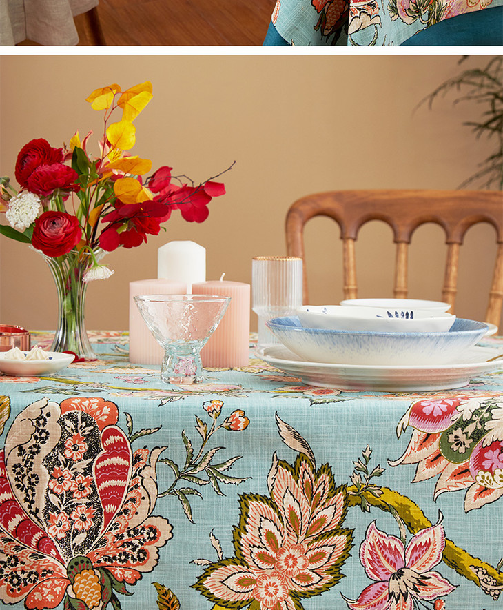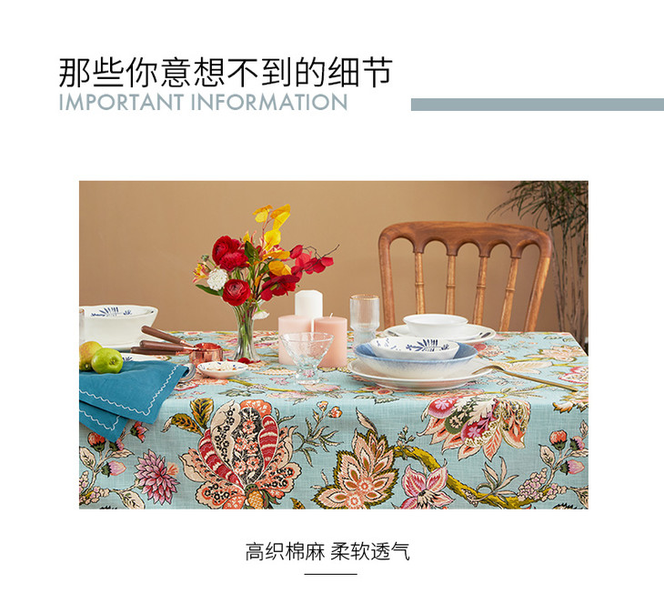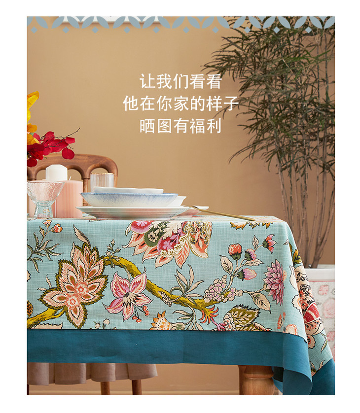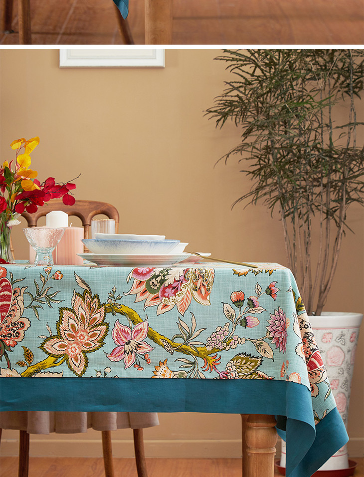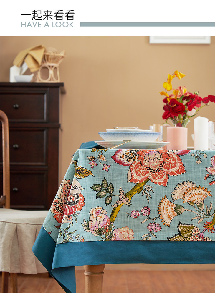 桌布美式田园桌布餐桌布艺蓝色银莲桌布茶几布盖布