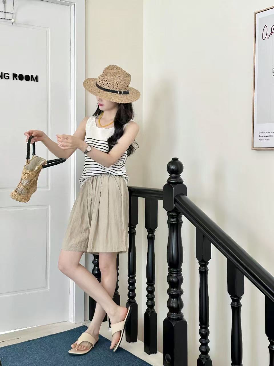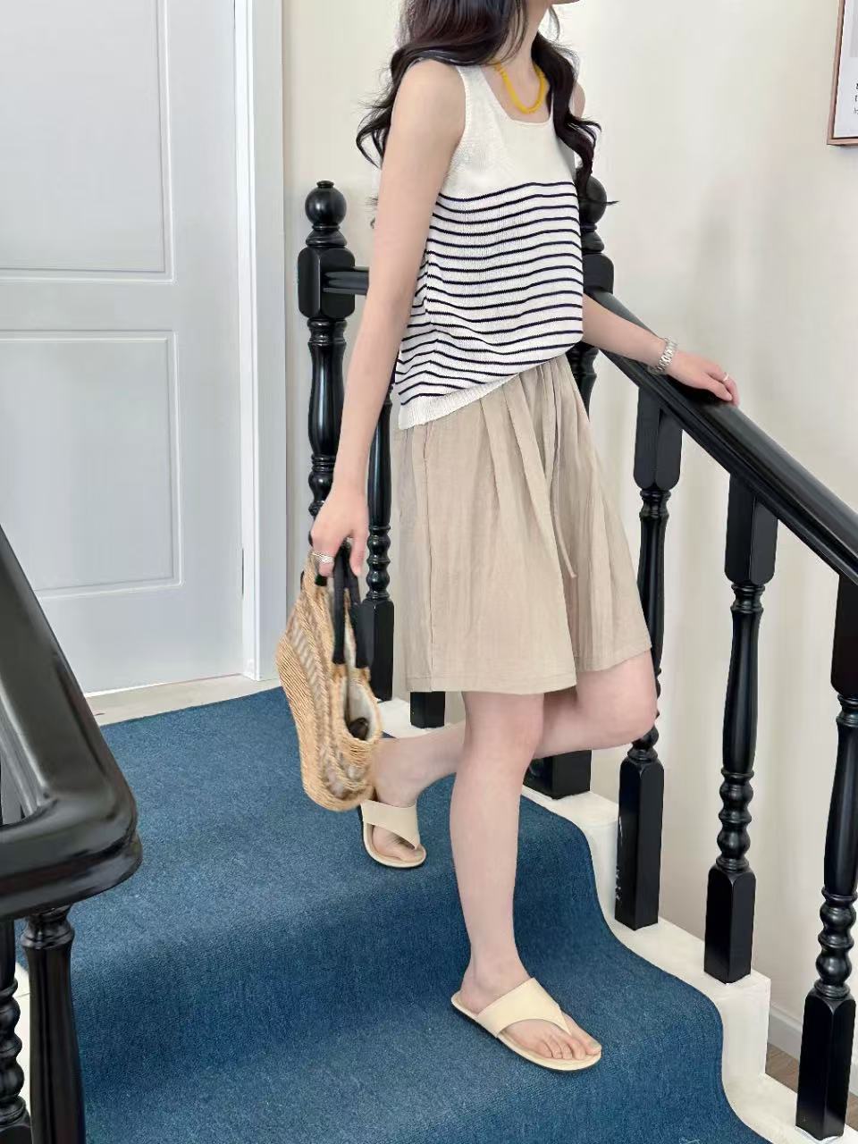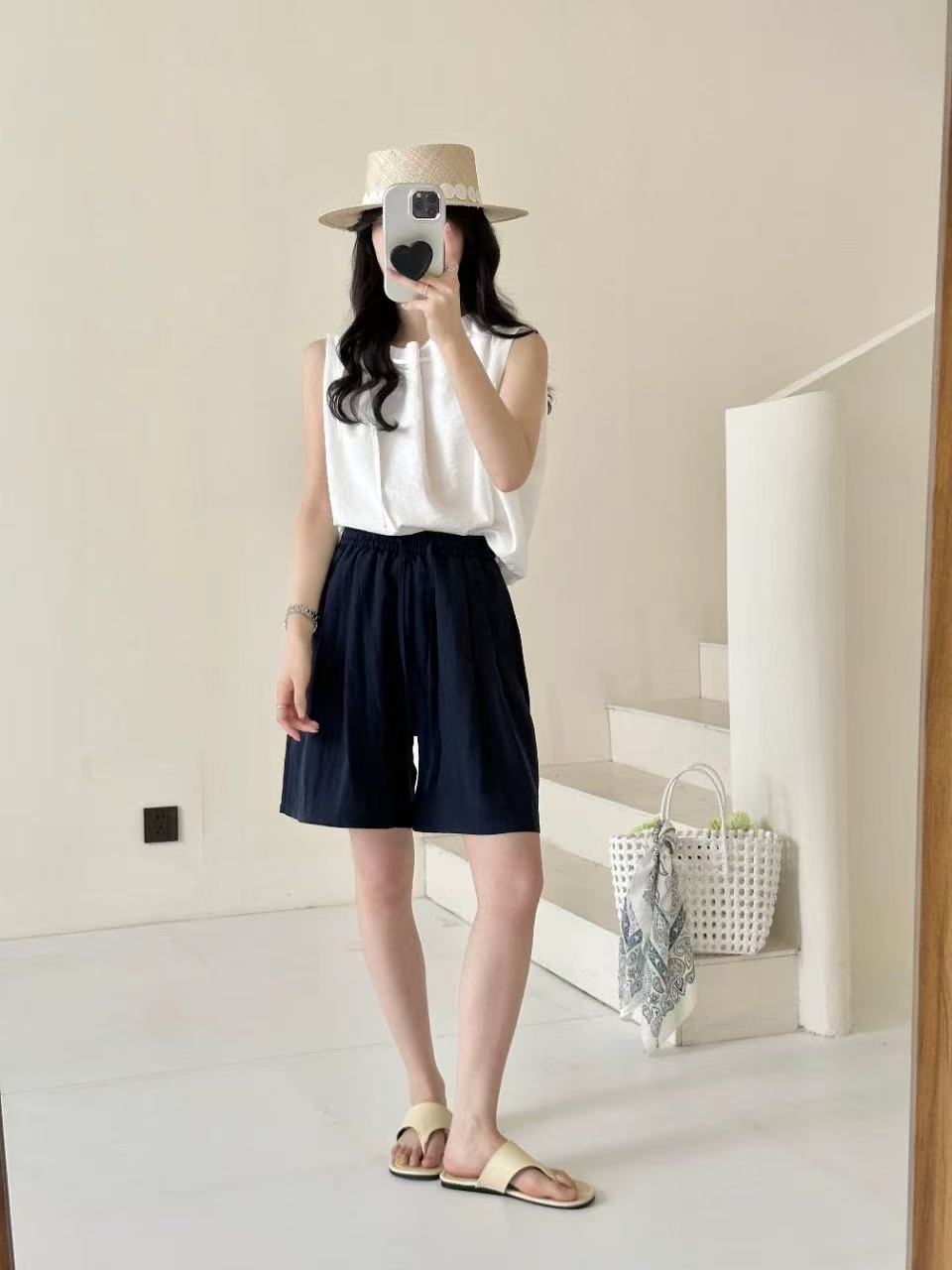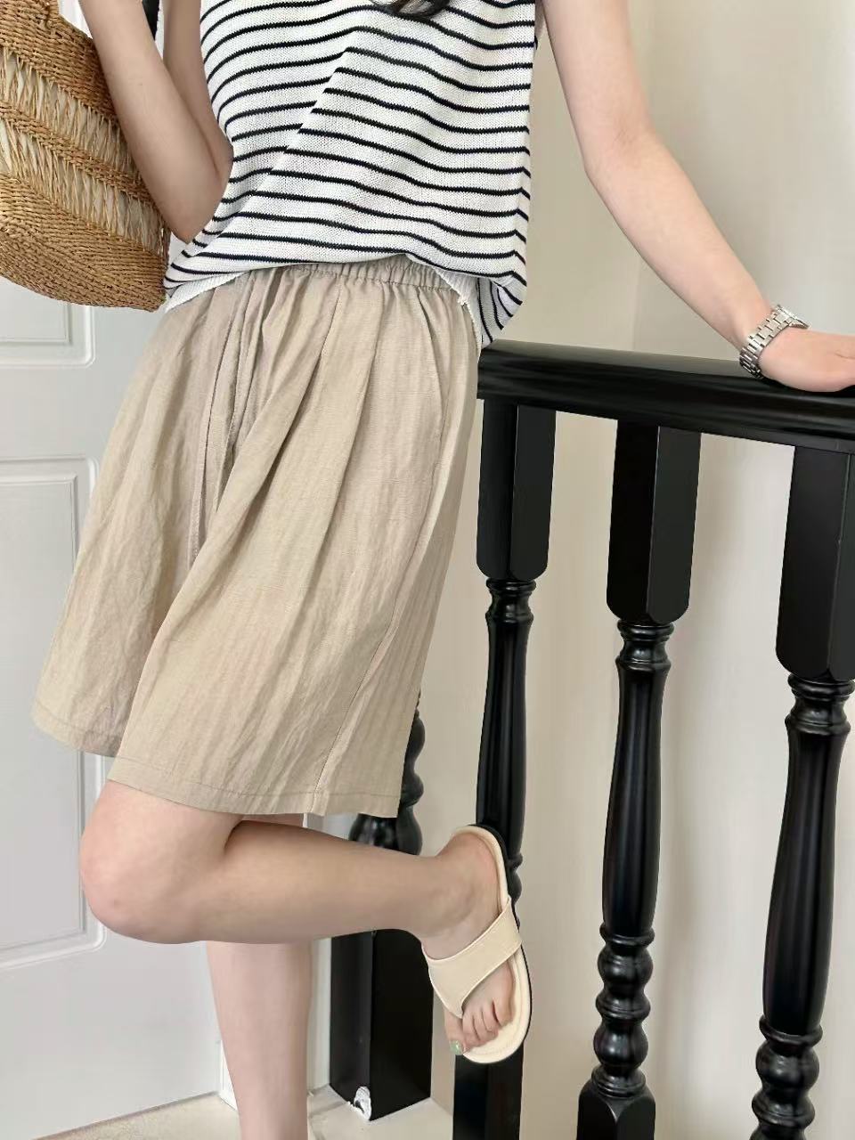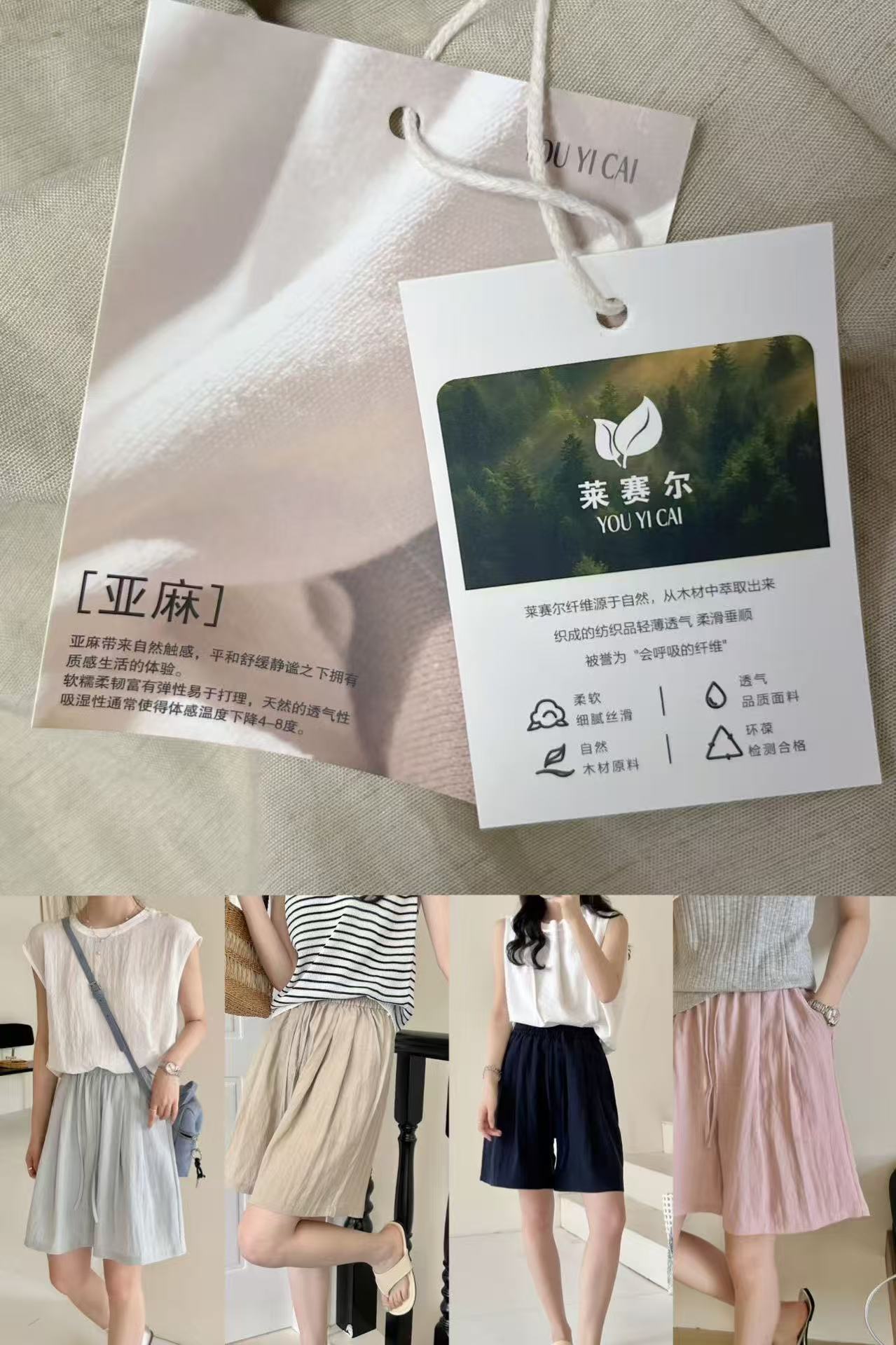 会呼吸的面料{短裤2025}C018天丝亚麻莱赛尔面料夏季透气短裤-喜出