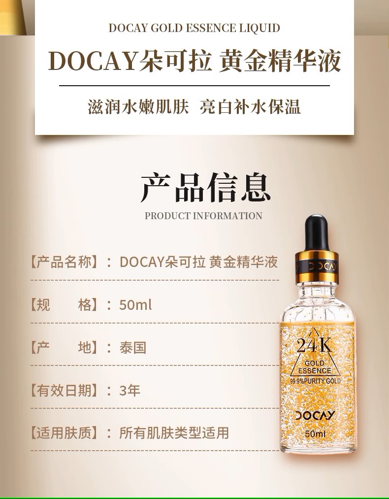 泰国Docay24K黄金浓缩胜肽精华液50ML滋润水嫩肌肤亮白补水保湿