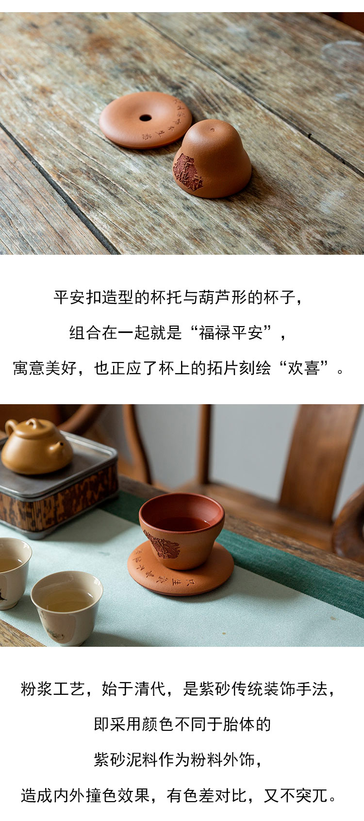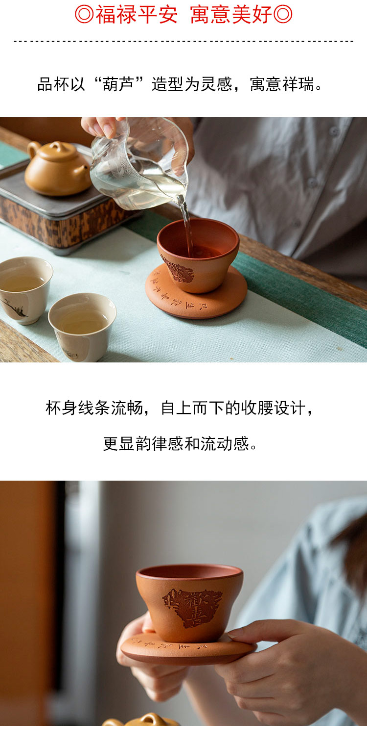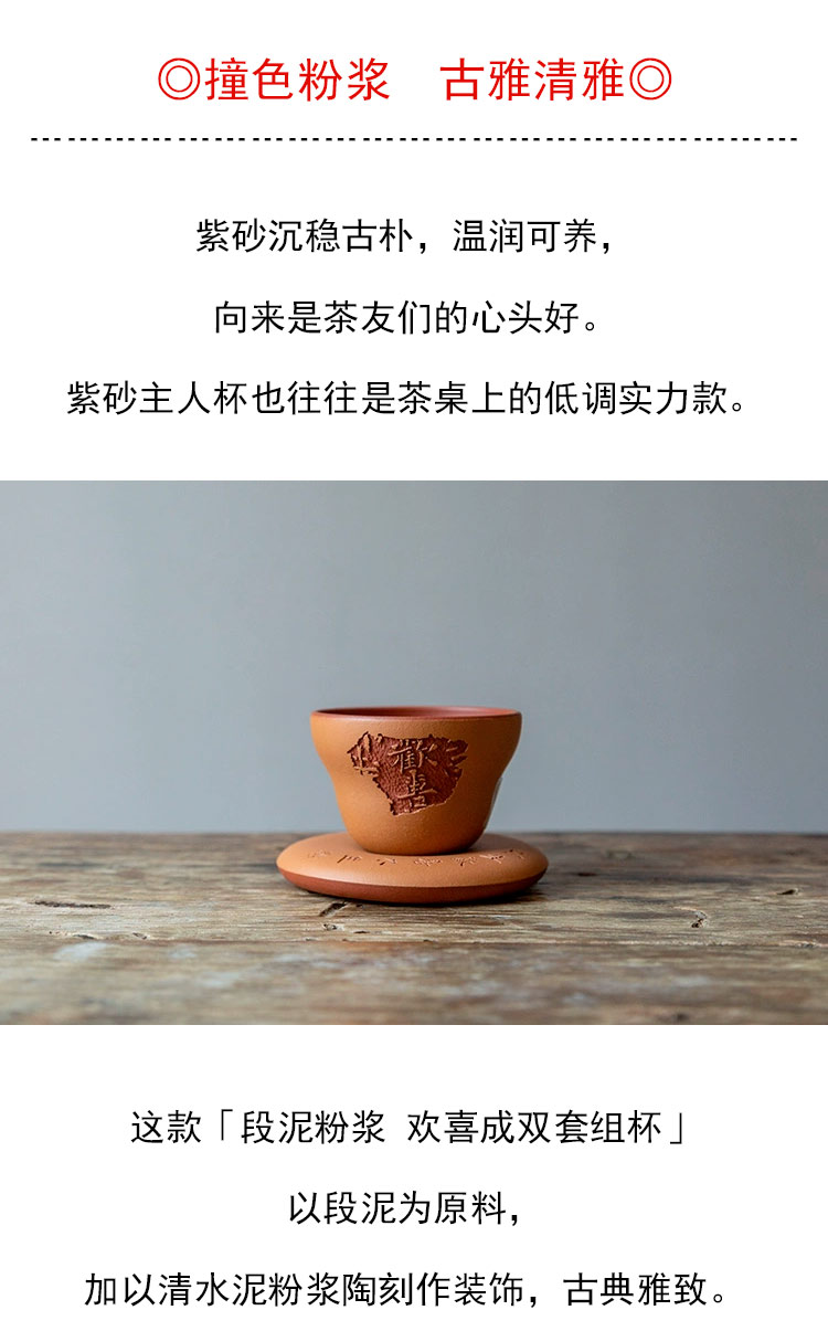 茶香记 段泥粉浆欢喜成双套组杯130ml紫砂杯茶杯葫芦吉祥灵动茶具