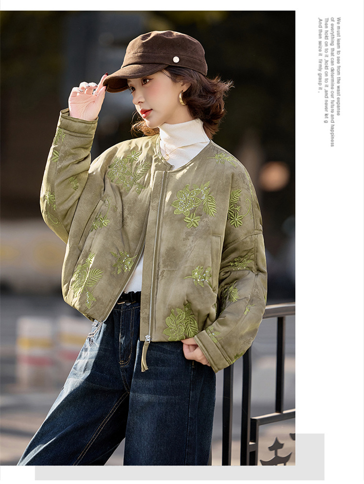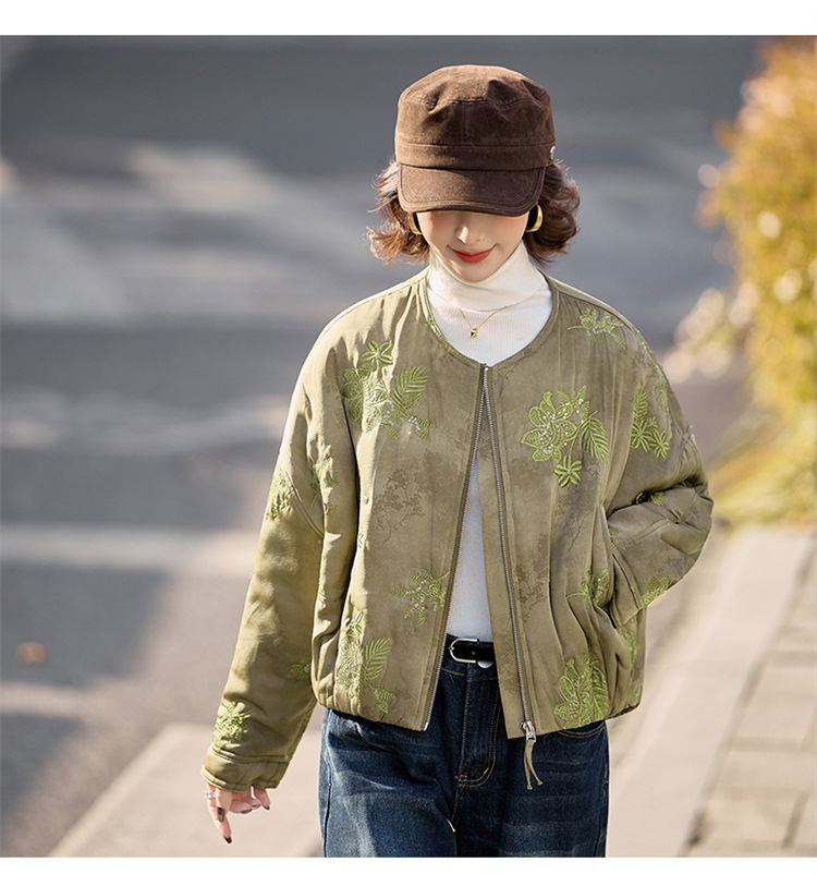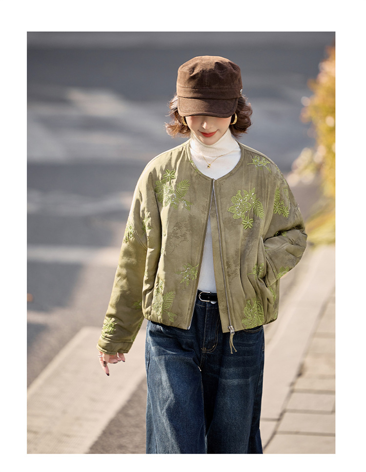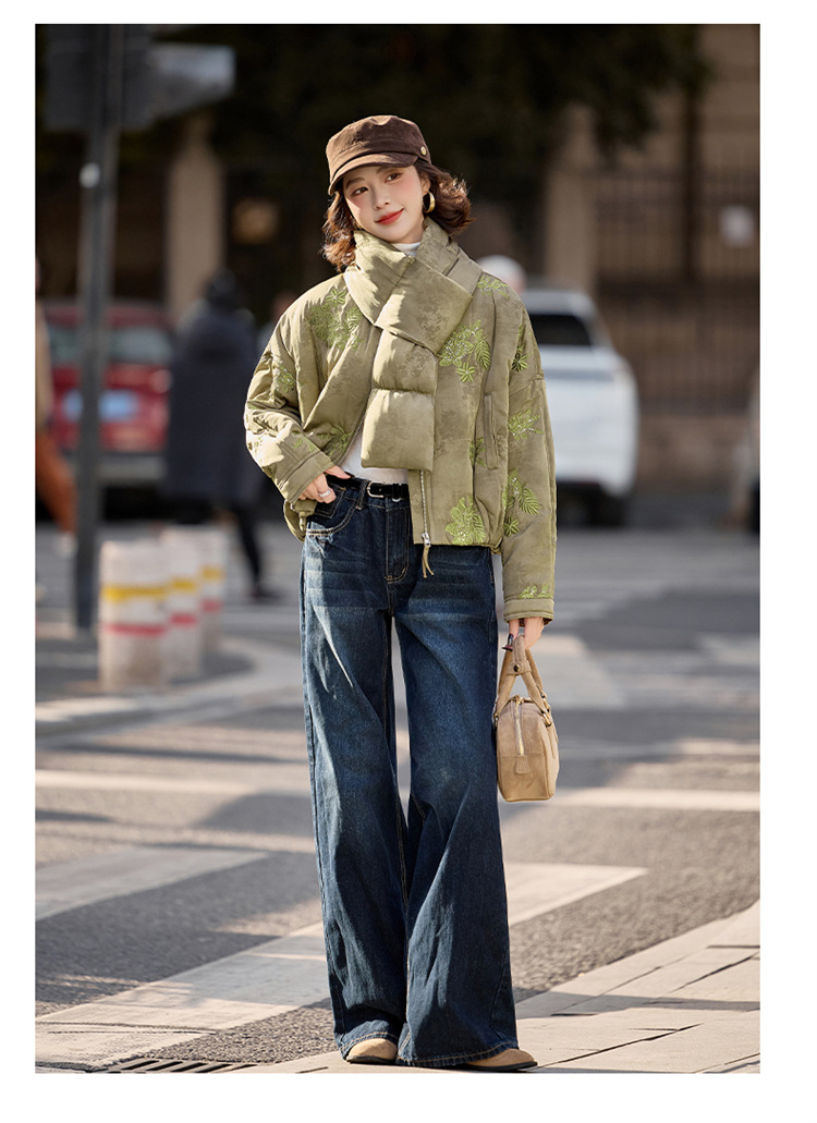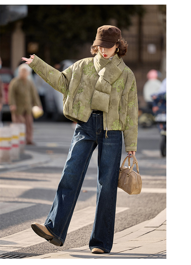 HR SYY889复古风棉衣外套时尚气质优雅刺绣短款棉服配围巾 商品图0