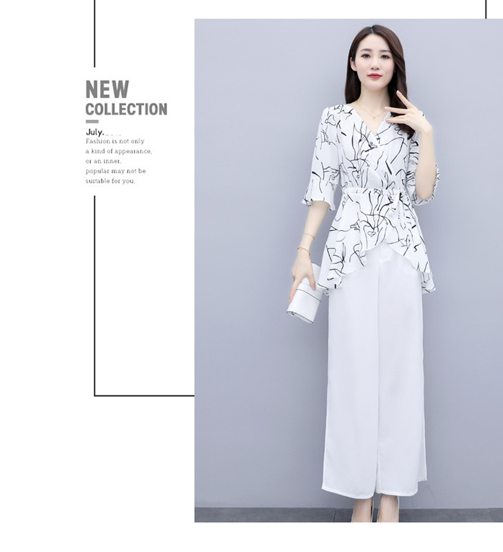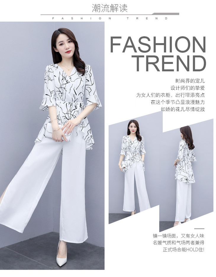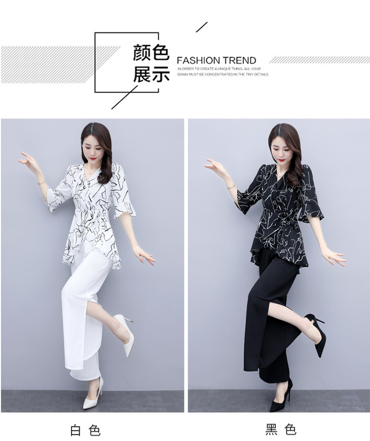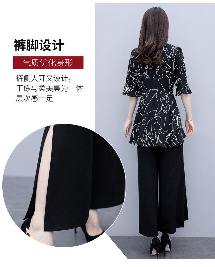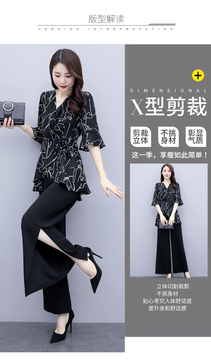 WZNH-YKSL6009新款大码显瘦女神范阔腿裤套装女时尚气质两件套