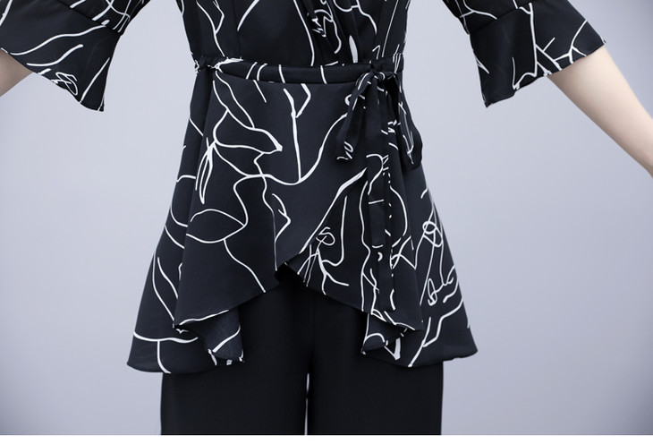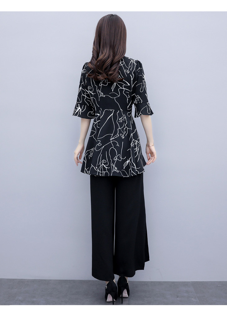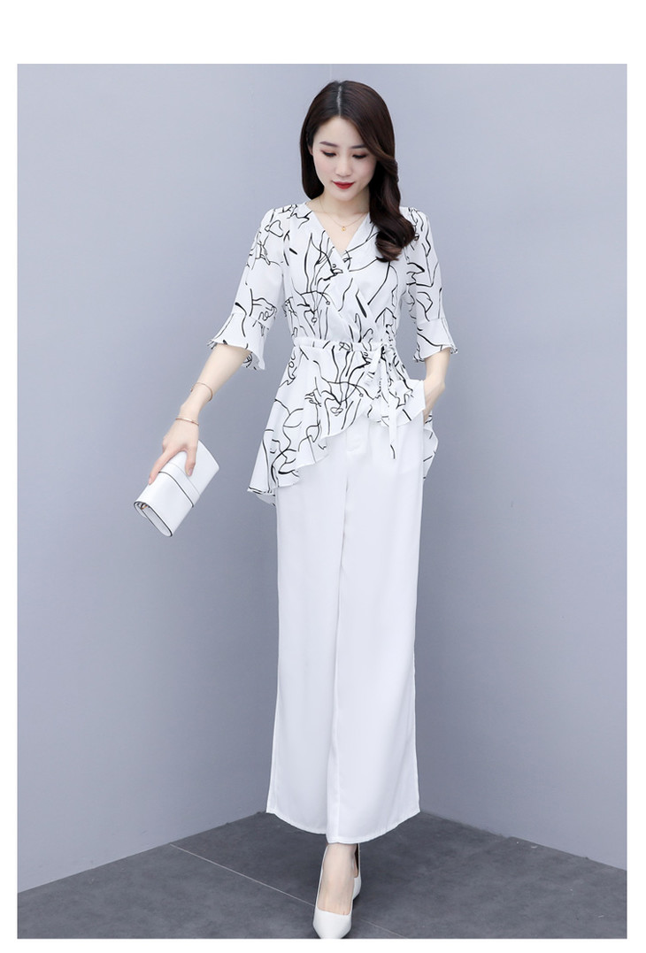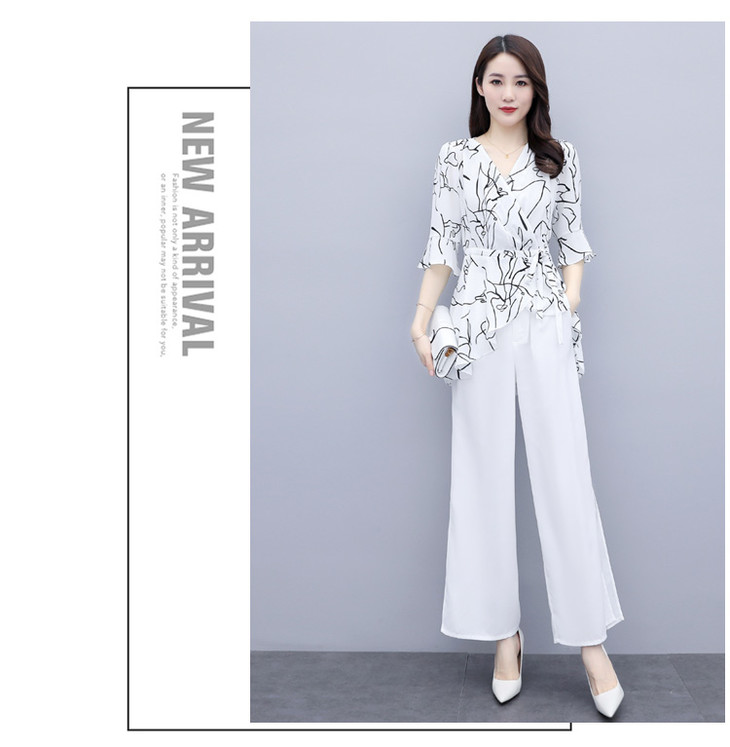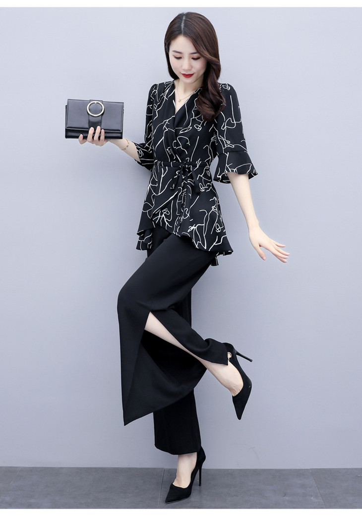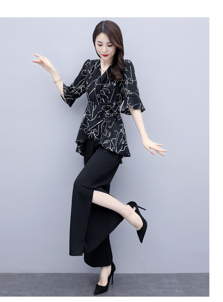 WZNH-YKSL6009新款大码显瘦女神范阔腿裤套装女时尚气质两件套