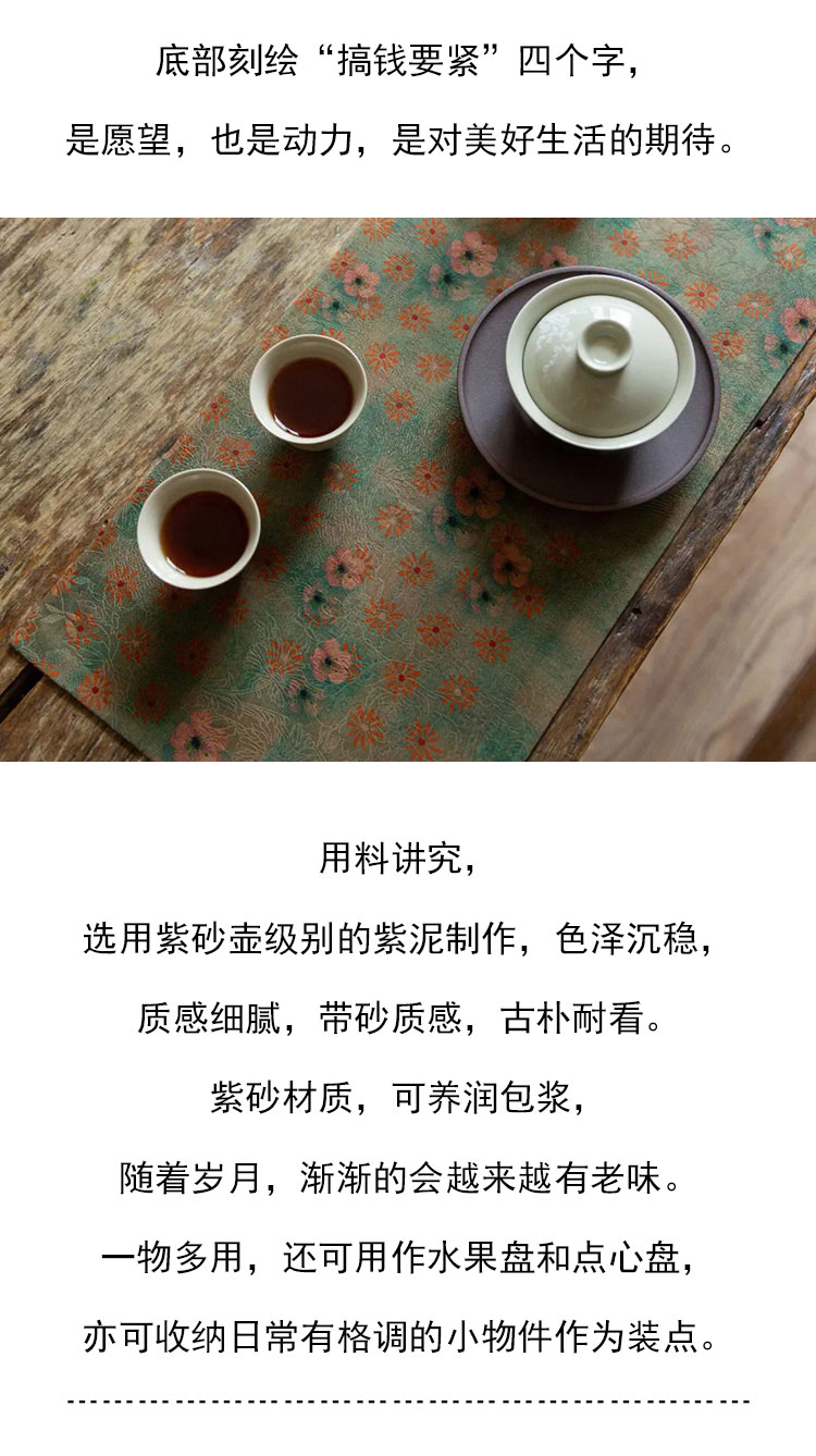 茶香记 紫泥斗笠干泡盘壶承文创刻绘搞钱要紧紫砂茶盘茶桌零配