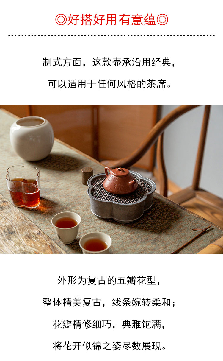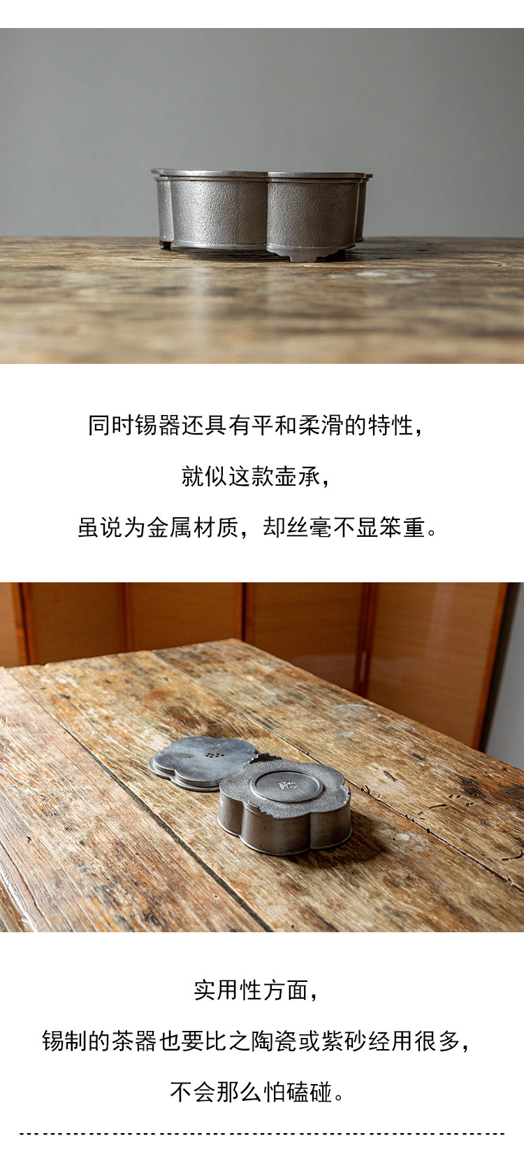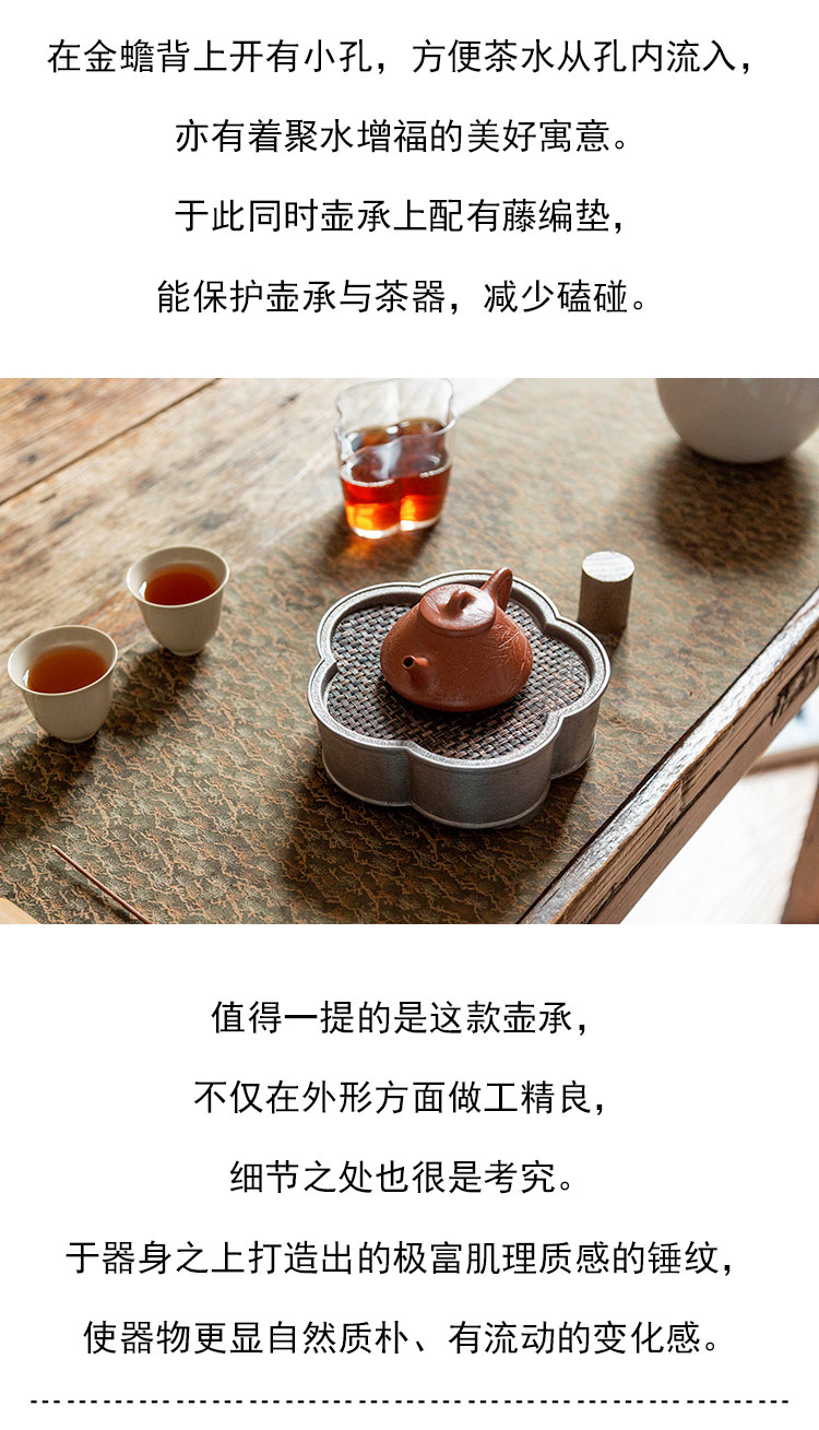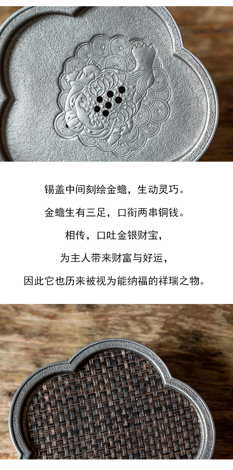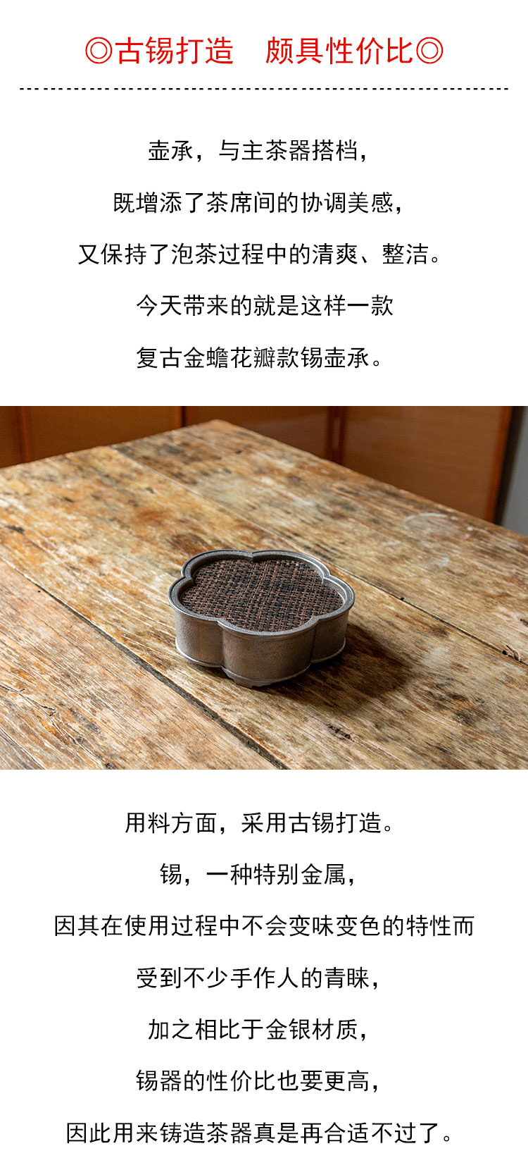 茶香记 复古金蟾花瓣款锡壶承 古锡打造 颇具性价比 寓意美好