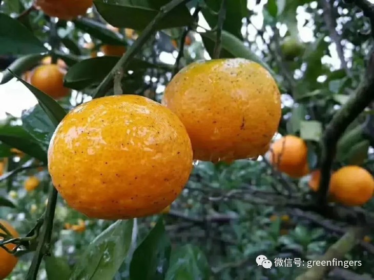 桔子生长过程中容易招到锈壁虱的侵扰,农户使用天敌捕食螨来防治,但无法完全避免,导致部分蜜桔表皮看起来像是生锈的样子,并不影响食用。