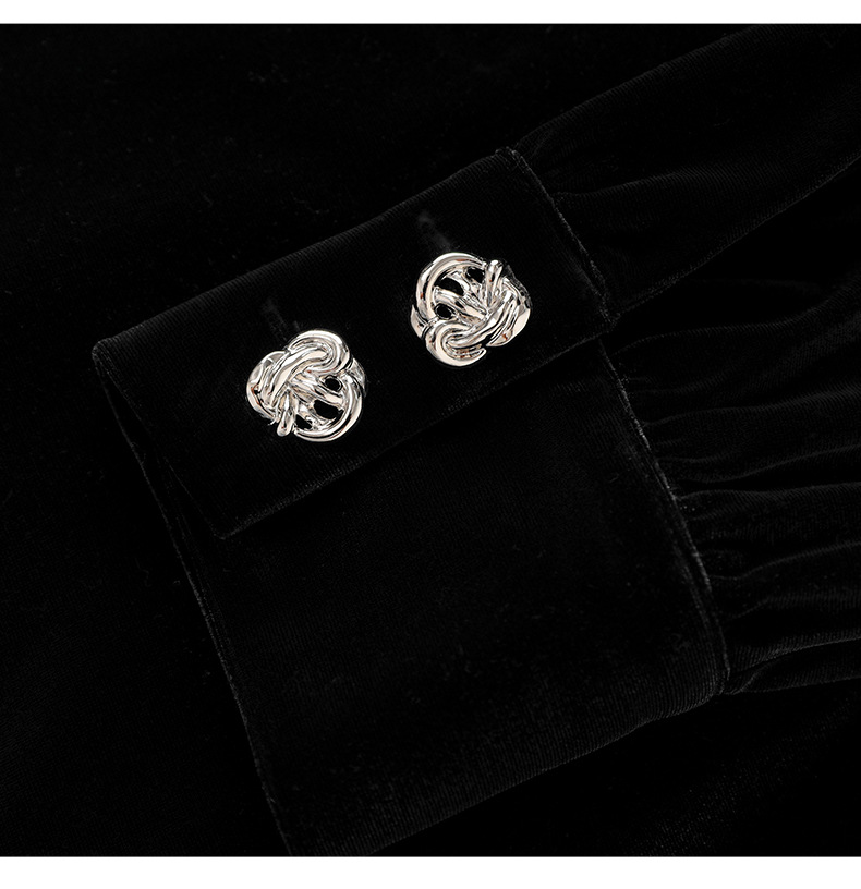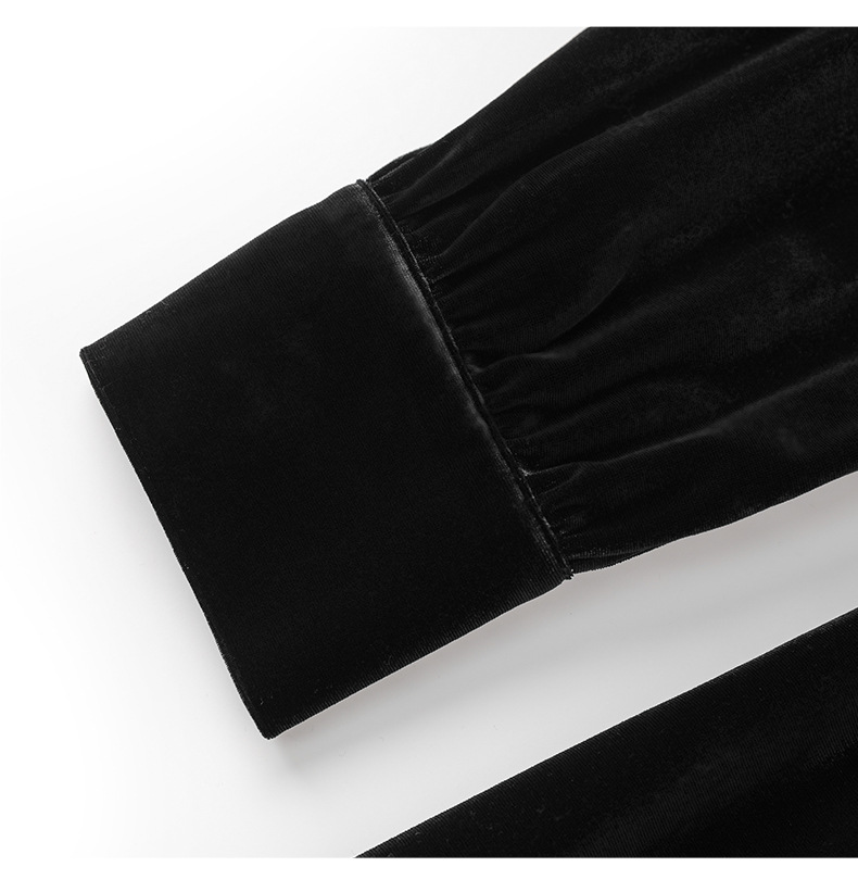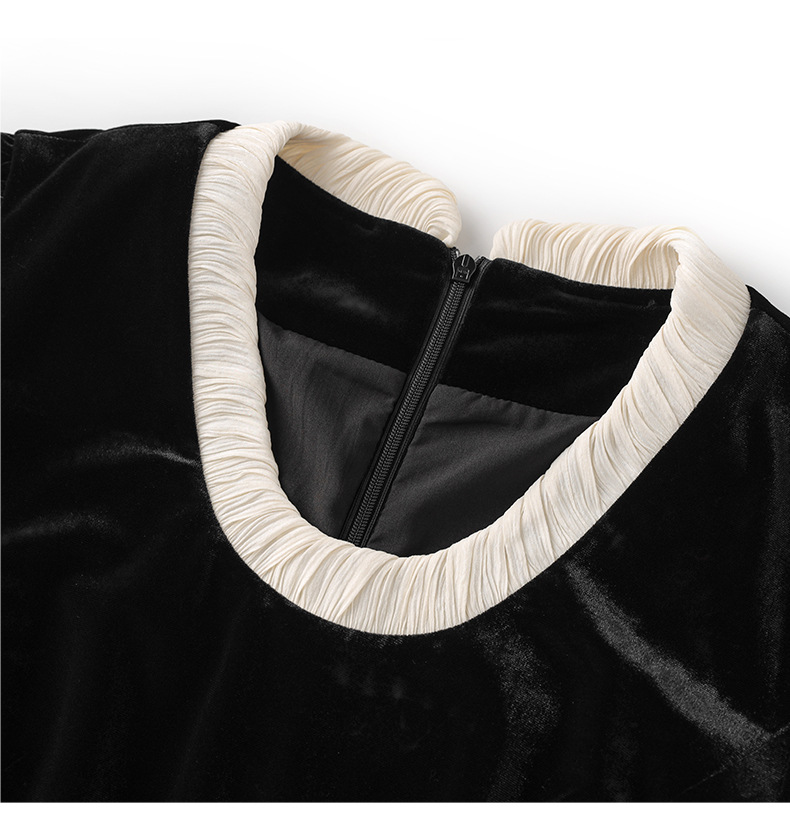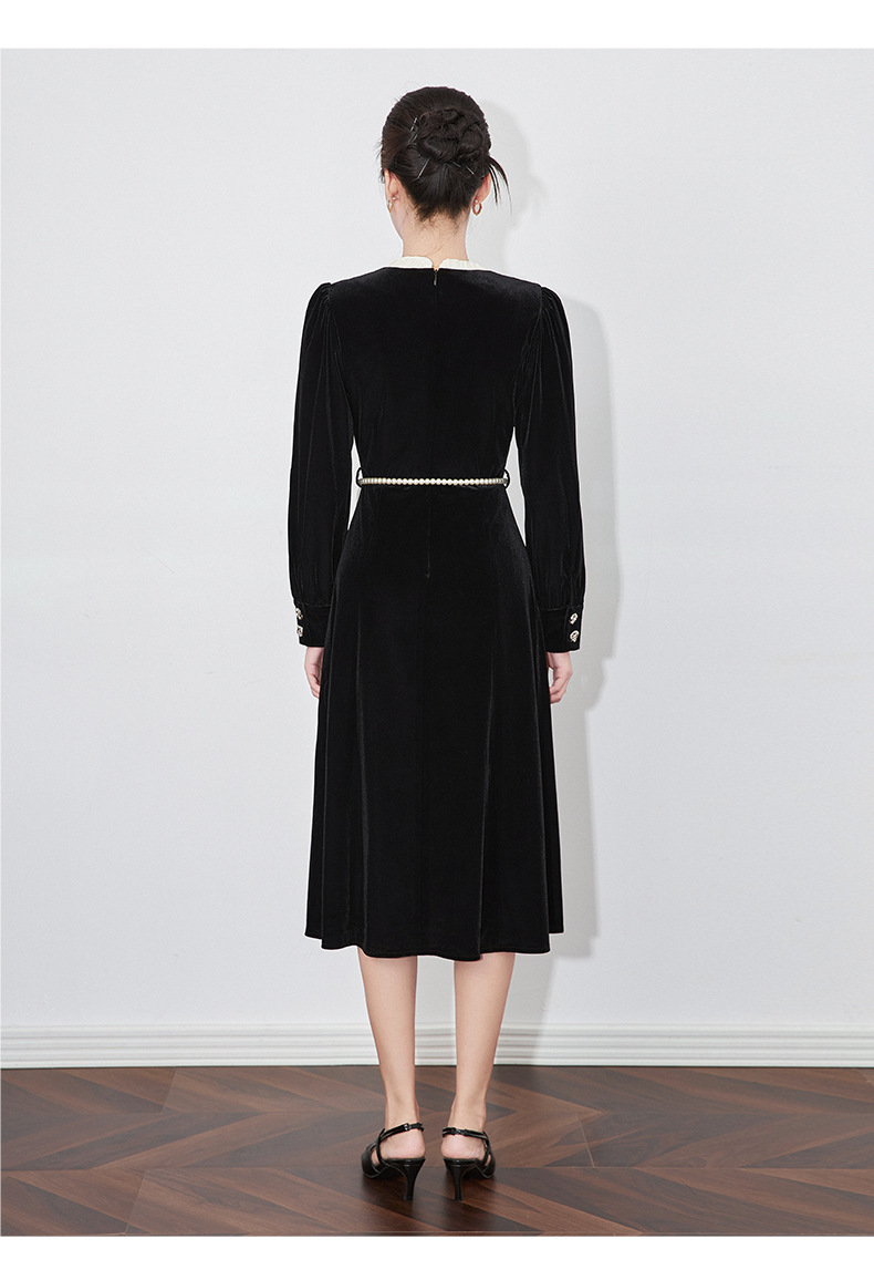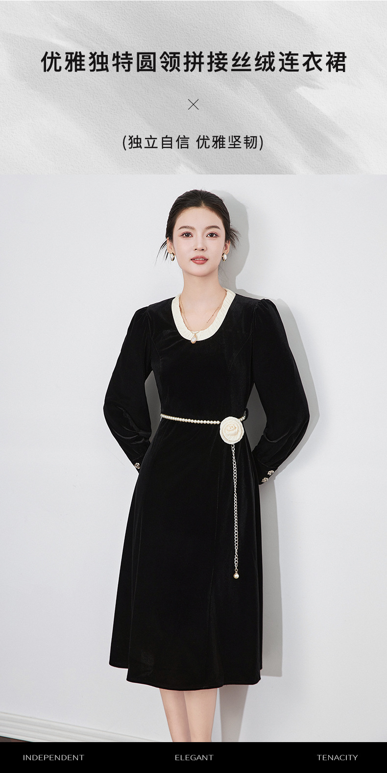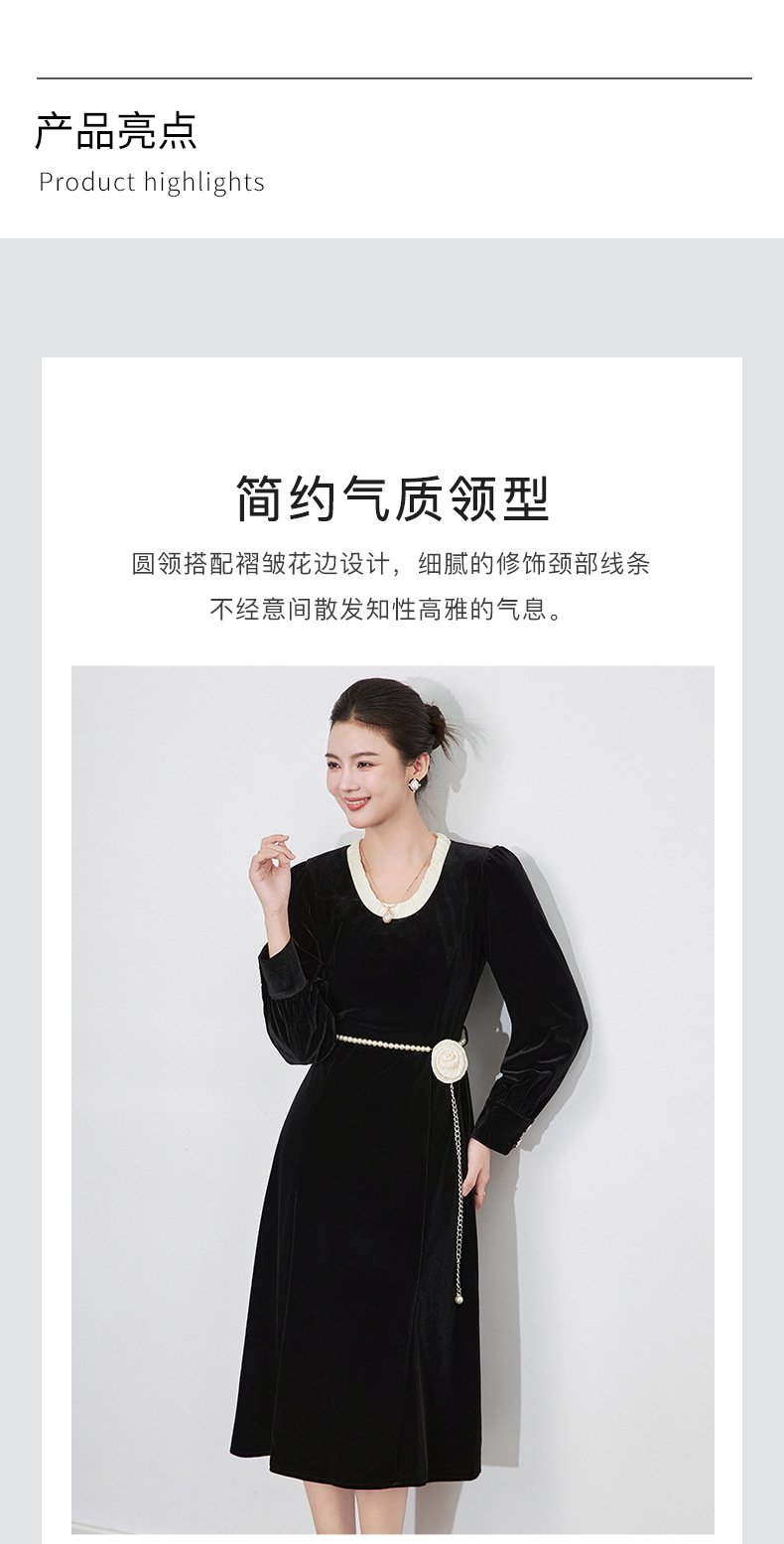 【高货wl】全新升级【铂金会员358/天猫479/差价121】(22055) 洛诗琳秋冬款法式优雅撞色褶皱珍珠腰带丝绒收腰连衣裙