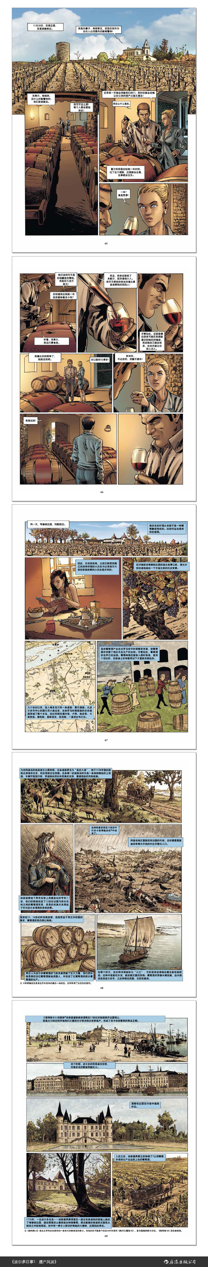 从梅多克到圣爱美隆,作者亲自拜访波尔多上百家酒庄,收集大量的照片素材,书中建筑和葡萄园景象均参考实地场景。弯橡树酒庄虽是虚构,其造型却参考了梅多克一级庄白马酒庄,庄园建筑恢弘、古典,透着浓浓的复古风。画风写实、华丽,人物刻画生动,特点鲜明。