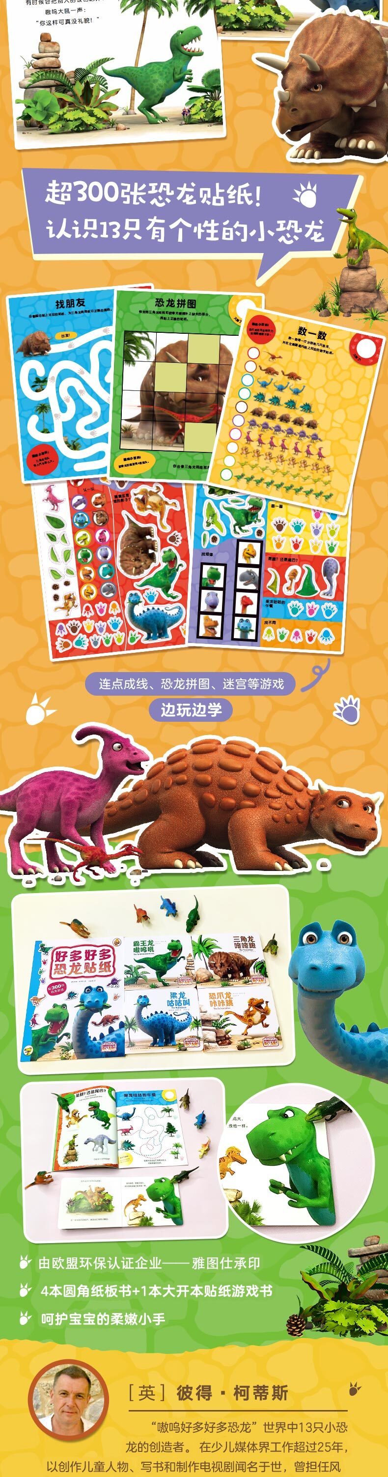 ★送给2~3岁宝宝的恐龙书,好玩的恐龙故事+让人惊叹的恐龙科普知识,还有超300张贴纸的创意贴纸游戏书