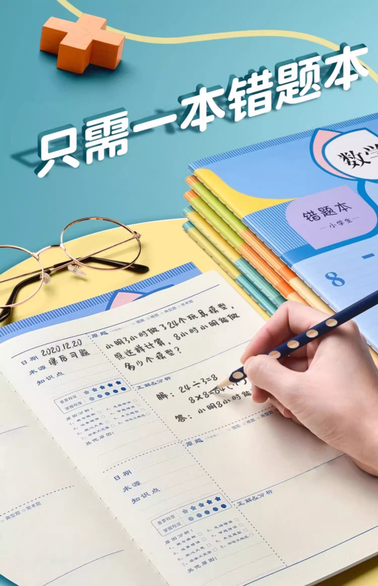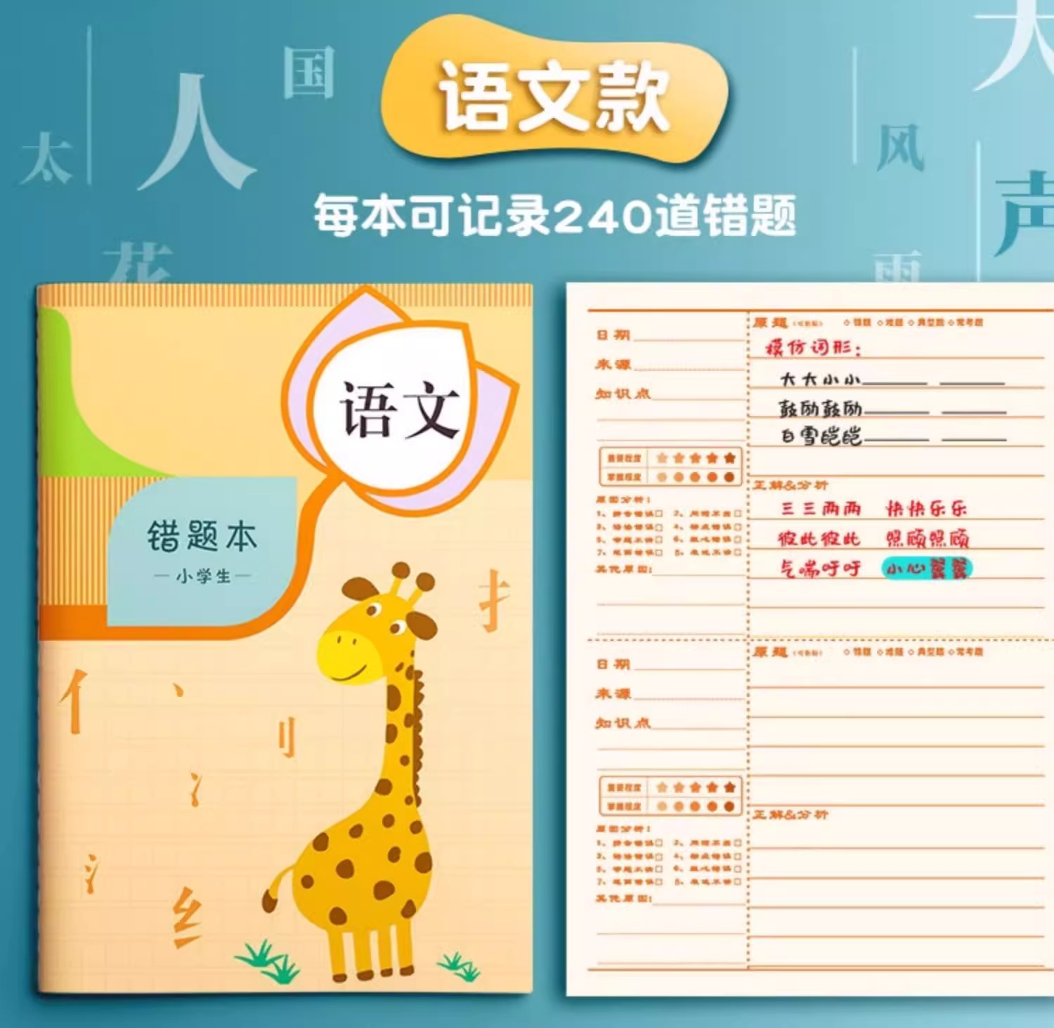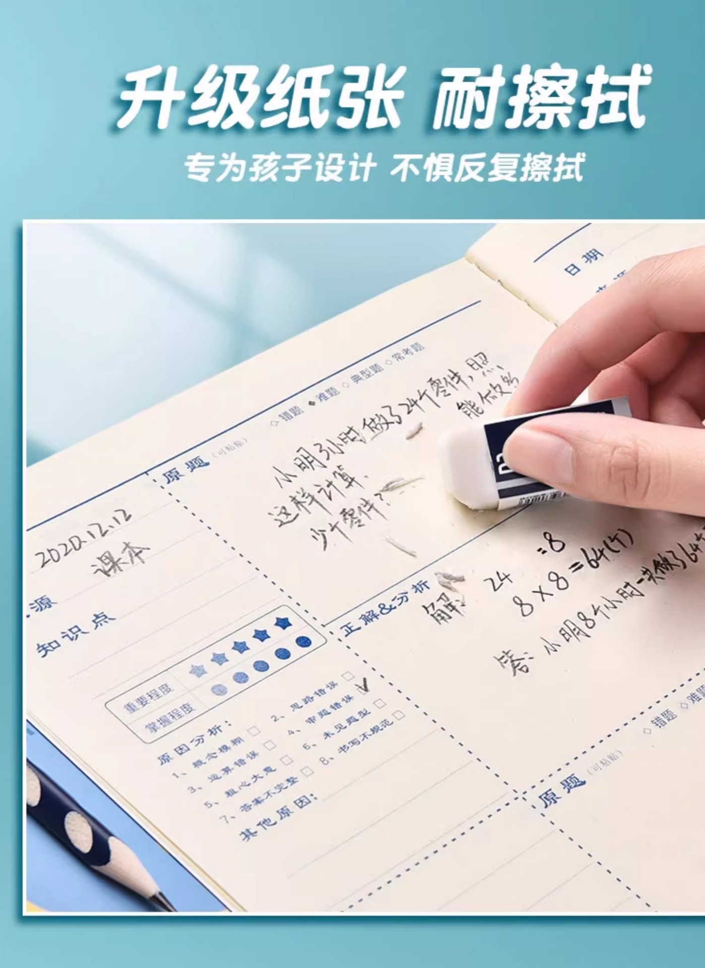 【错误不再犯❗进步看得见】小学生用纠错本改错本一年级二年级数学语文英语整理本错题本。rg