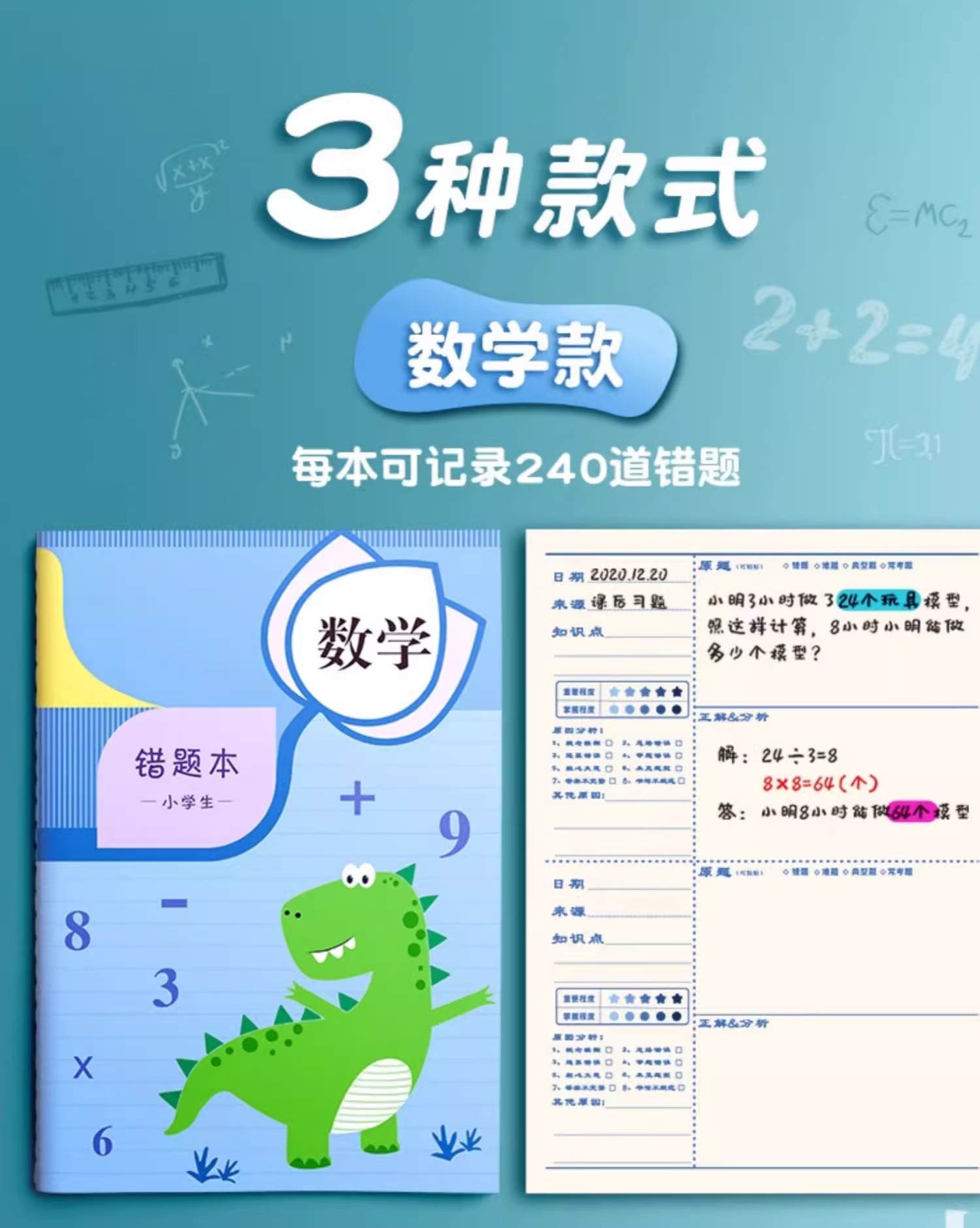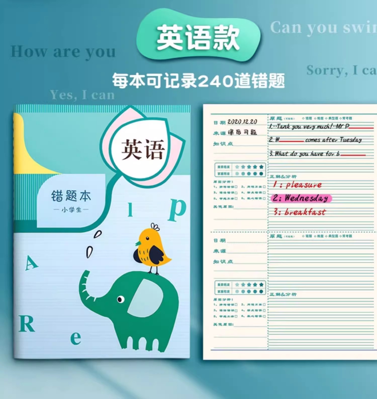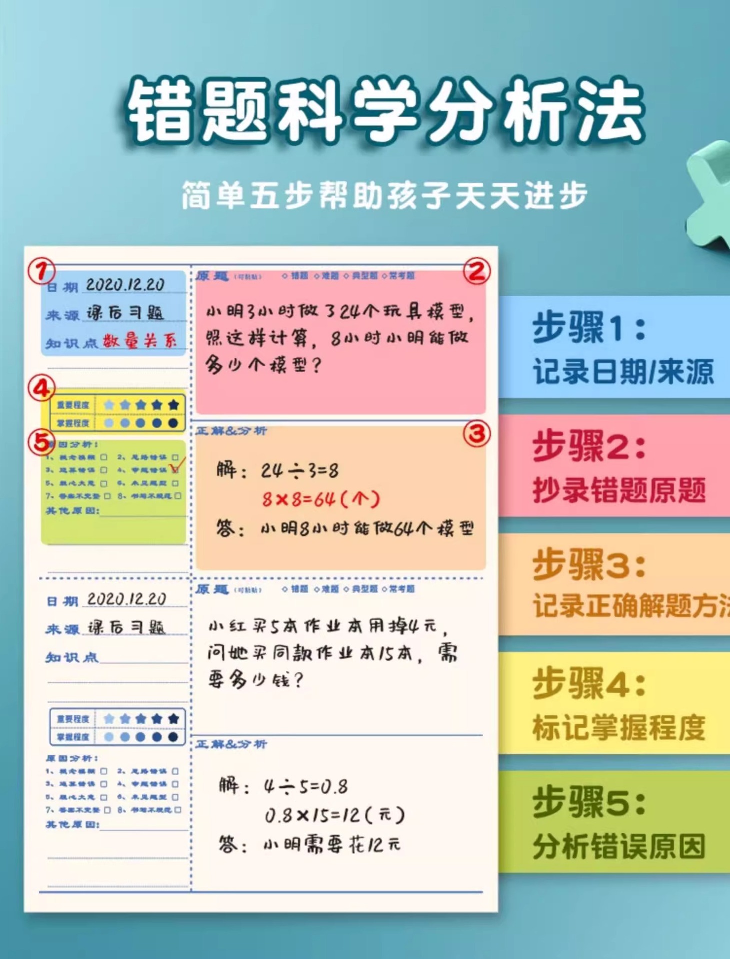 【错误不再犯❗进步看得见】小学生用纠错本改错本一年级二年级数学语文英语整理本错题本。rg