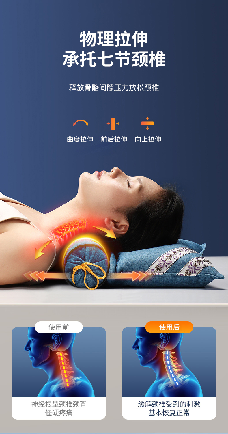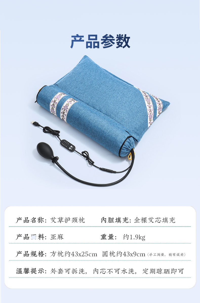 骨科医生推荐【艾草颈椎枕连枕】艾草枕头可拆卸圆柱艾枕 家用护颈热敷枕