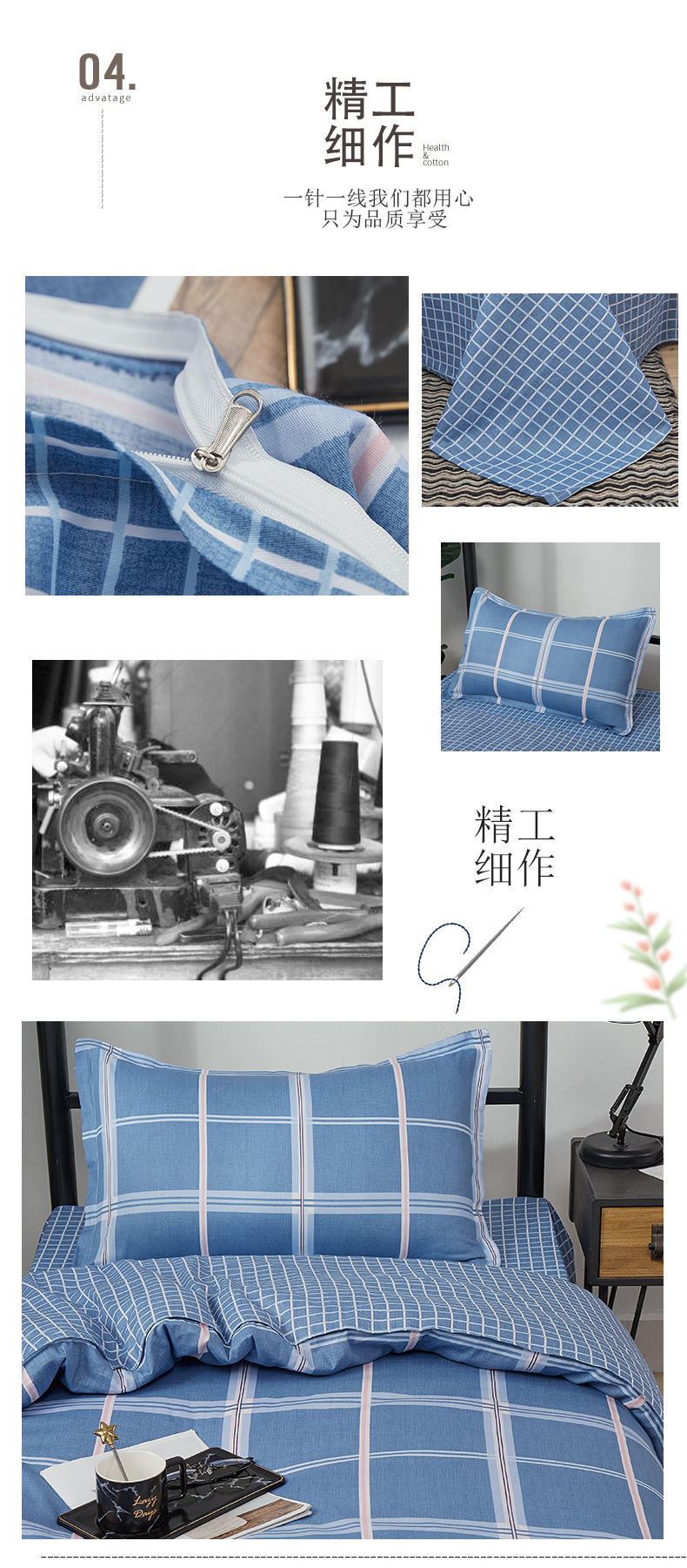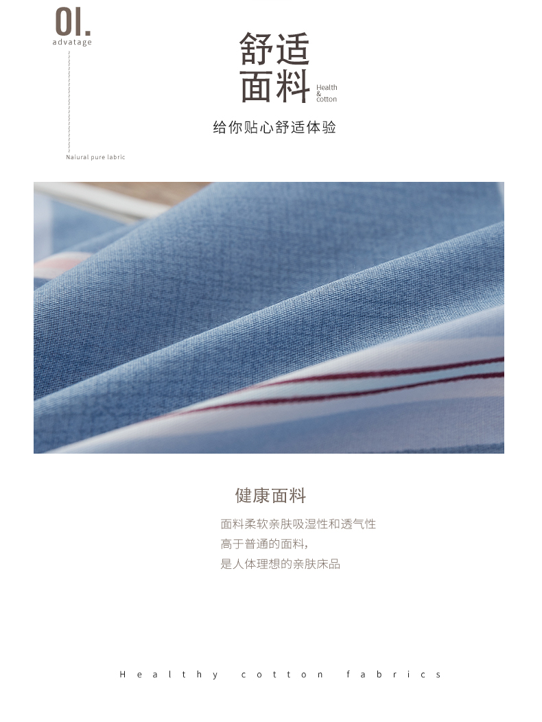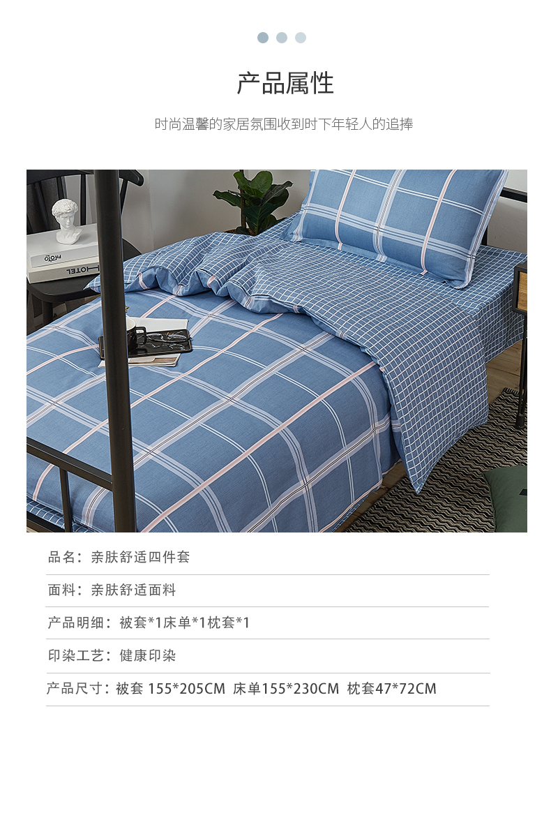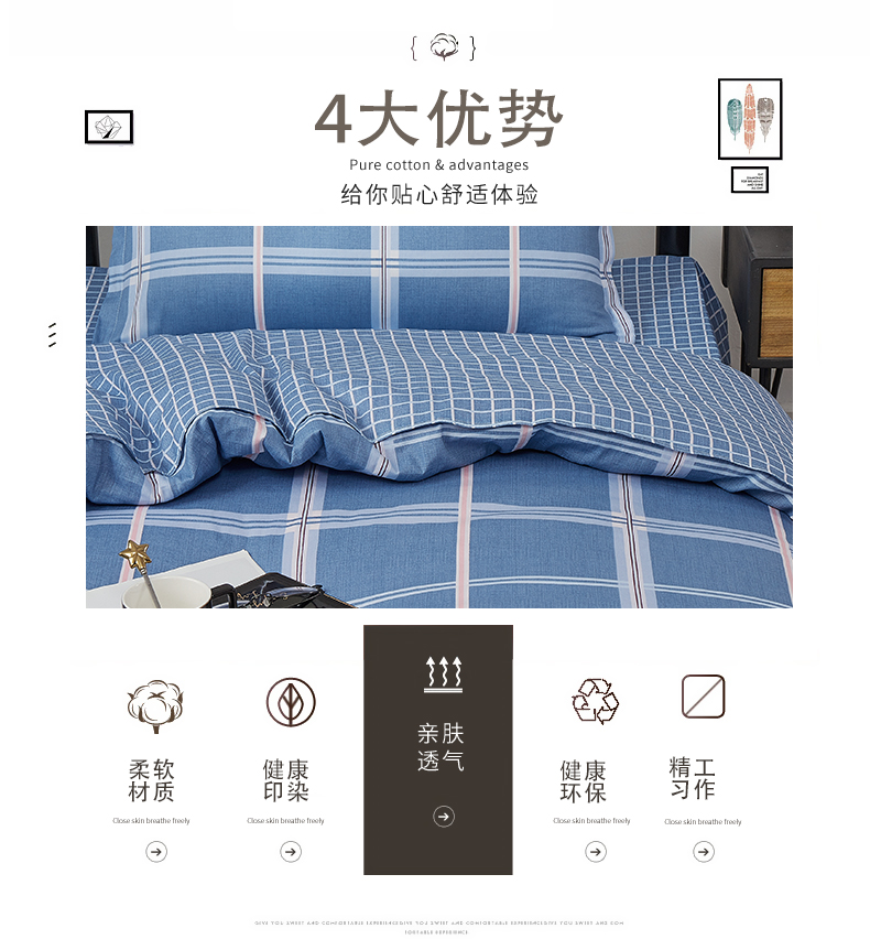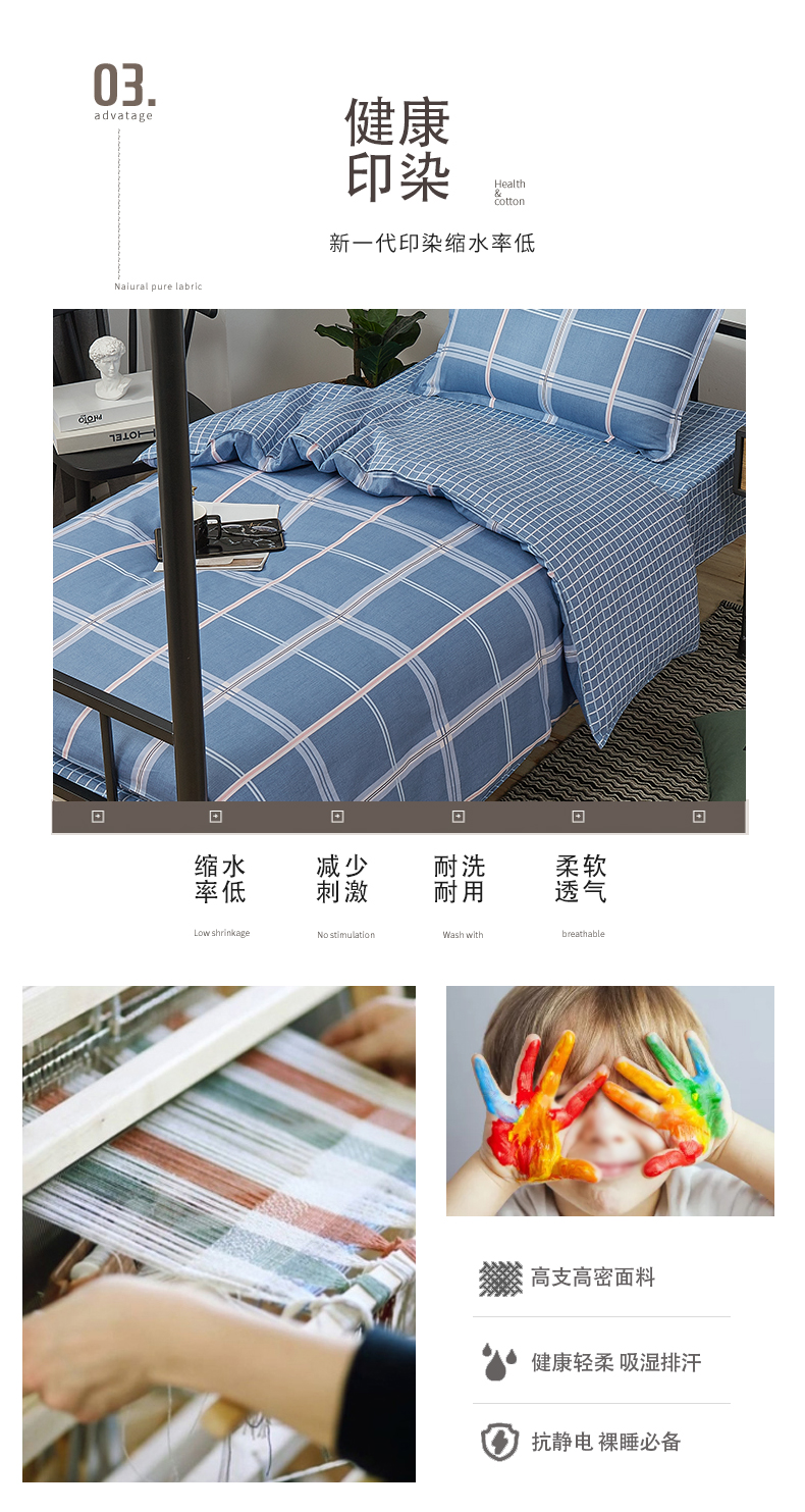 惠慈家居 单人全棉斜纹三件套 (被套155*205cm /床单155*230cm /枕套47*72cm )