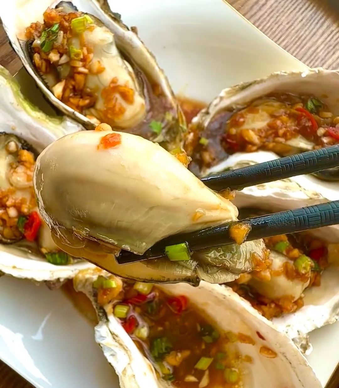 8、生蚝活性大体力好的蒸不开口,受热后会受到惊吓,闭合肌(瑶柱)会拉紧,导致开不了口!上汽后3-4分钟为宜!久煮影响口感和肥度!