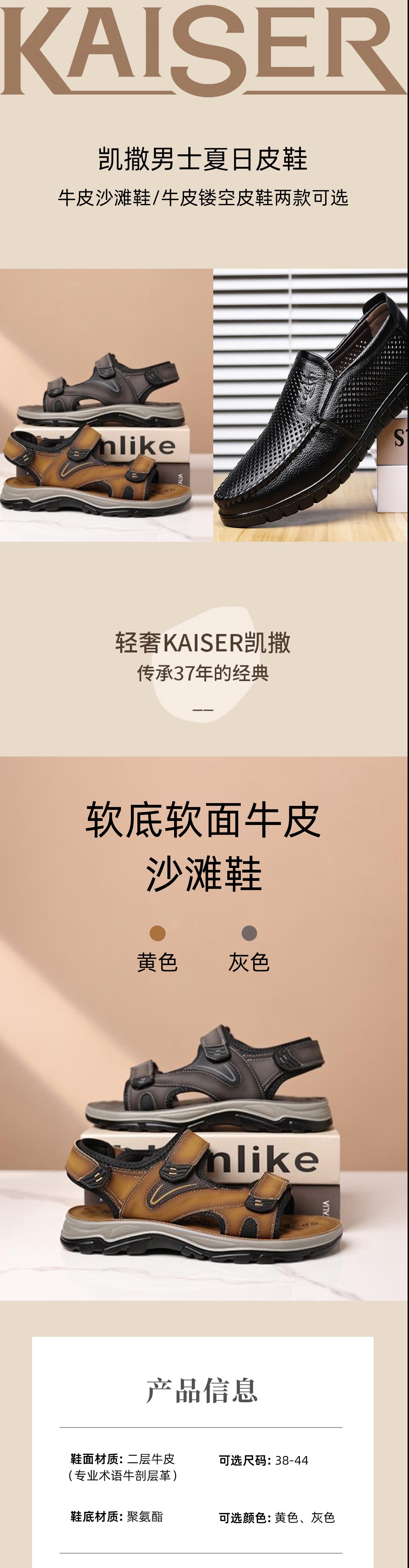 凯撒KAISER男士沙滩鞋&牛皮洞洞皮鞋,春夏透气款 | 休闲/商务2款可选