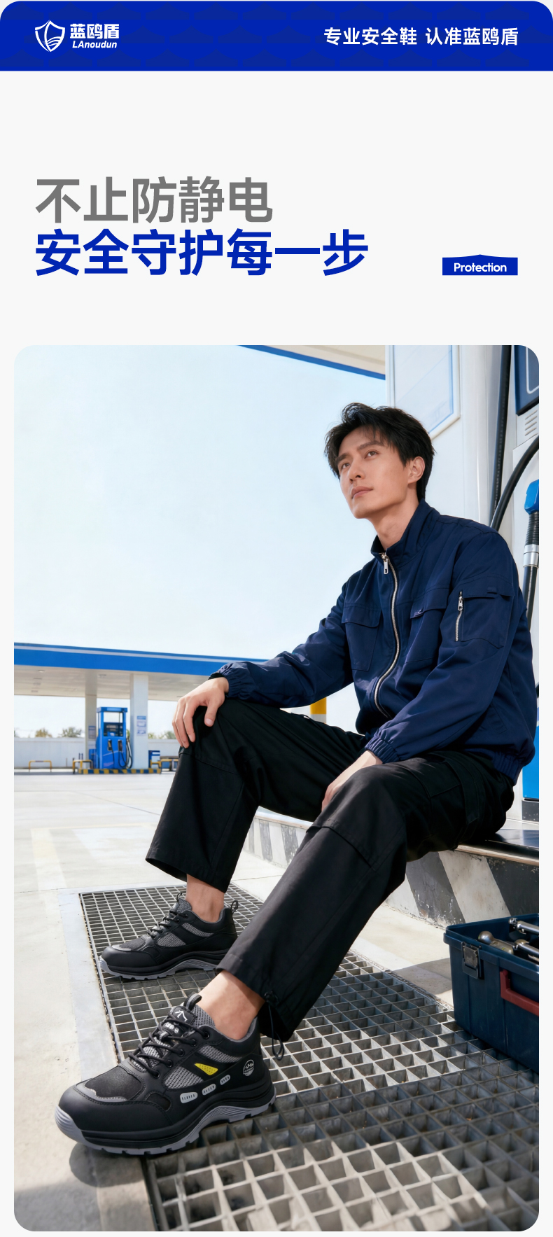 蓝鸥盾新款专业防静电安全鞋不防砸不防刺低帮四季款耐磨橡胶底