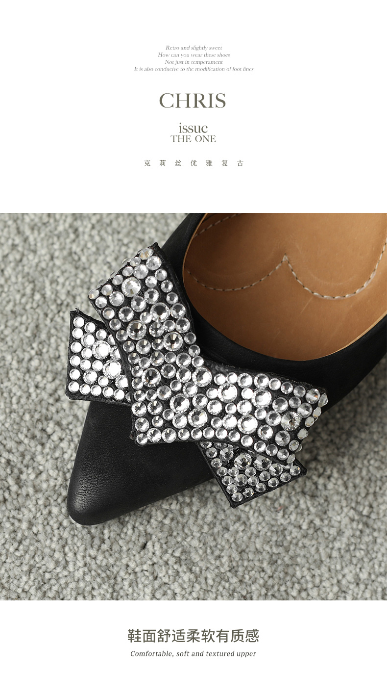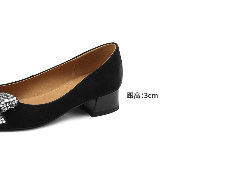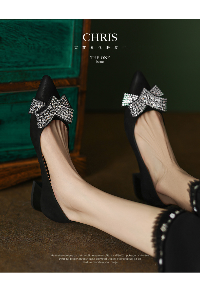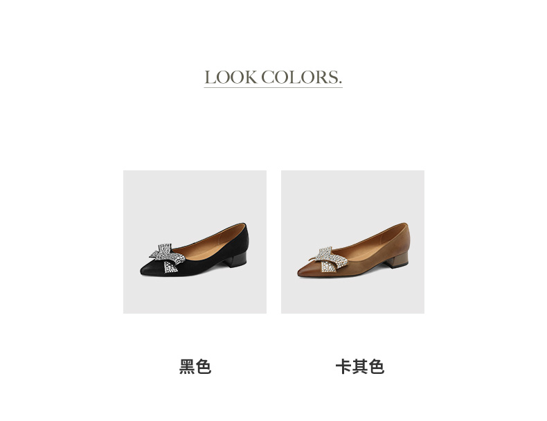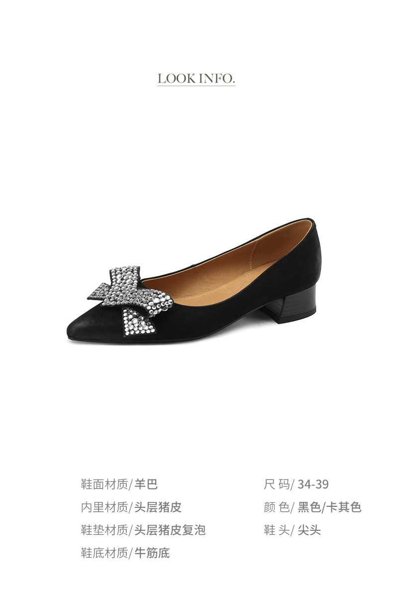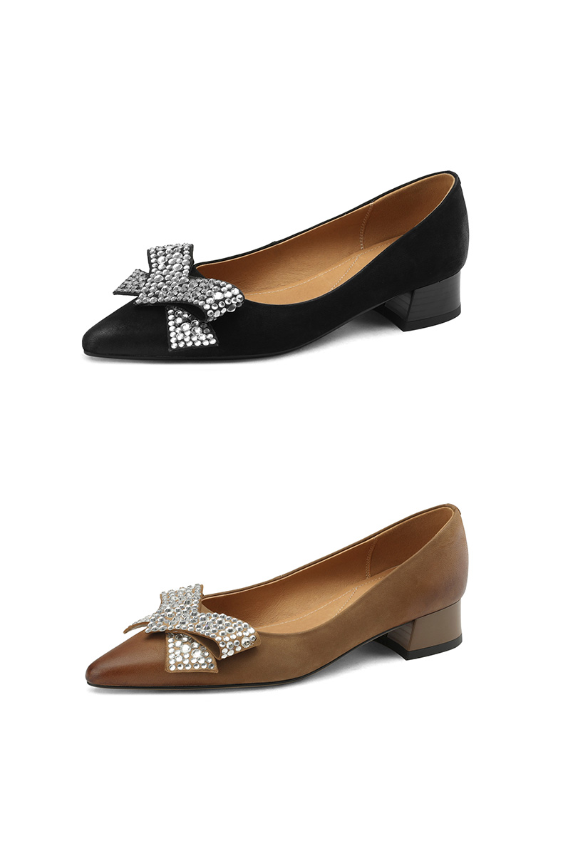 时尚尖头水钻,蝴蝶结粗跟单鞋YF-A3052