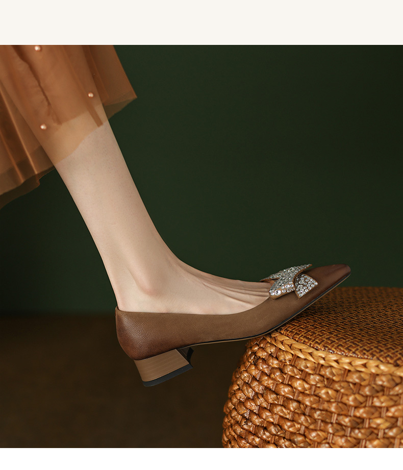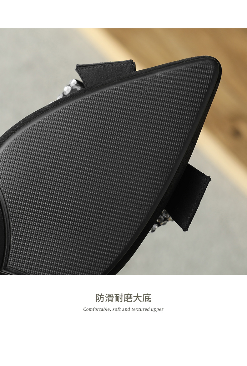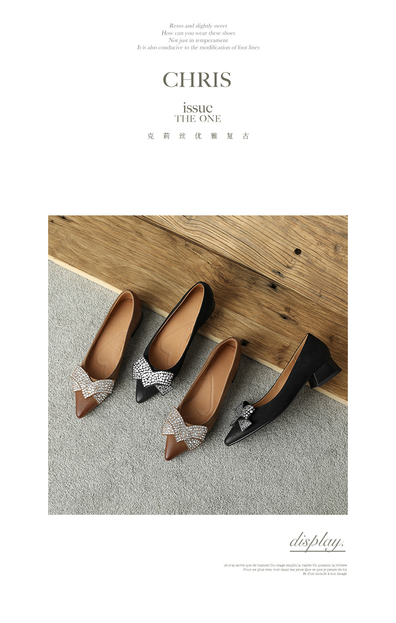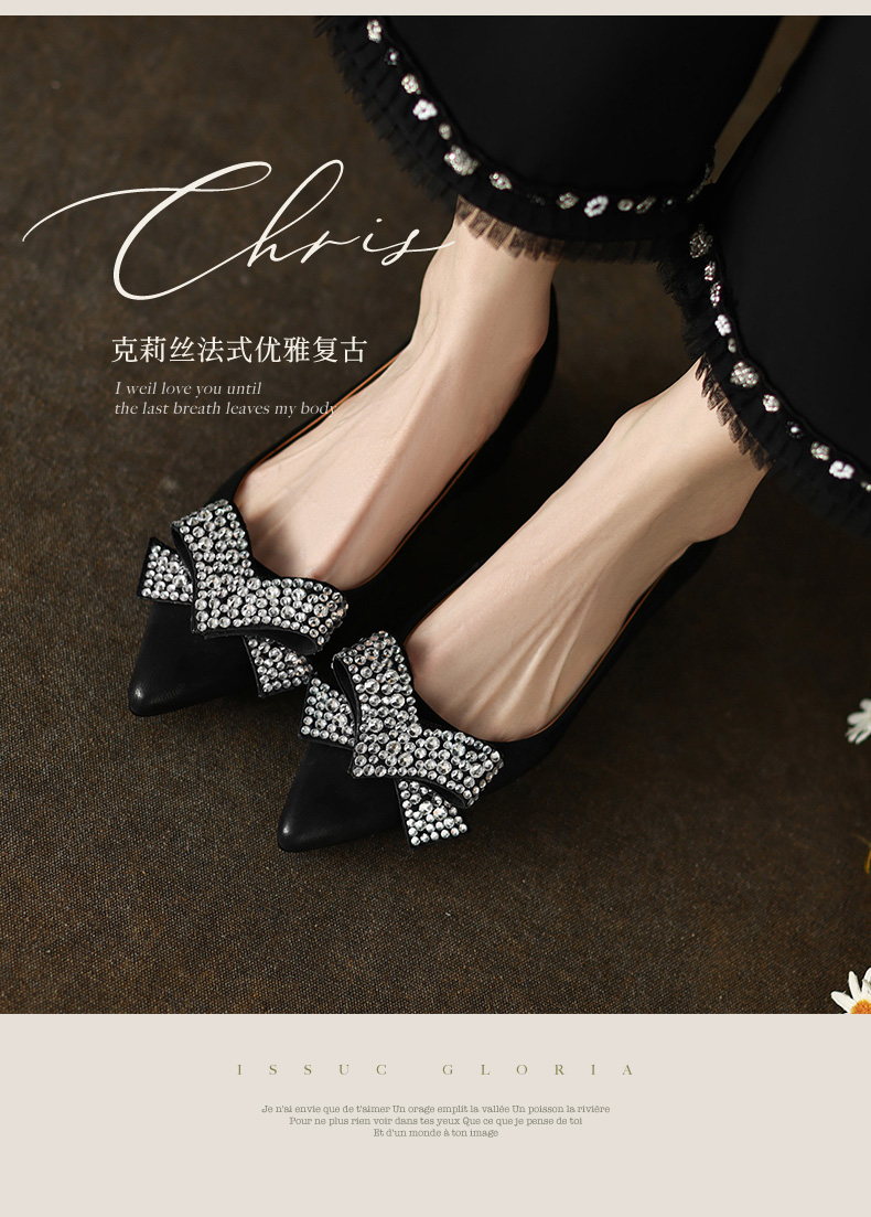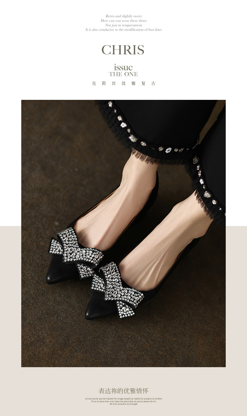 时尚尖头水钻,蝴蝶结粗跟单鞋YF-A3052