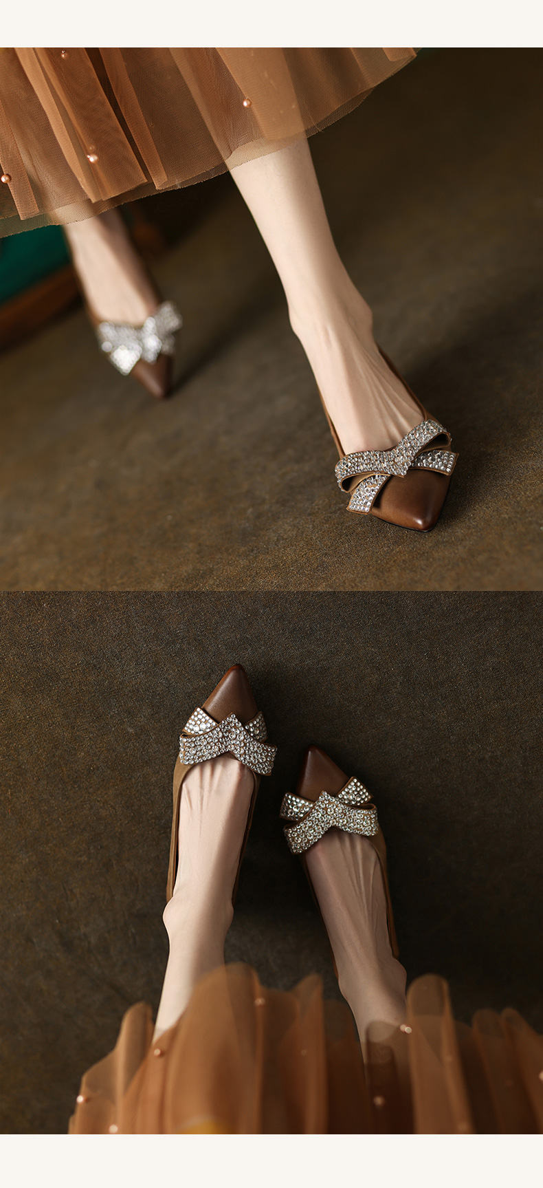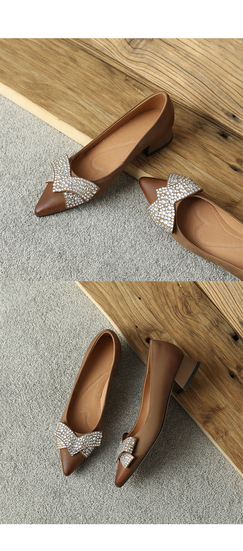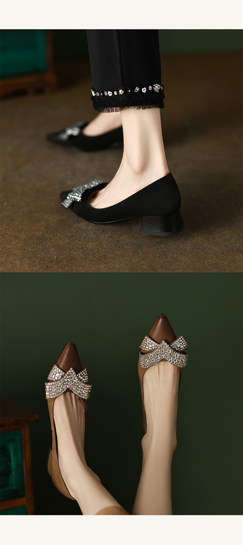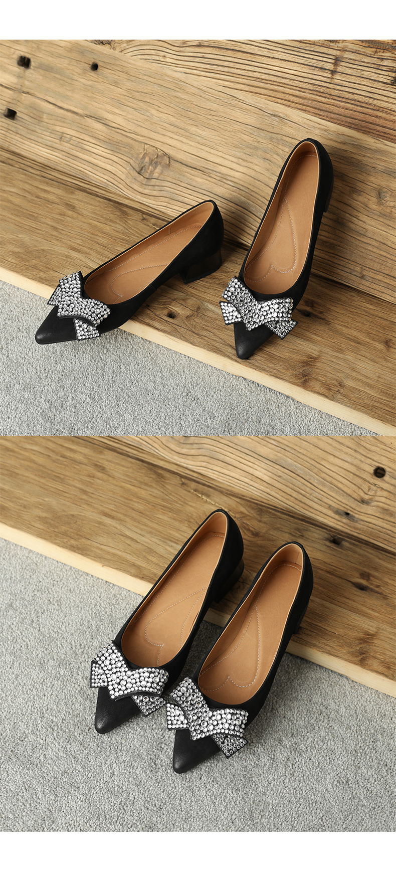 时尚尖头水钻,蝴蝶结粗跟单鞋YF-A3052