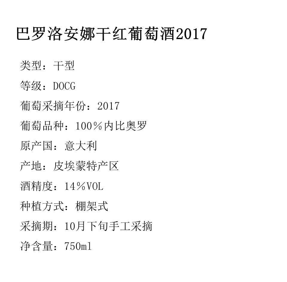 【酒王+JS92分+金奖】巴罗洛安娜干红葡萄酒DOCG2017|陈酿36个月