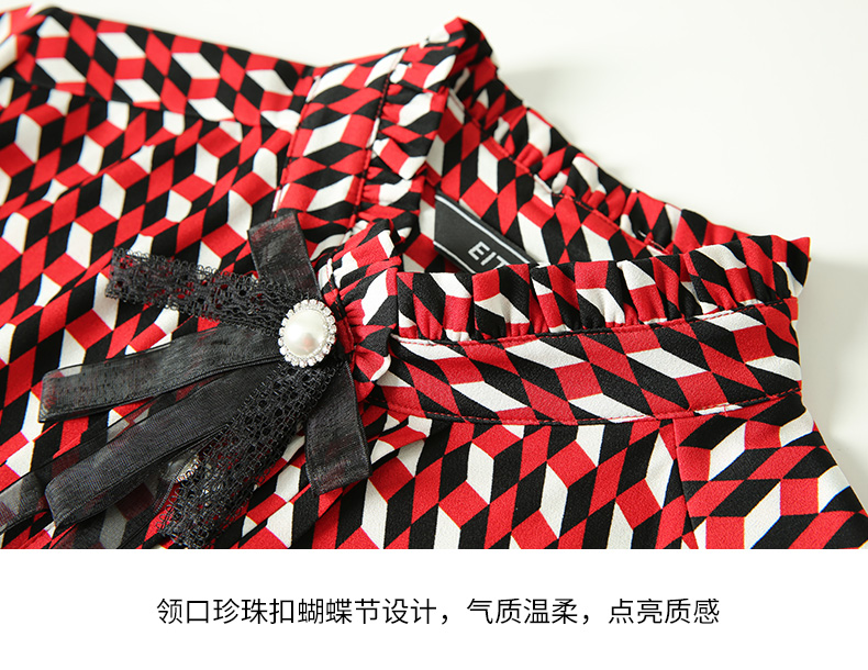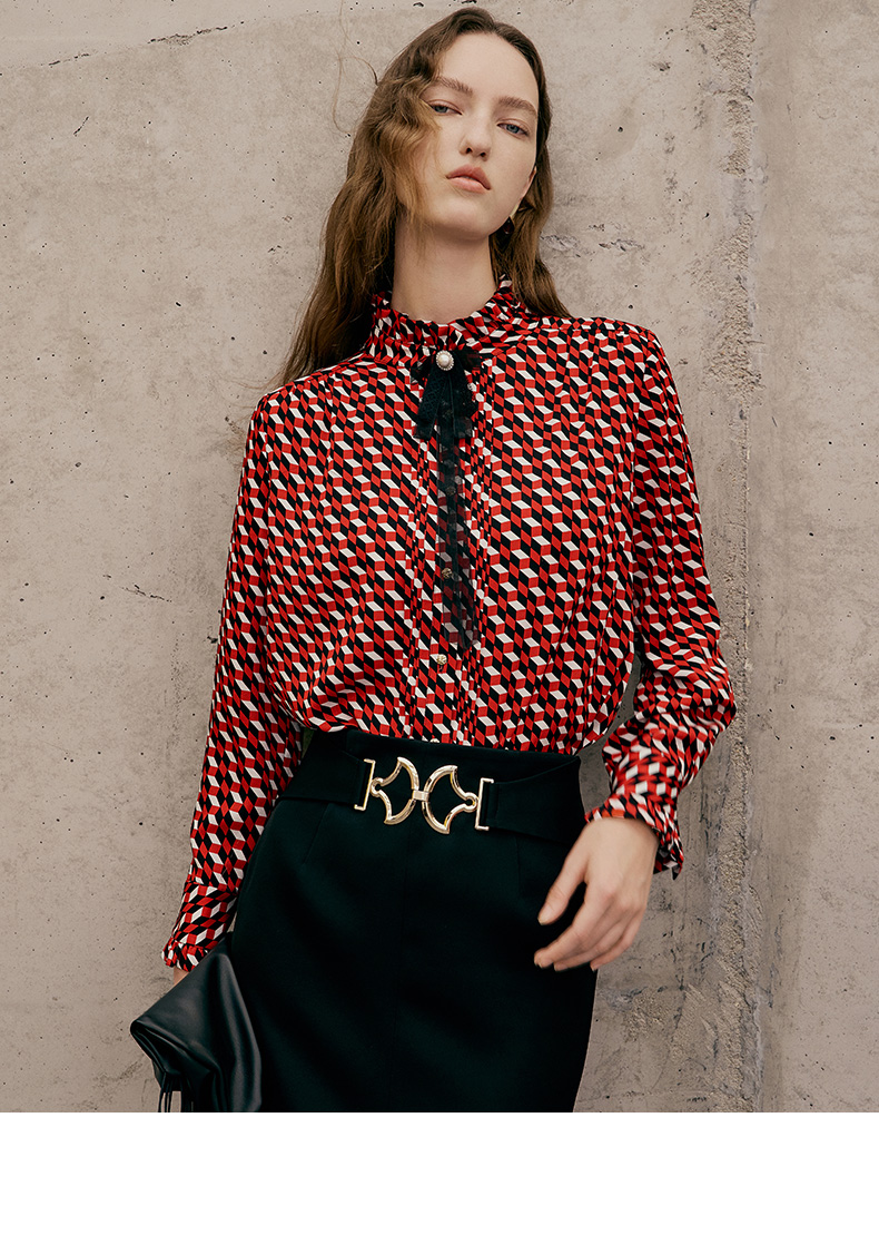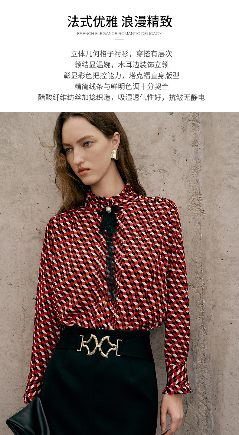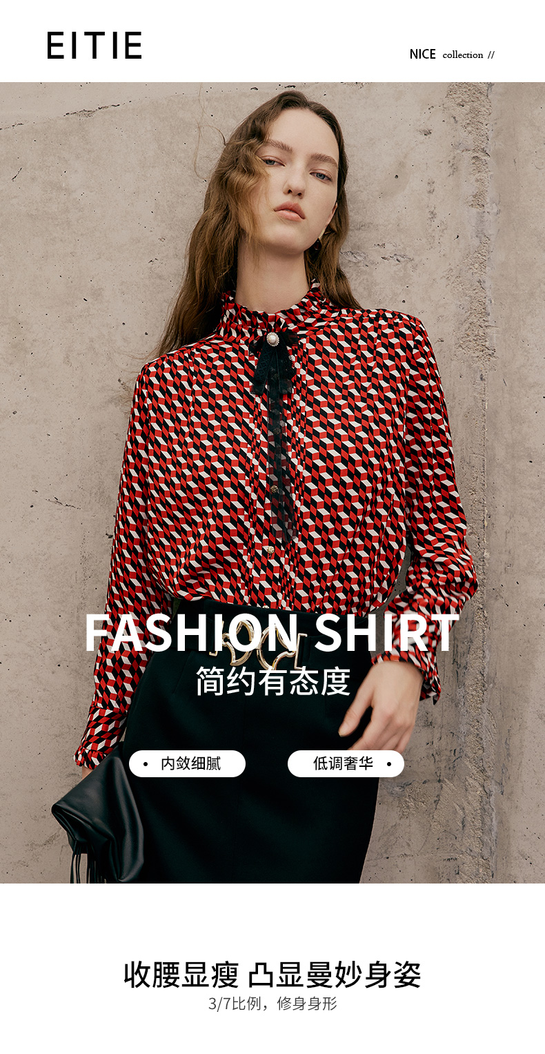 EITI爱特爱春季新款修身显瘦百搭印花立领衬衣7309002