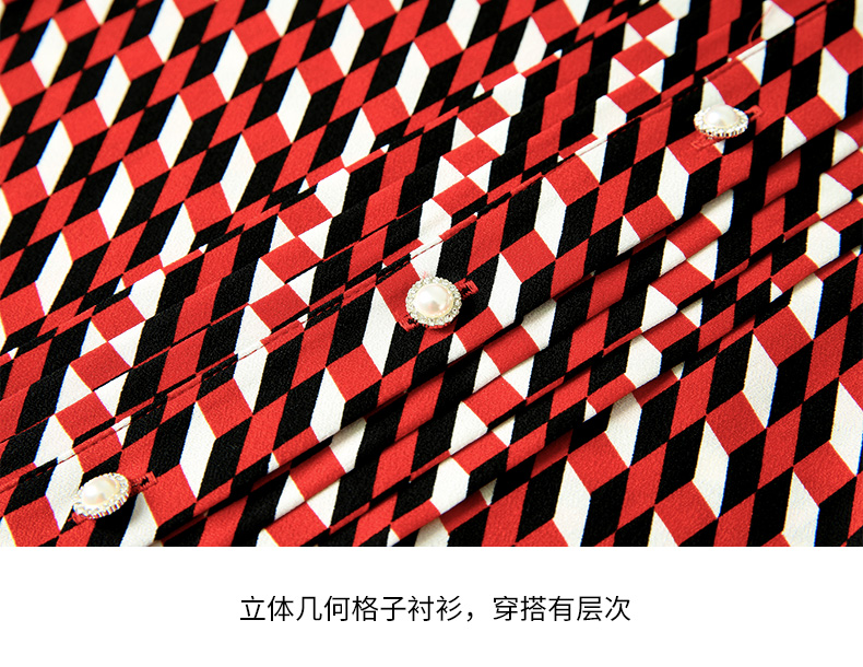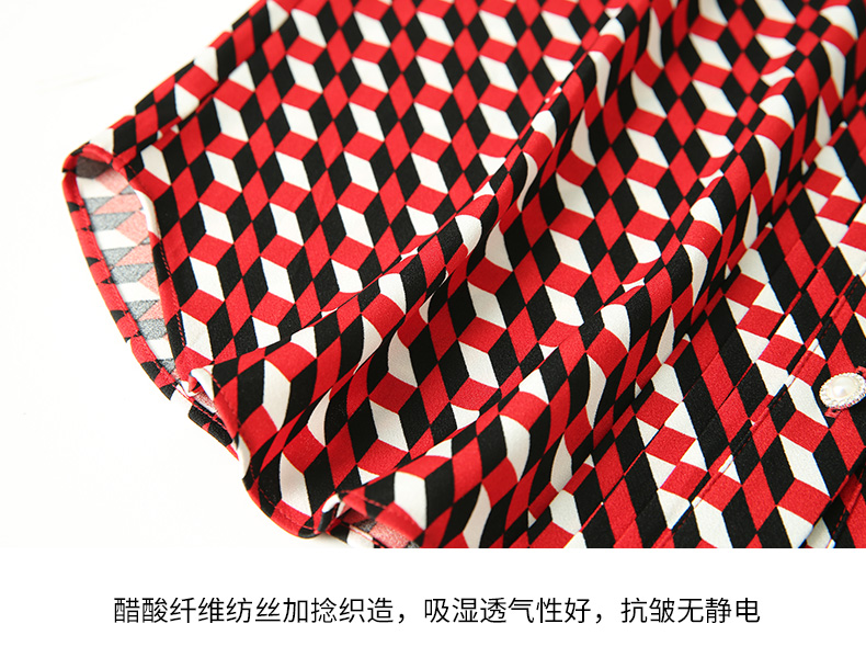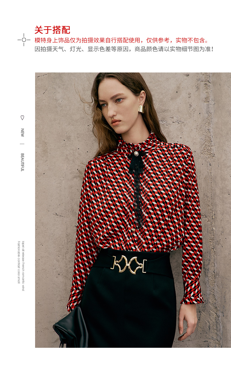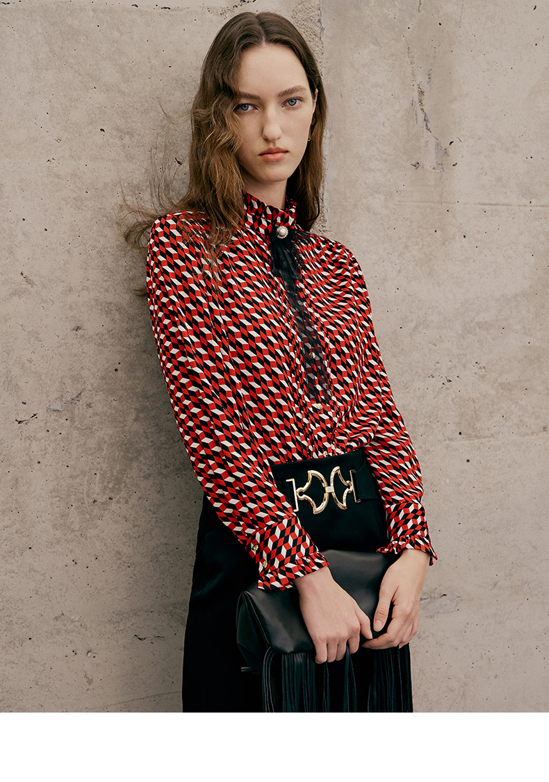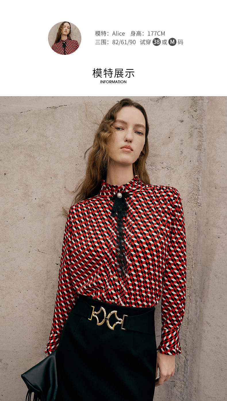 EITI爱特爱春季新款修身显瘦百搭印花立领衬衣7309002