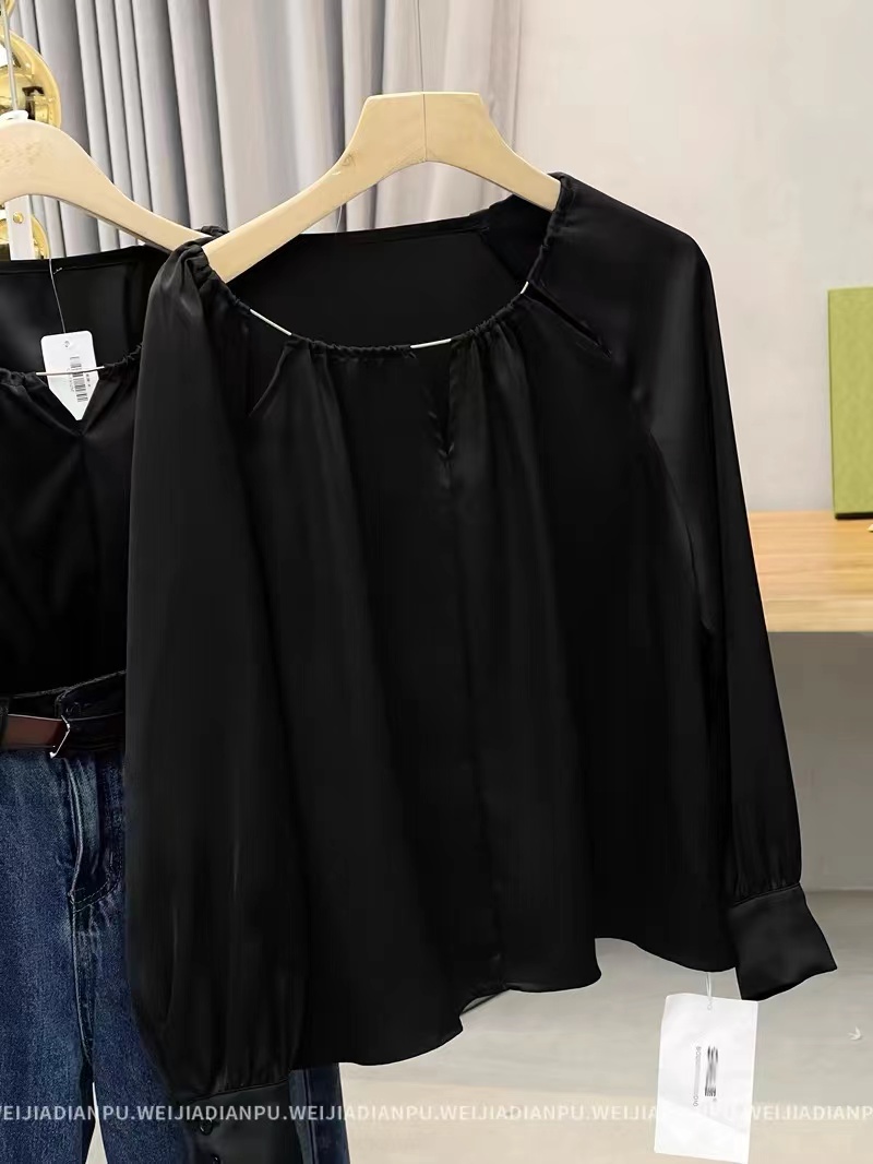 好看的哦~3950仿真丝光泽小衫上衣-喜出