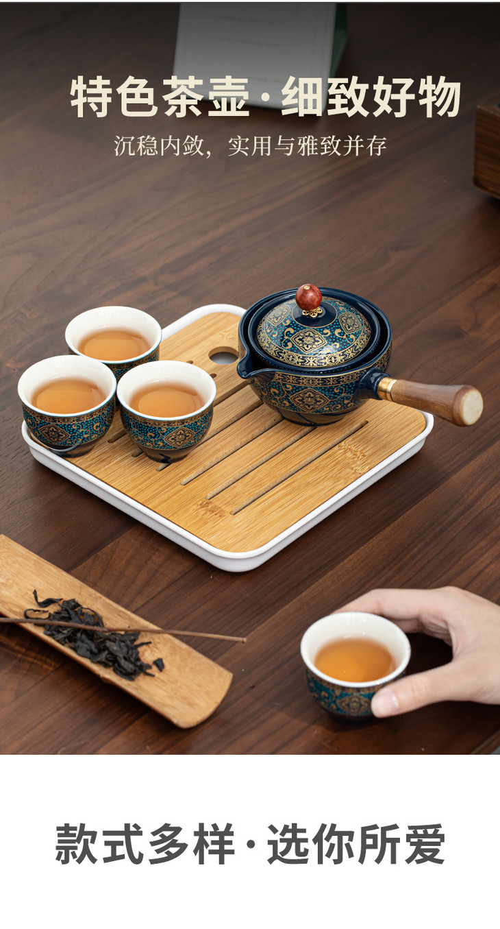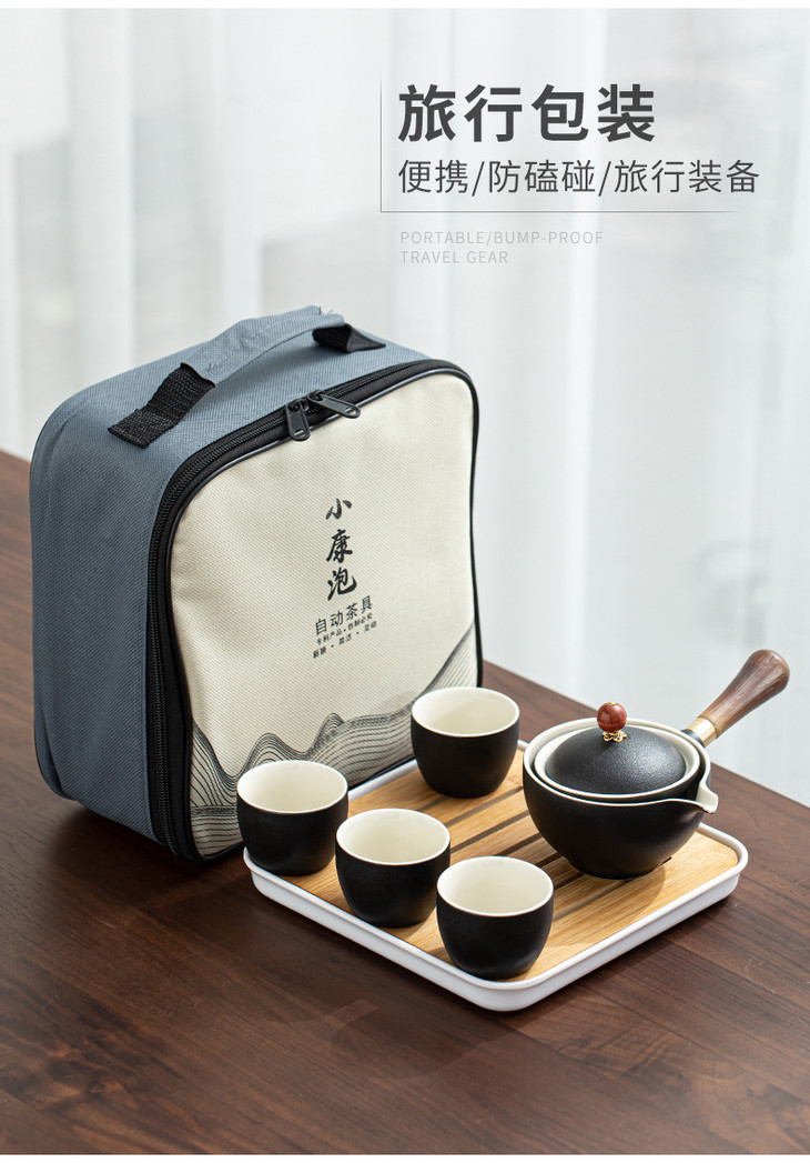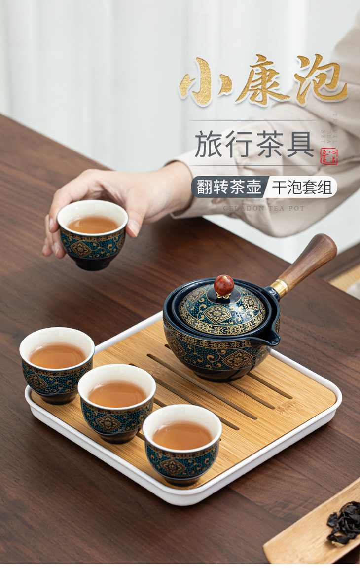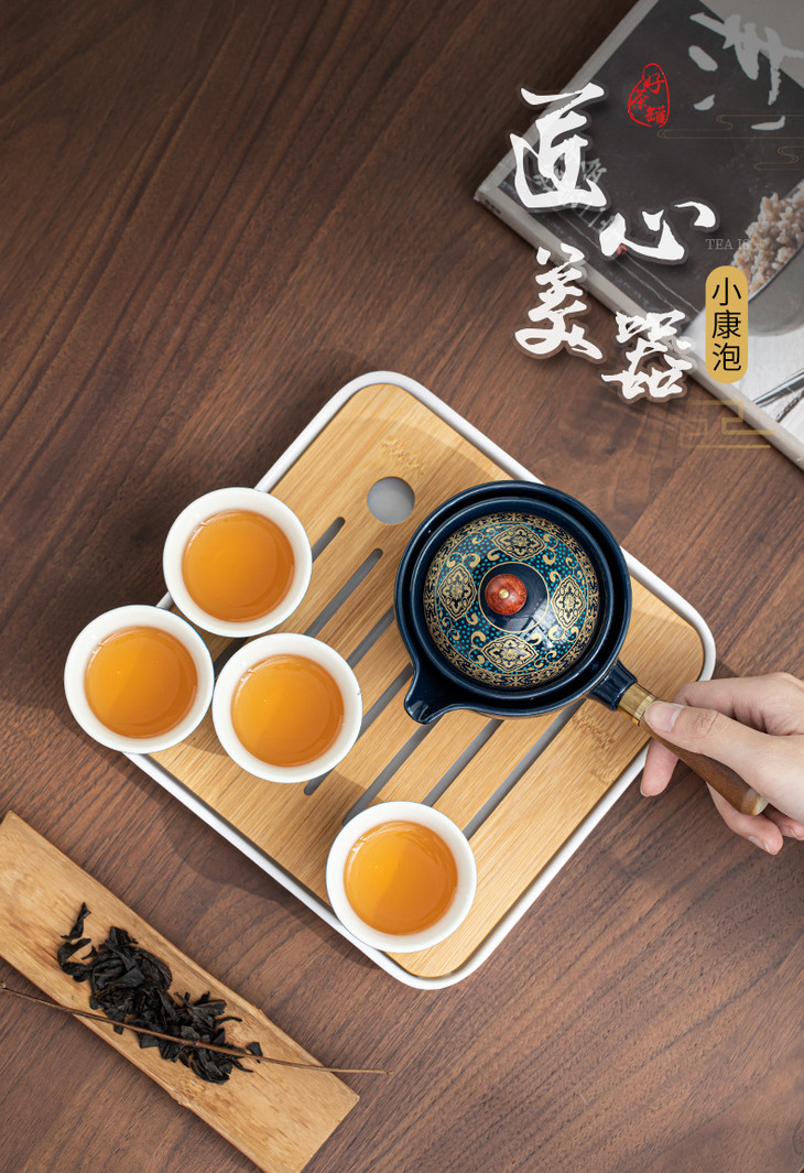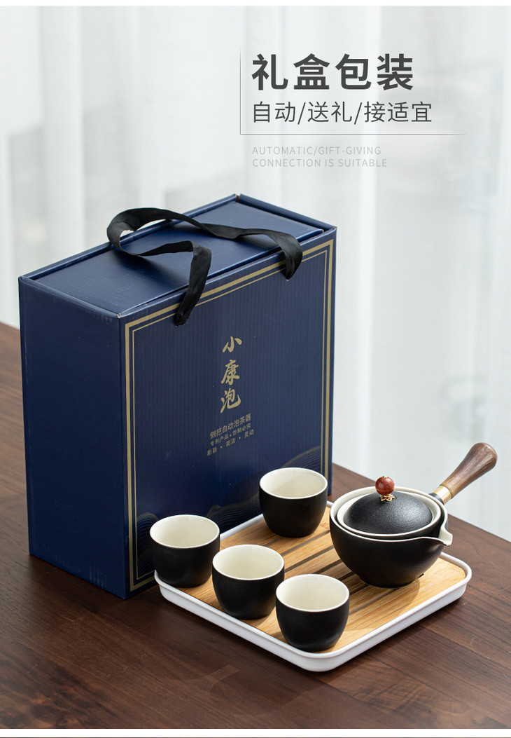 【小康泡茶具】送礼陶瓷懒人泡茶神器便携式旅行自动茶具侧把壶功夫茶具茶盘-W仓