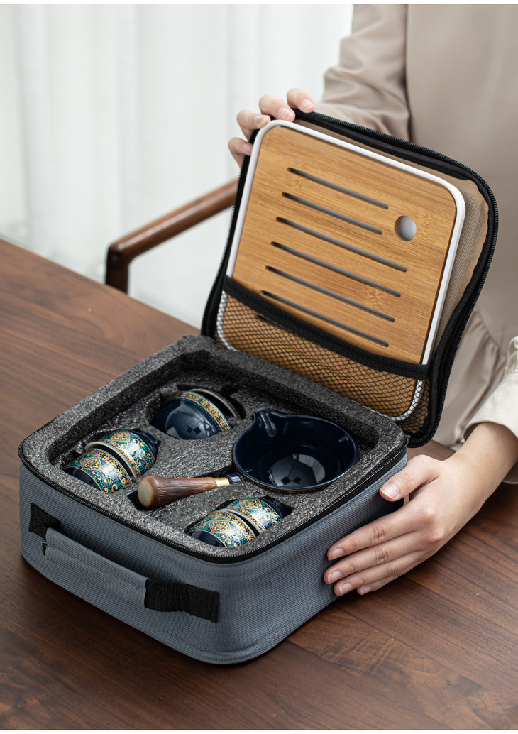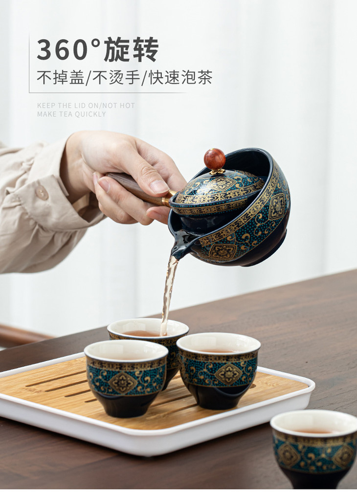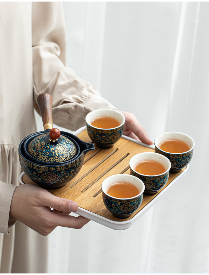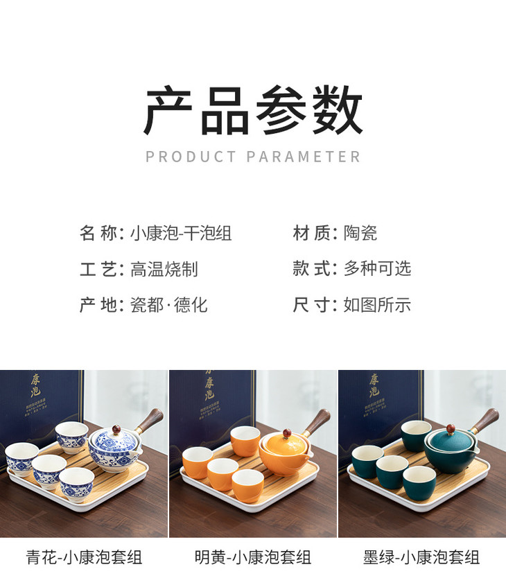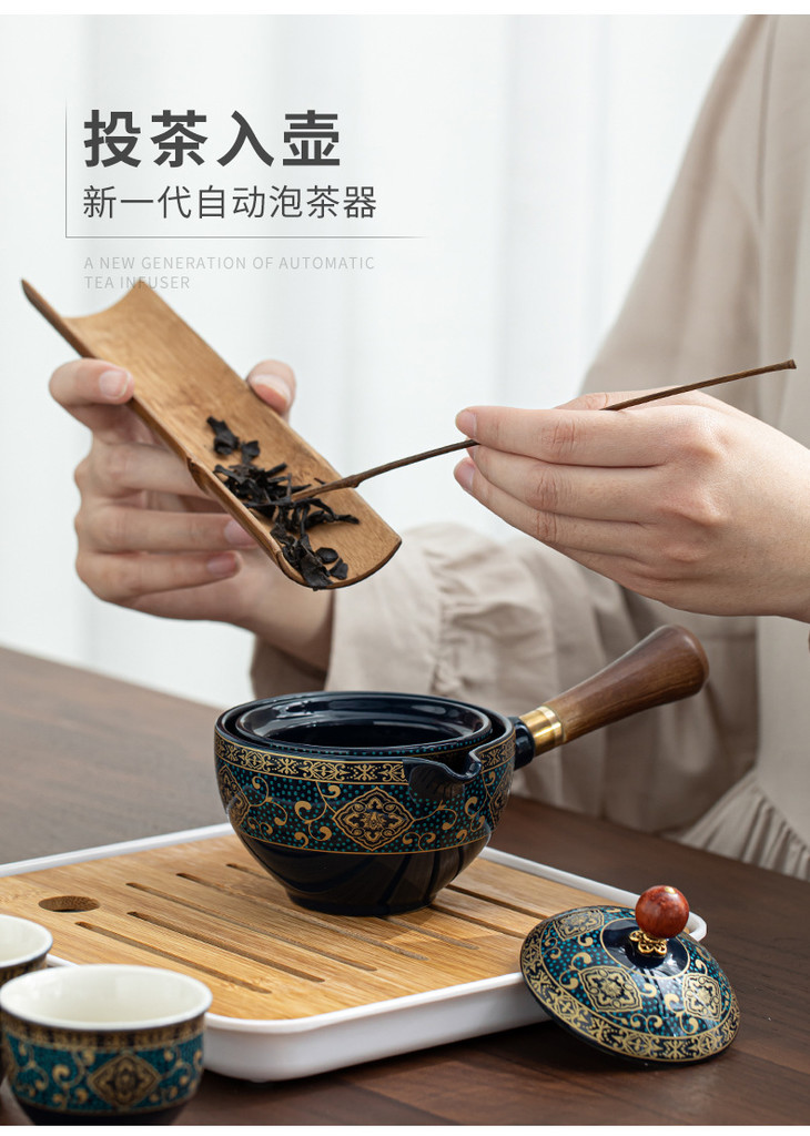 【小康泡茶具】送礼陶瓷懒人泡茶神器便携式旅行自动茶具侧把壶功夫茶具茶盘-W仓