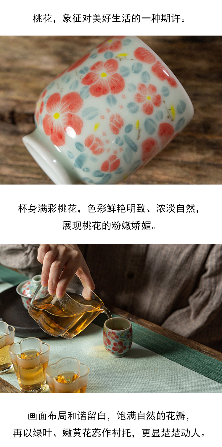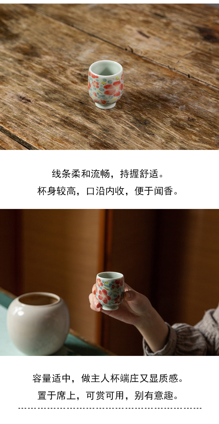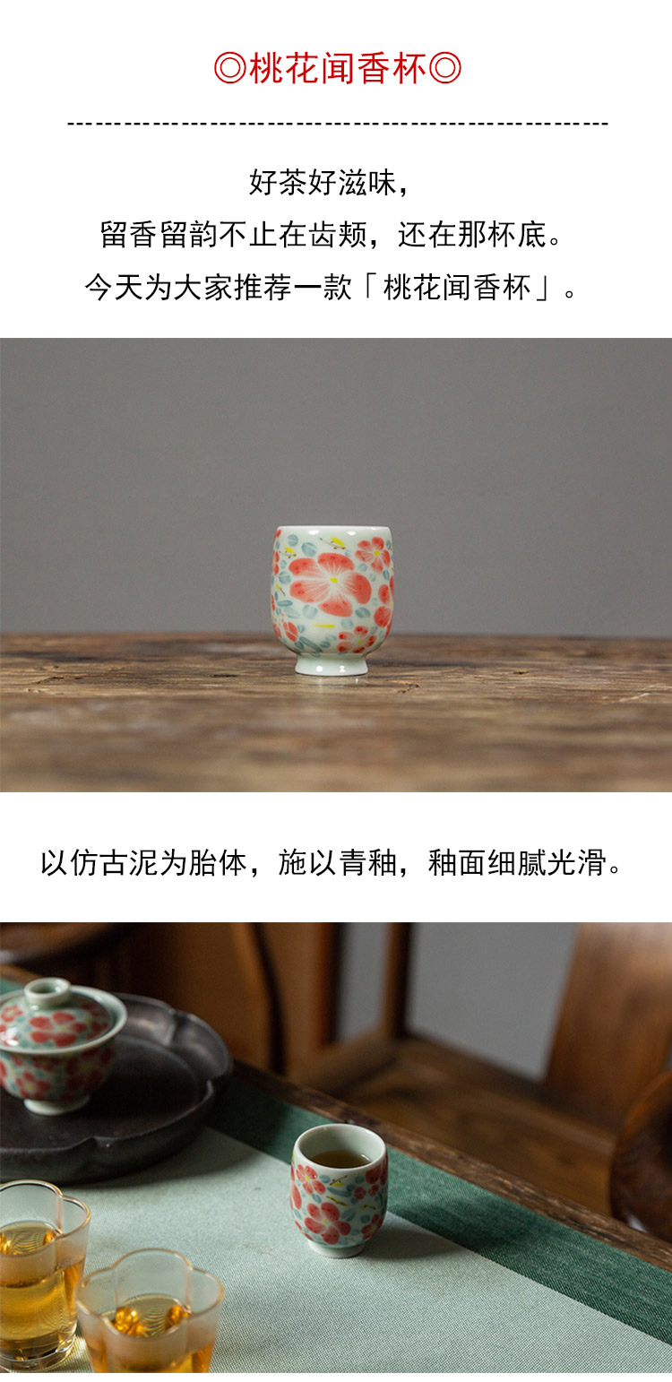 茶香记 桃花闻香杯品茗杯40ml仿古泥青釉娇艳桃花茶杯功夫茶具