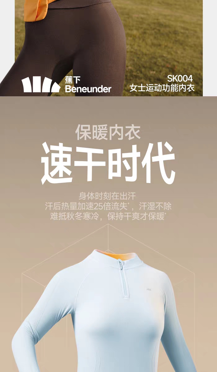 蕉下滑雪速干保暖内衣男女SK004紧身塑形跑步排汗运动功能套装