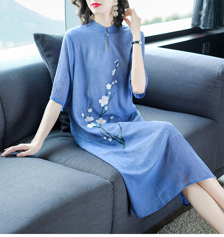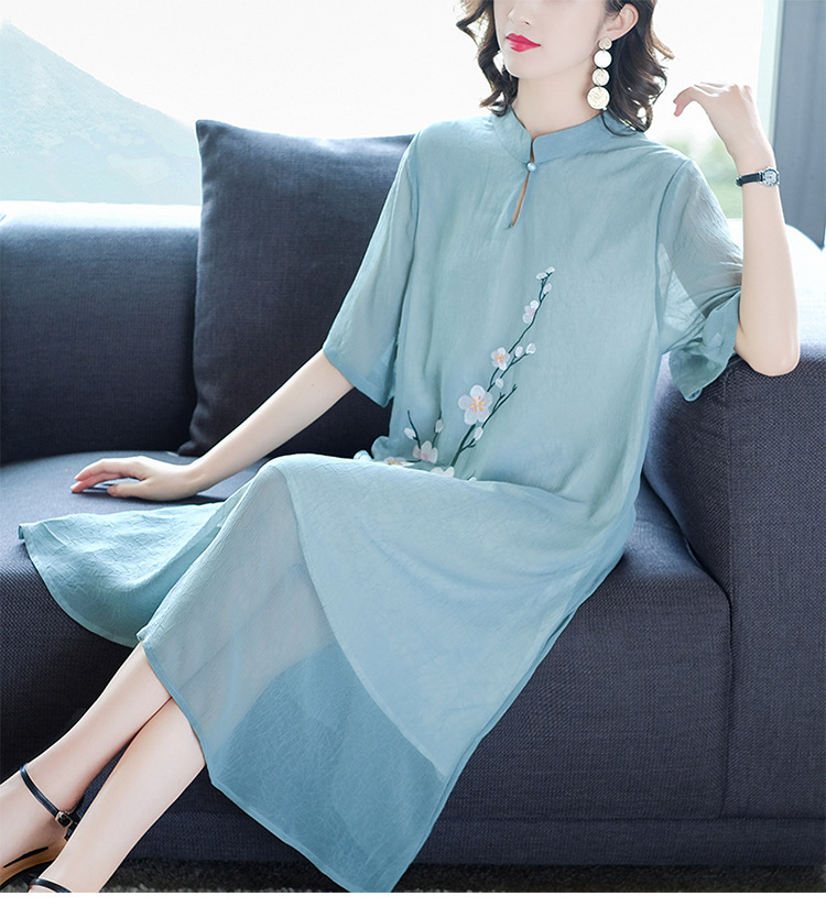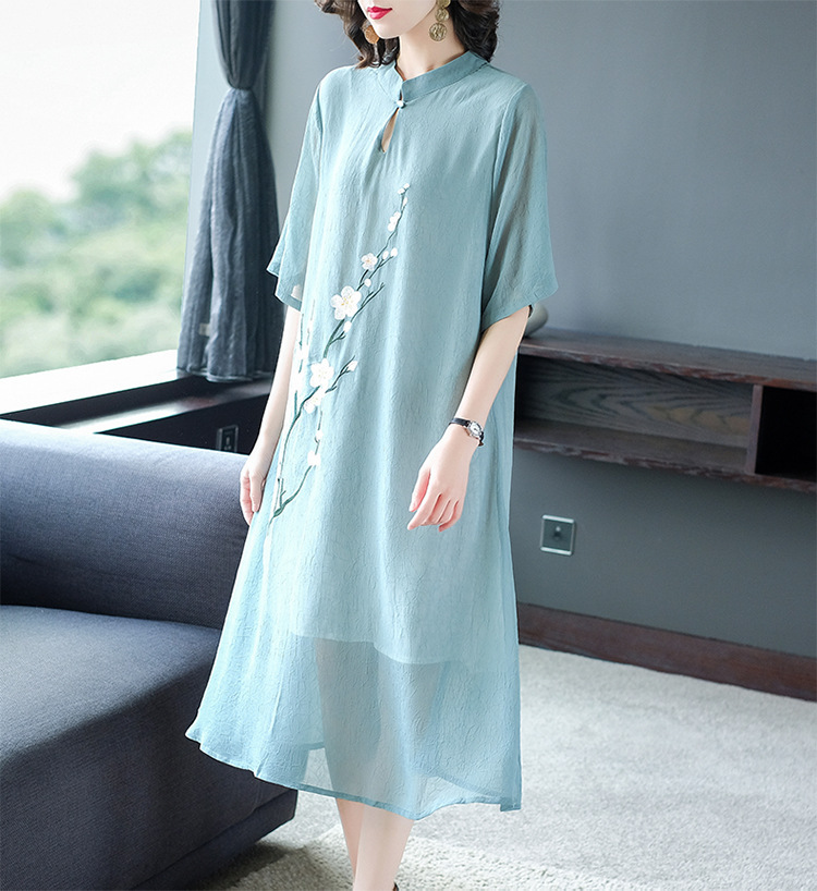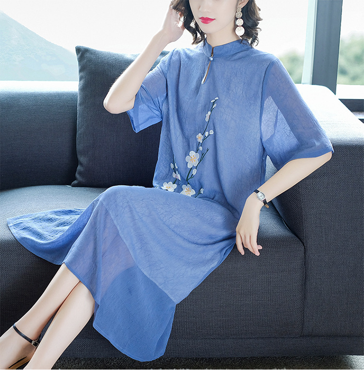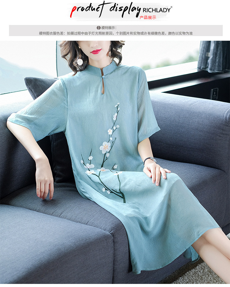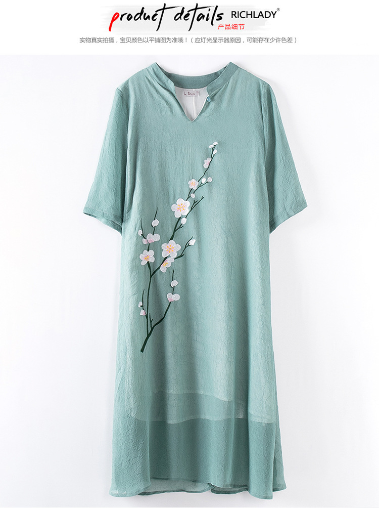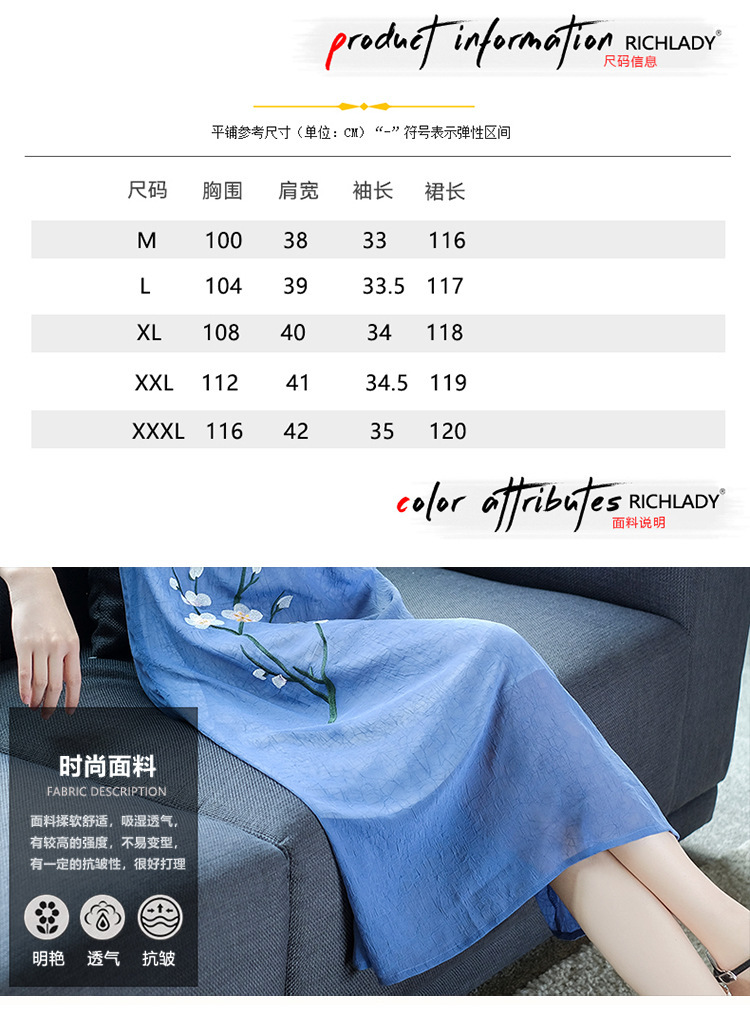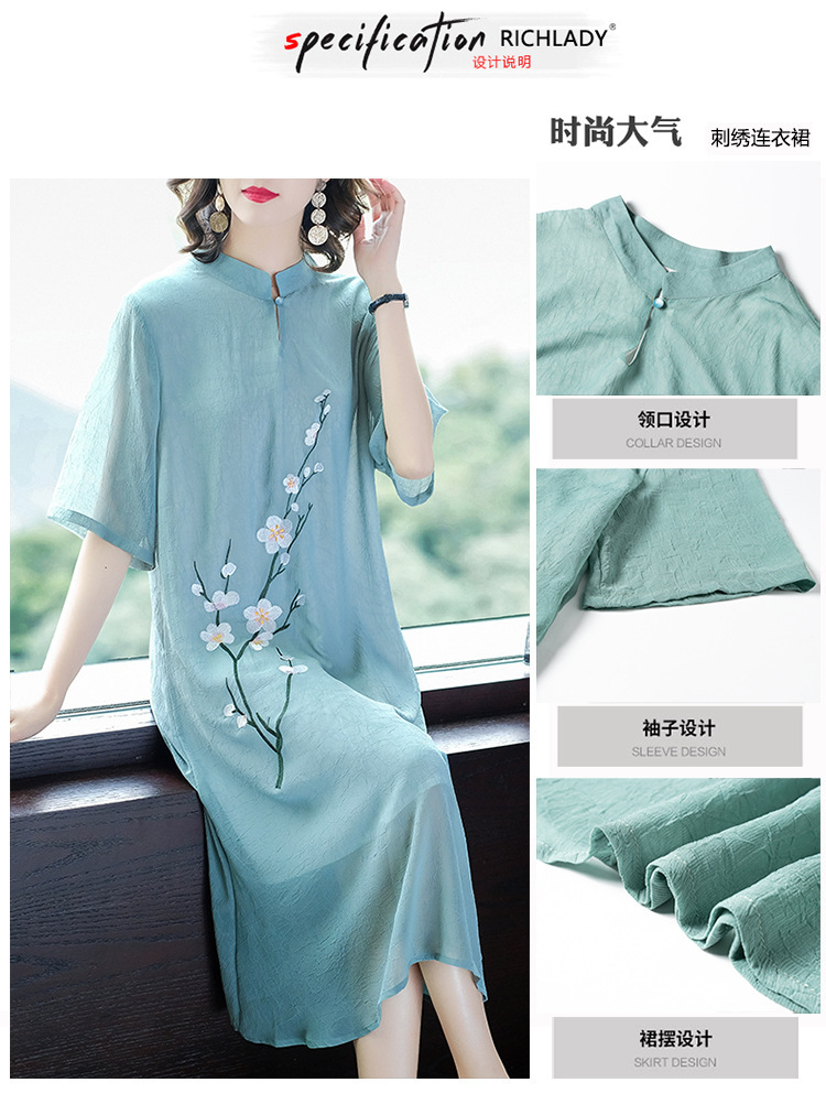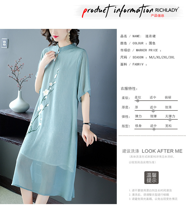 QQM 3602阔太太复古民族洋气大码旗袍式显瘦连衣裙