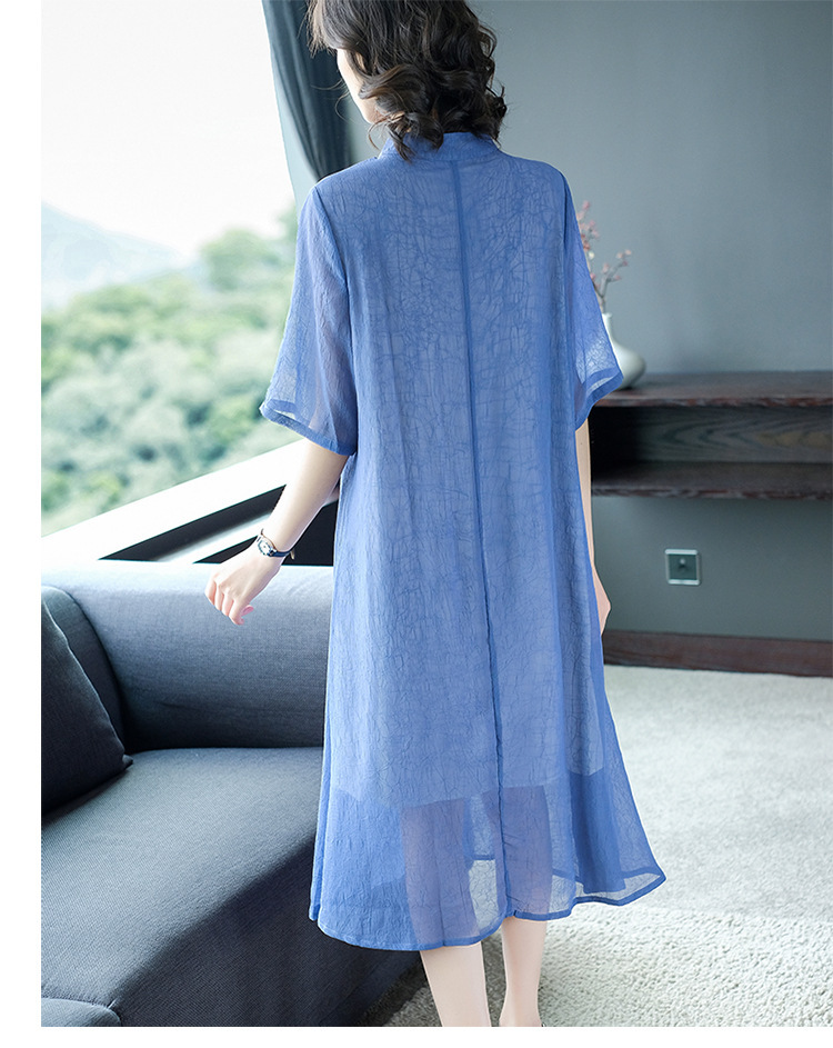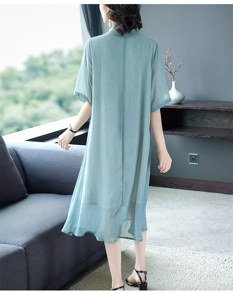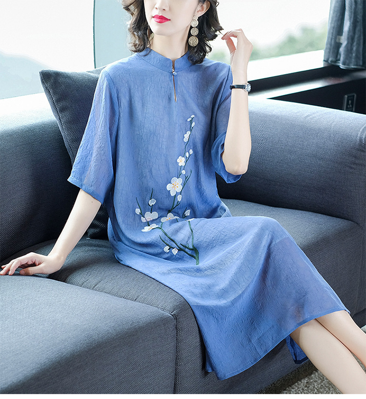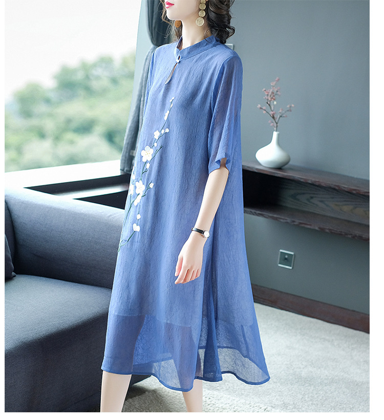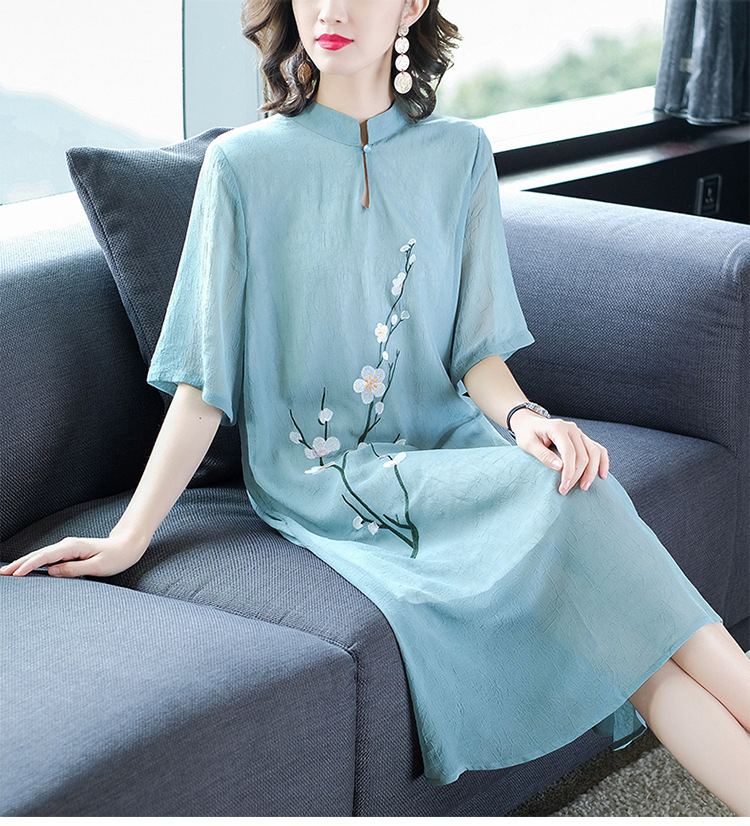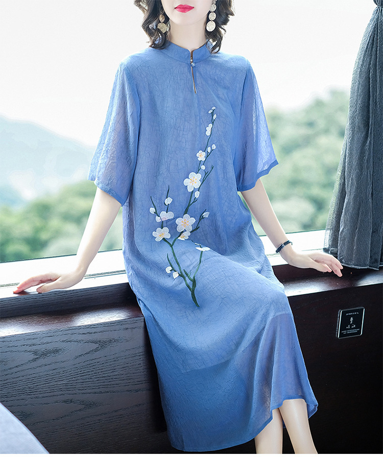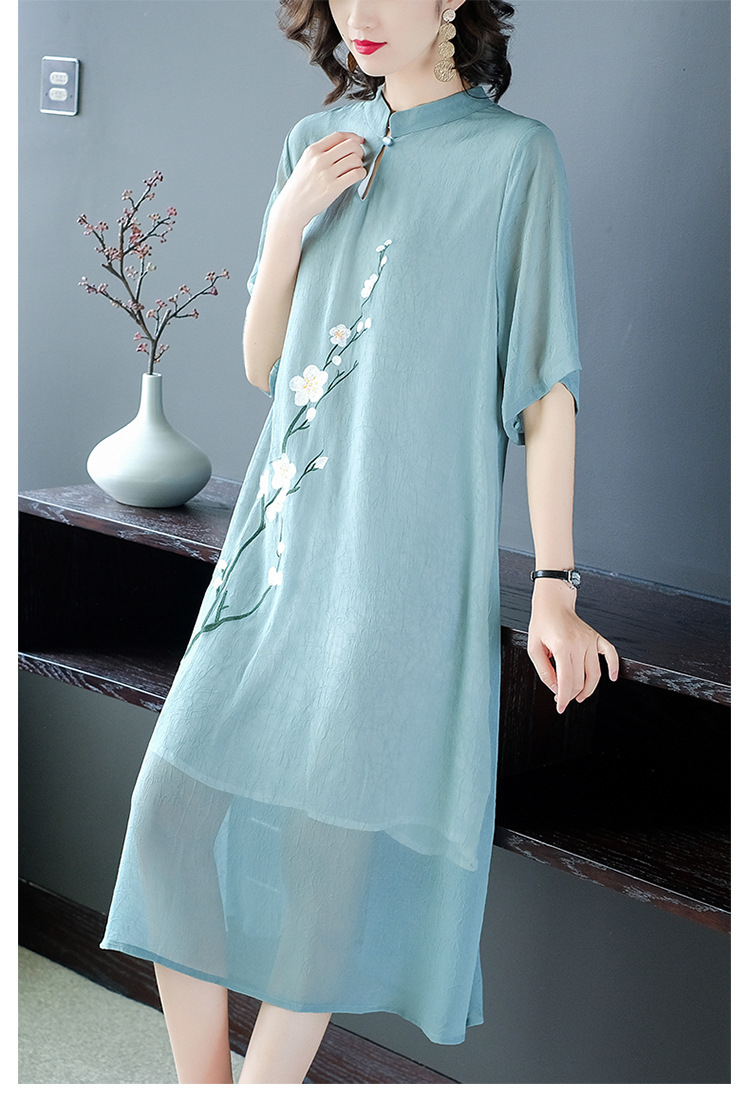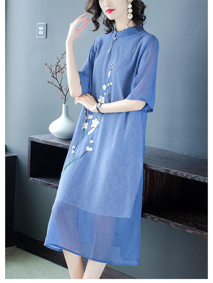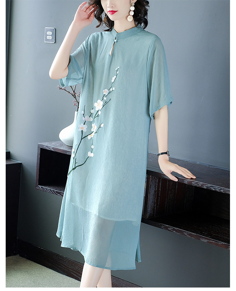 QQM 3602阔太太复古民族洋气大码旗袍式显瘦连衣裙