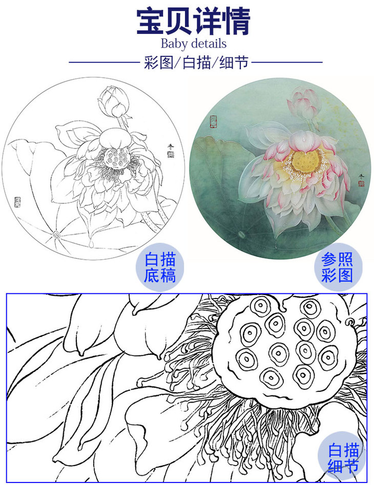 杨冬冬工笔花鸟白描底稿-荷花小品《轻语》-多种白描尺寸可选-HD03