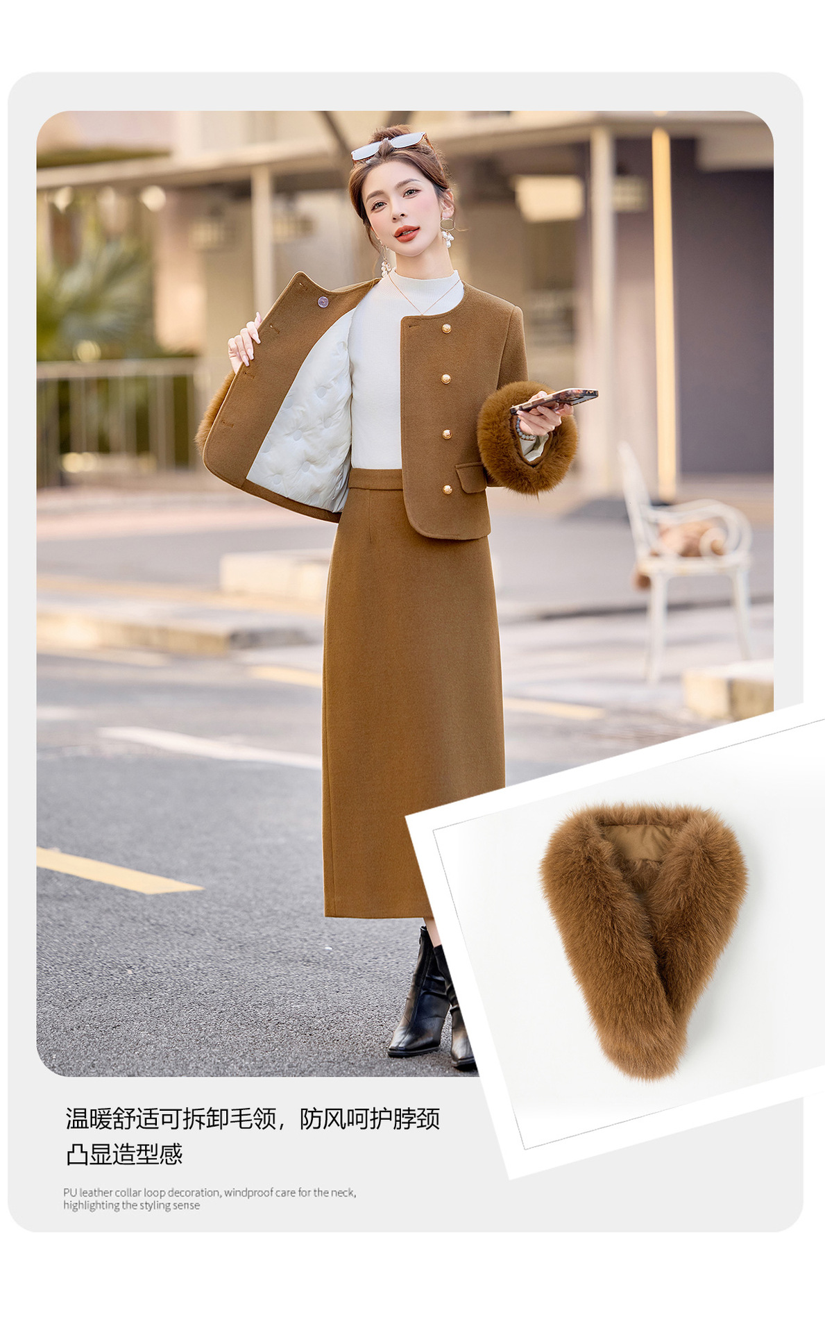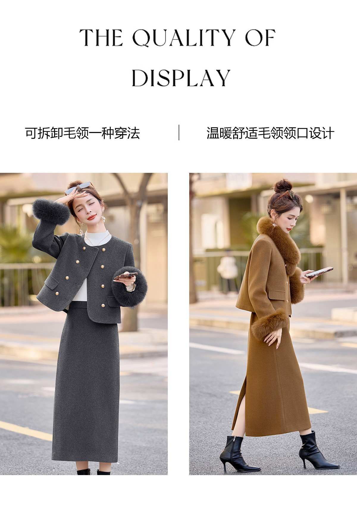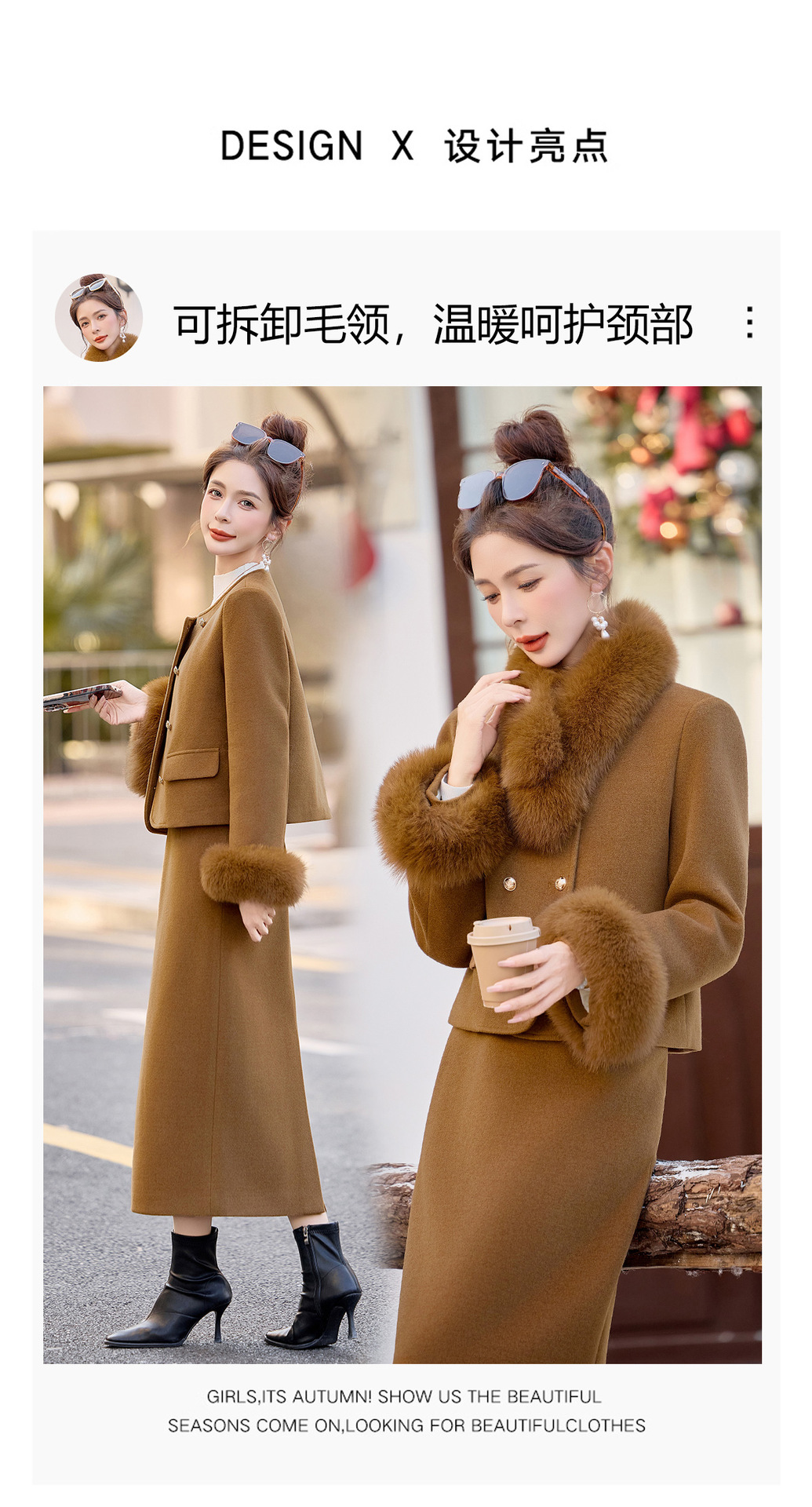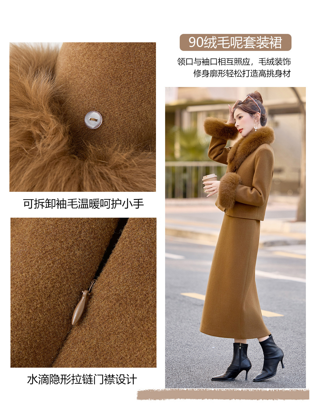 HR ZYQF31小香风套装羽绒服外套配半身裙两件套配真狐狸毛 商品图3