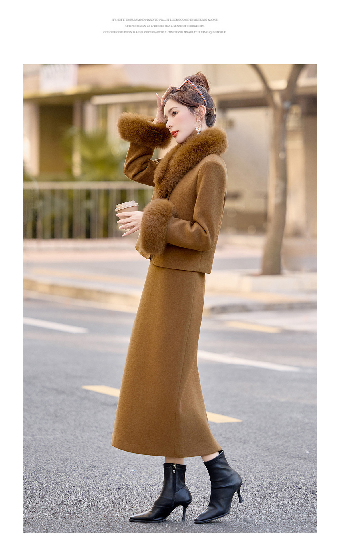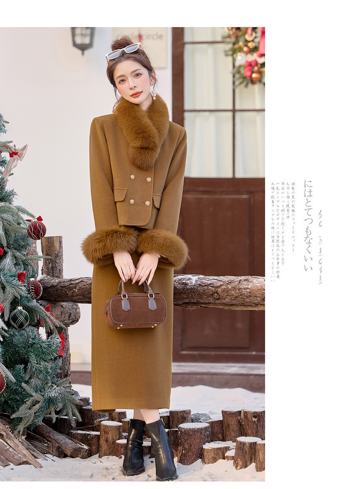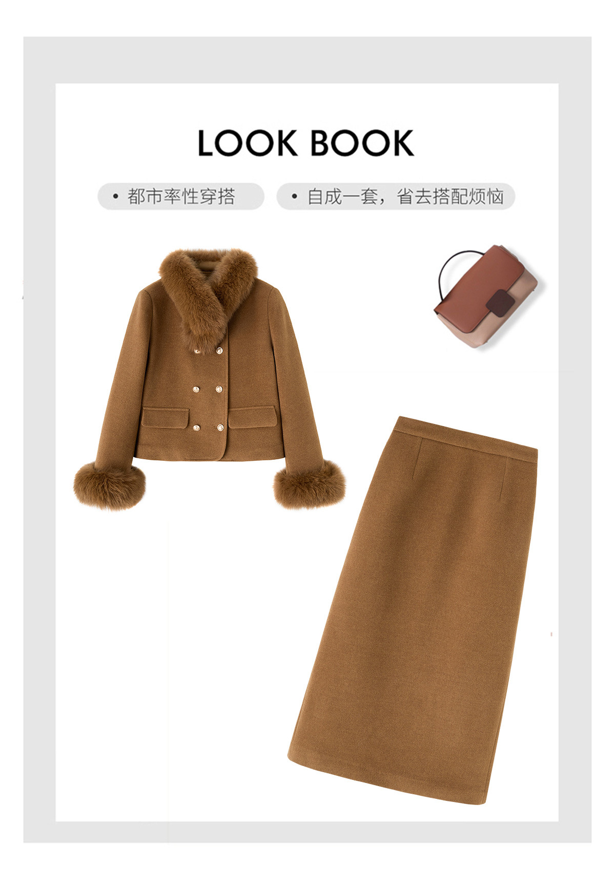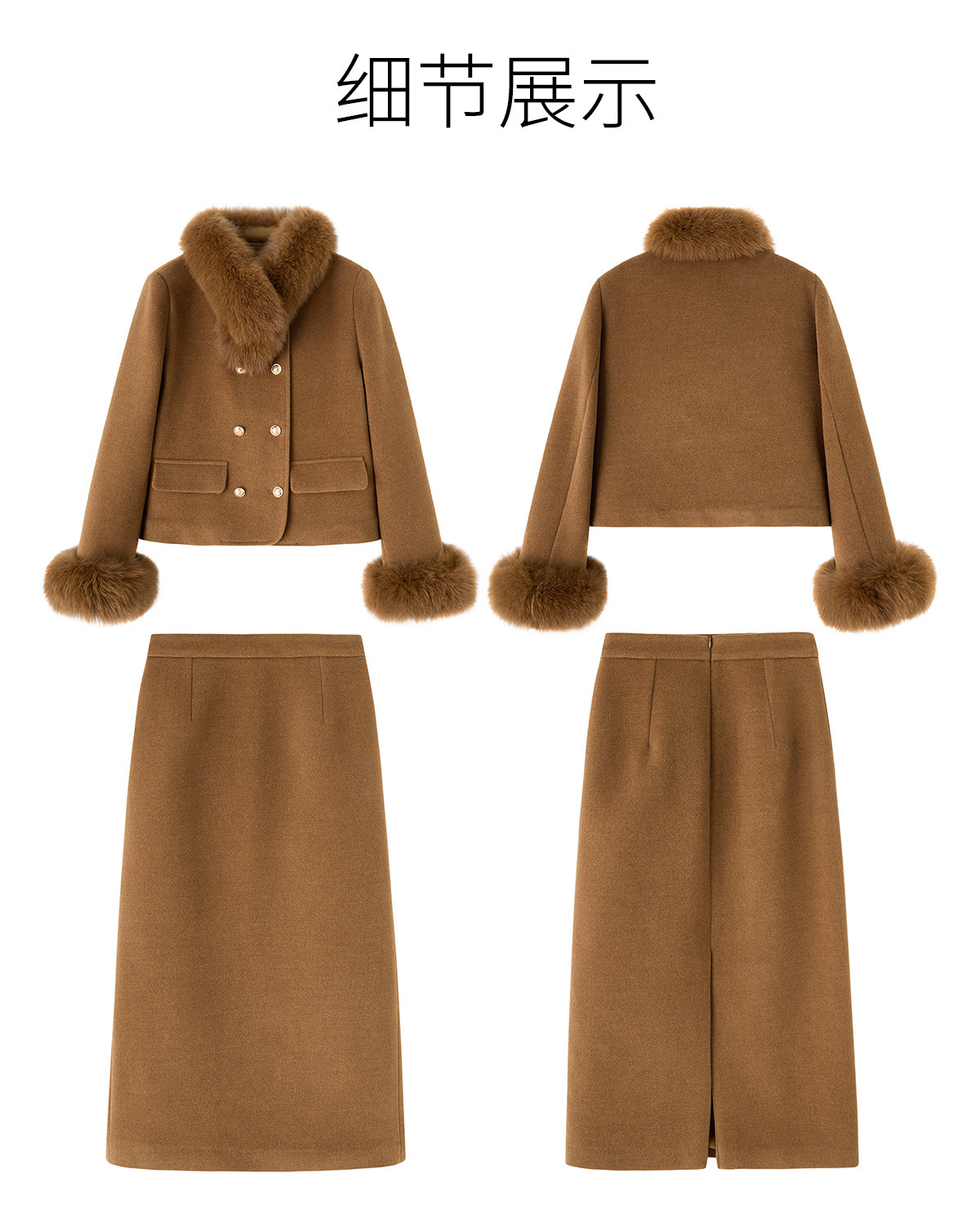 HR ZYQF31小香风套装羽绒服外套配半身裙两件套配真狐狸毛 商品图3