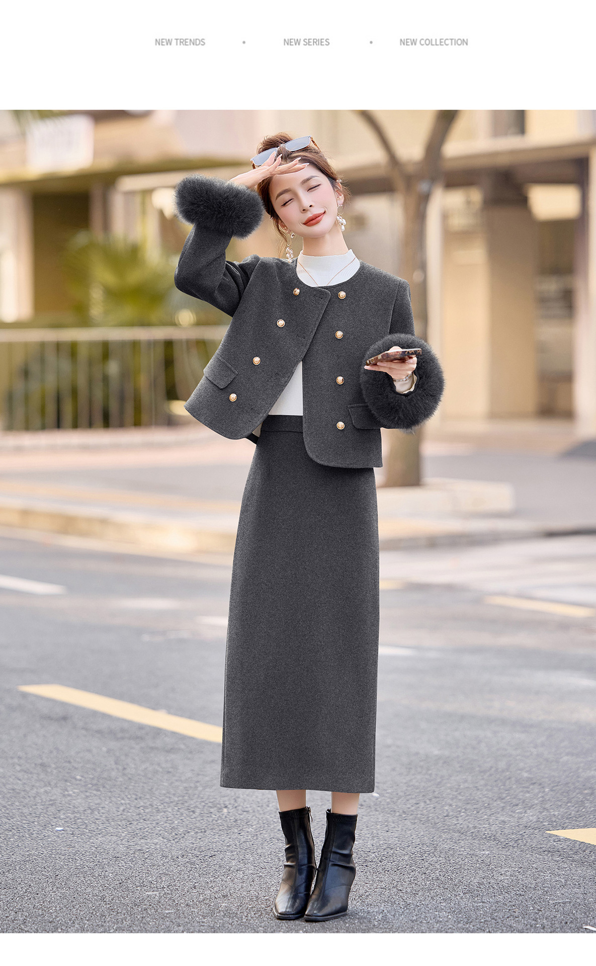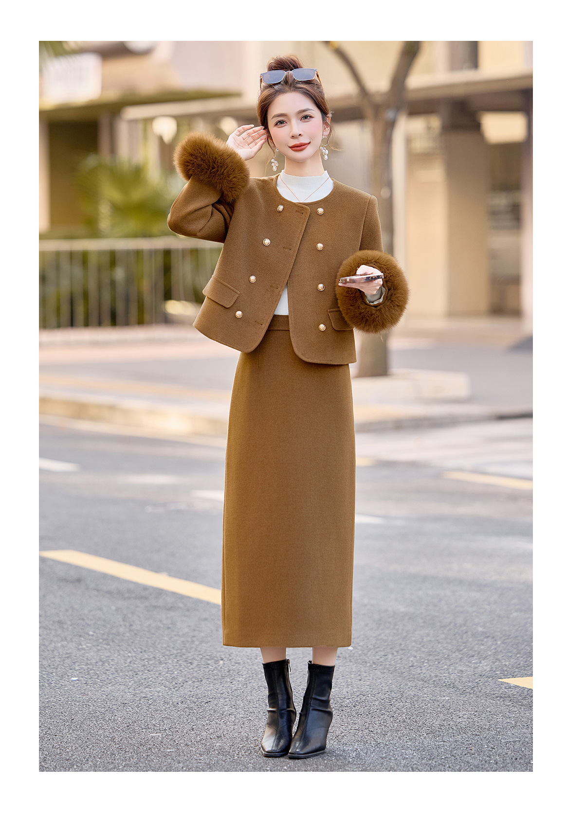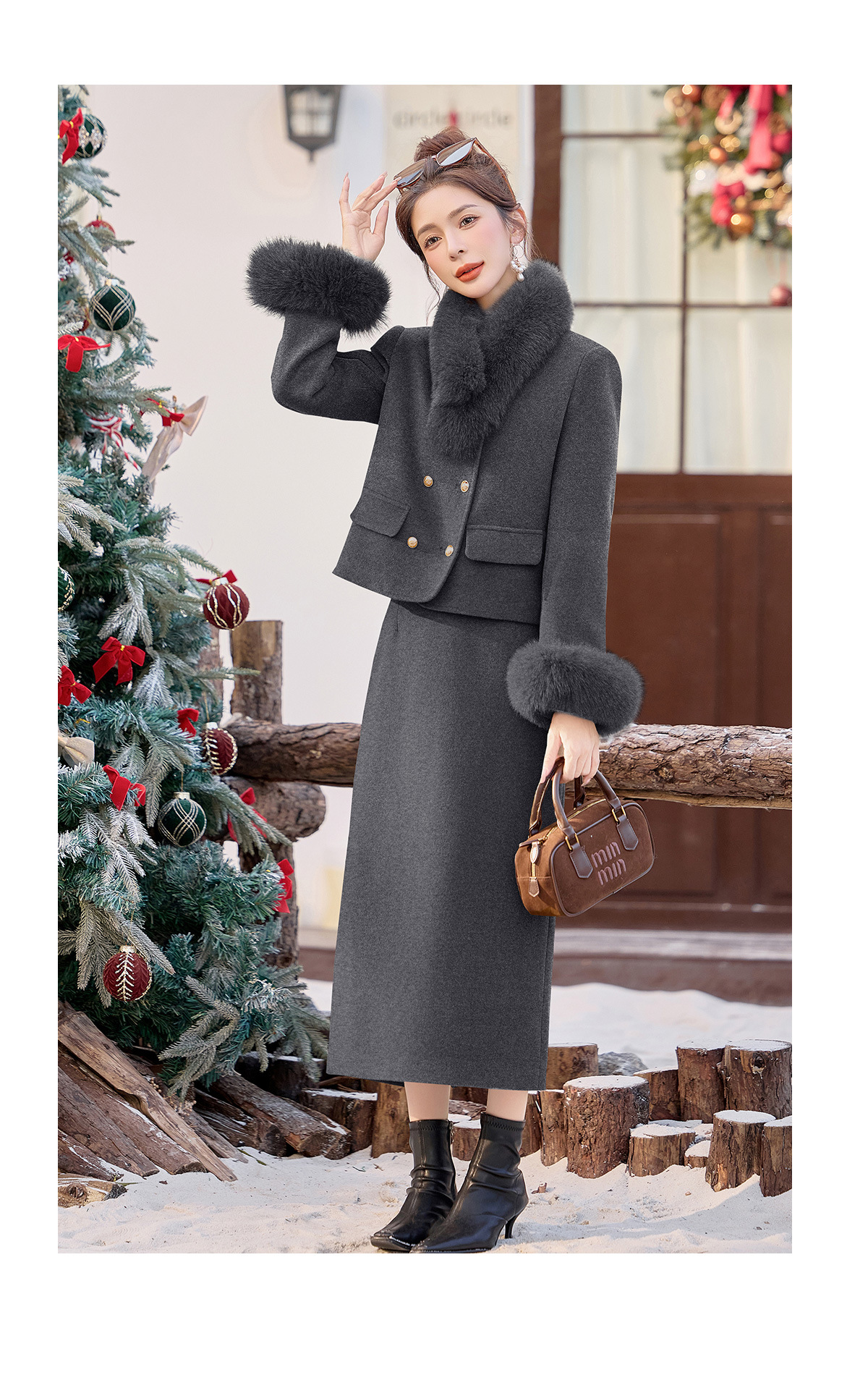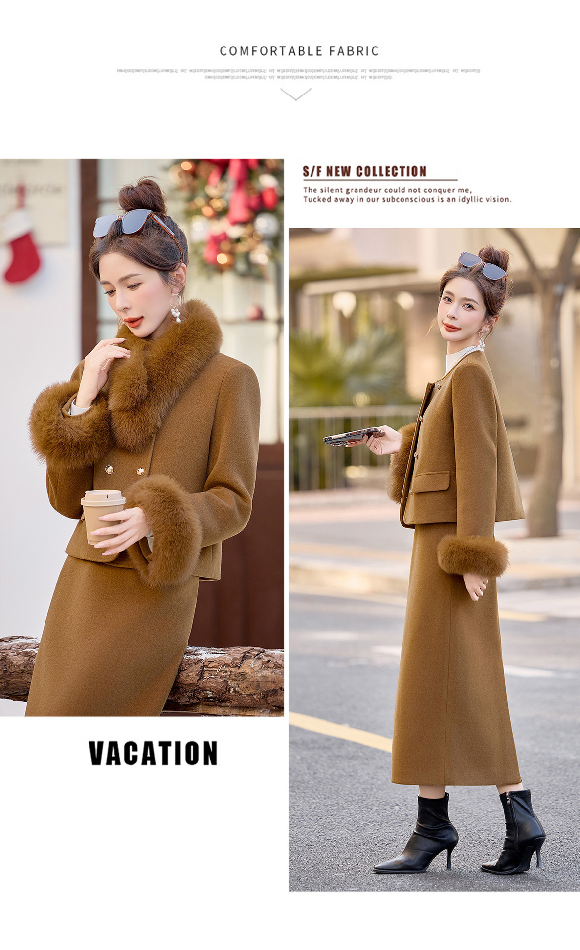 HR ZYQF31小香风套装羽绒服外套配半身裙两件套配真狐狸毛 商品图3
