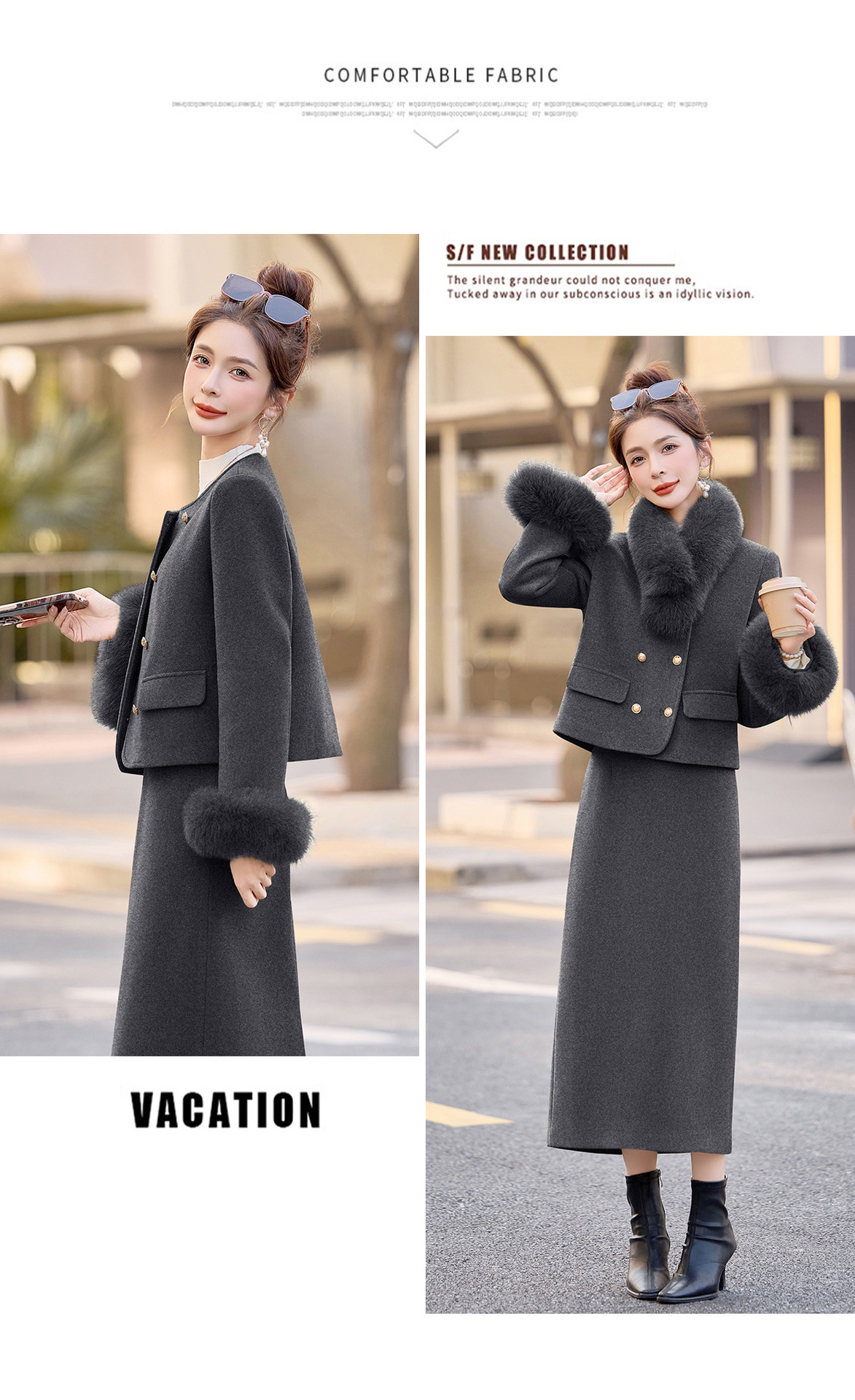 HR ZYQF31小香风套装羽绒服外套配半身裙两件套配真狐狸毛 商品图2