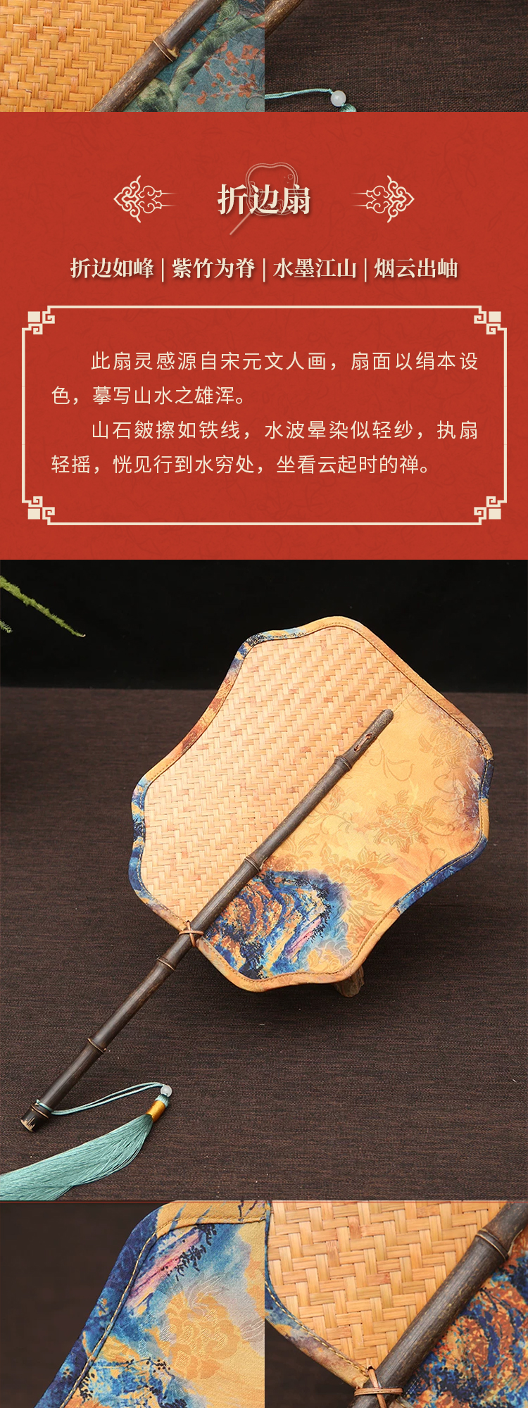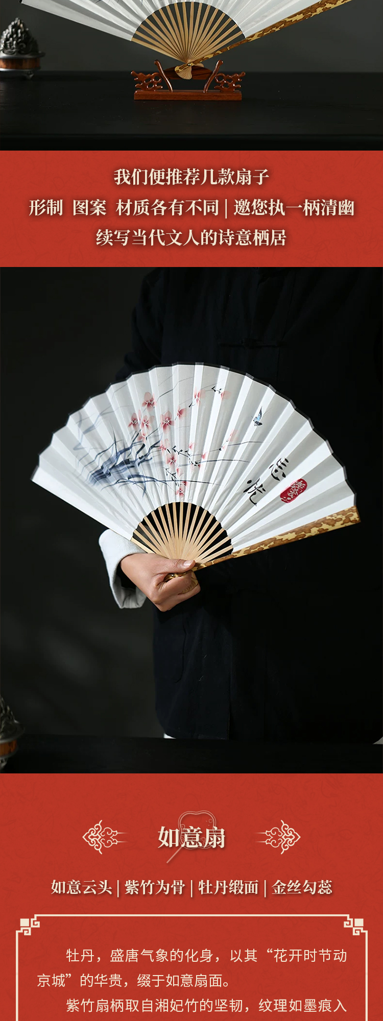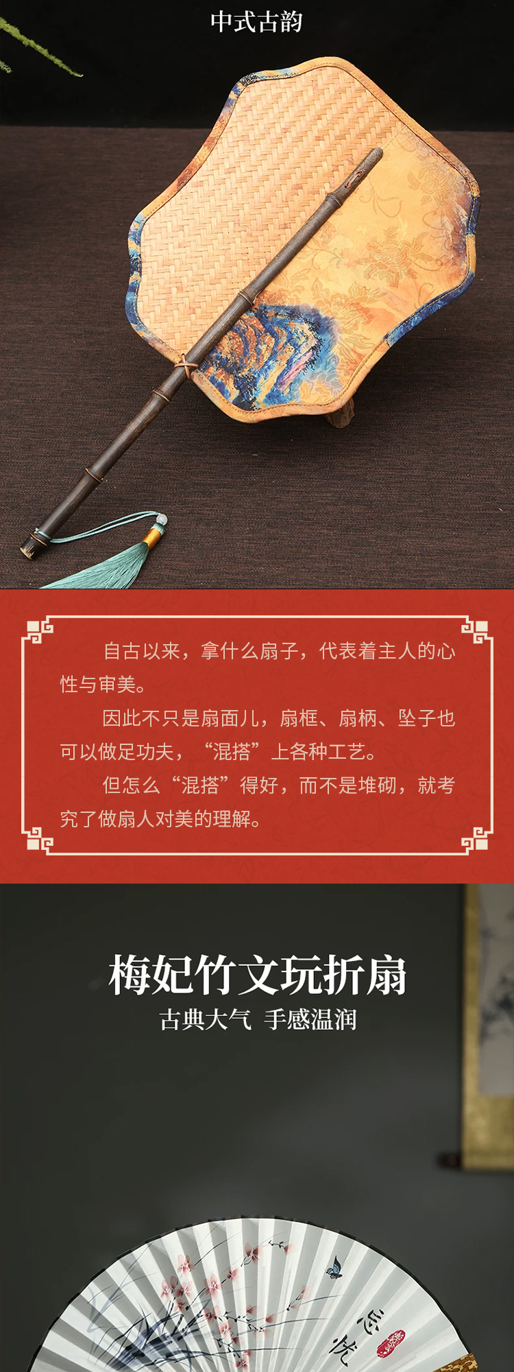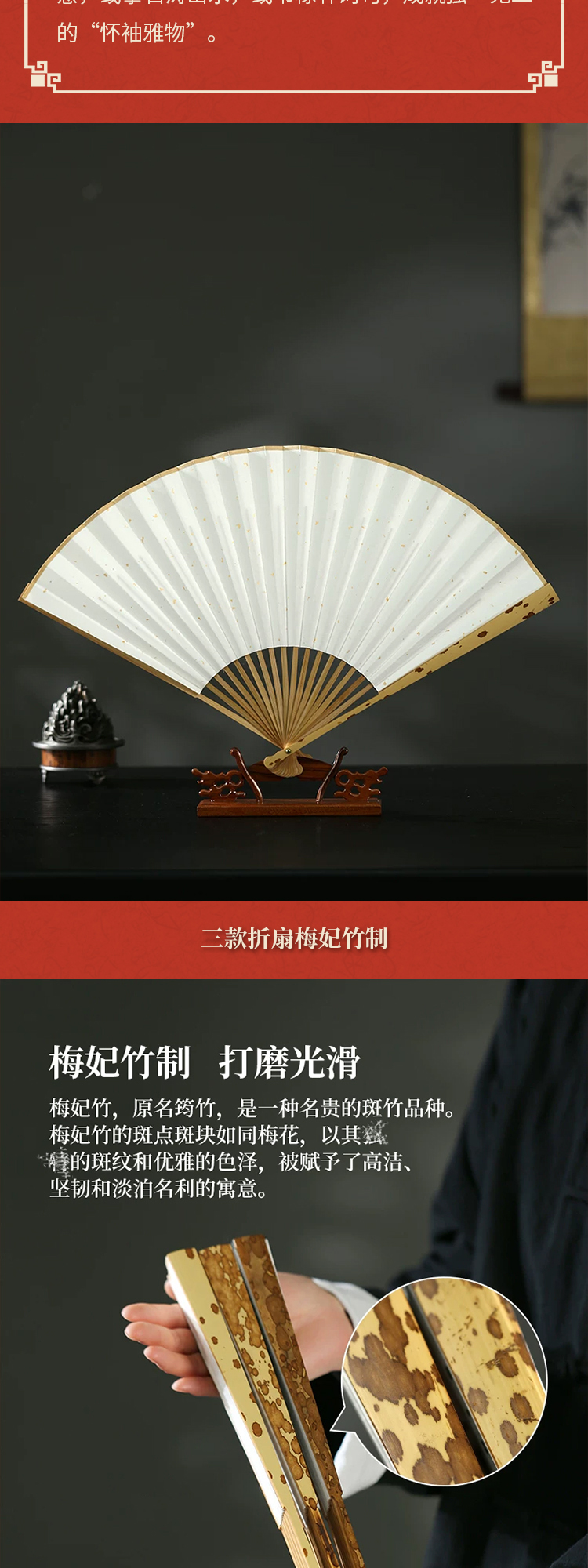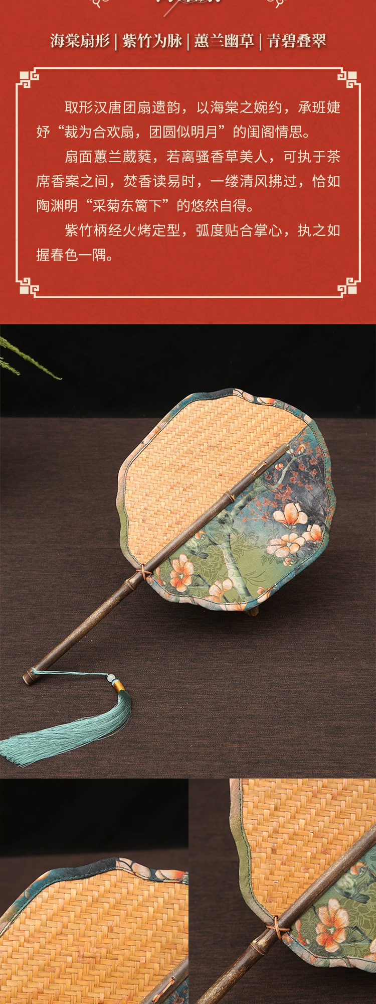 扇子 紫竹为骨缎面织锦 一扇藏尽东方美学 经典折扇 竹节为柄 萱草摇曳 花瓣流芳
