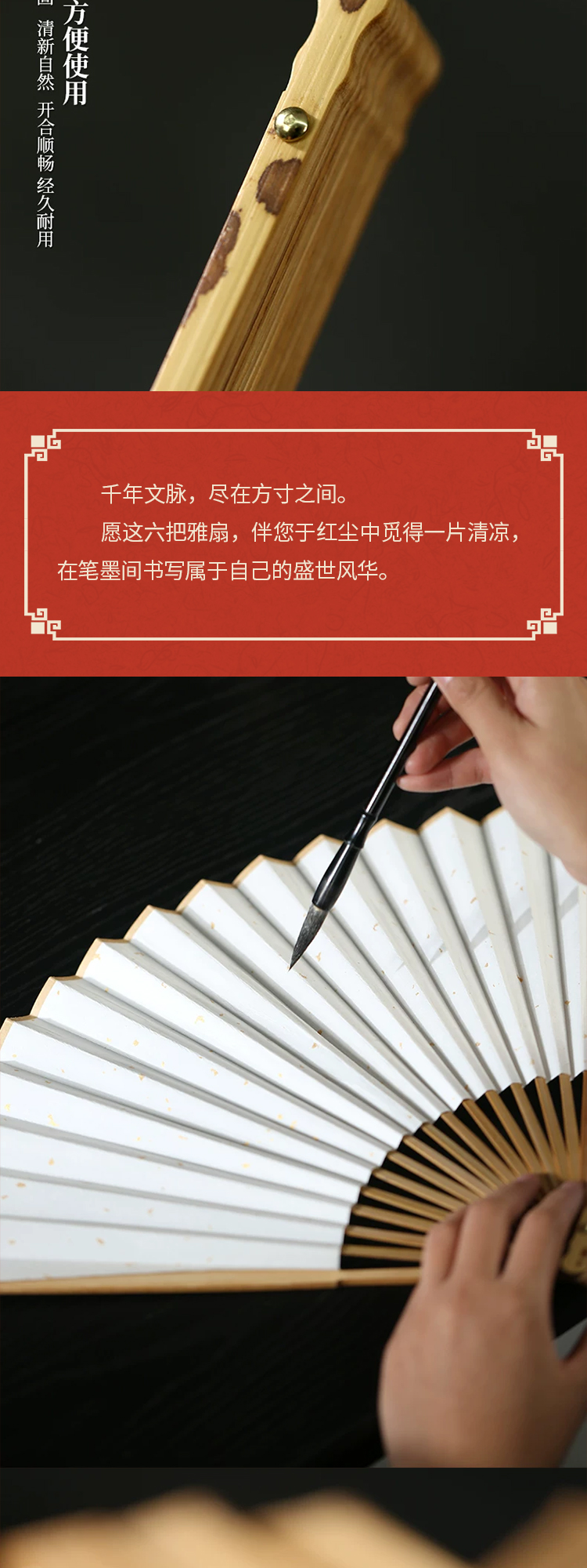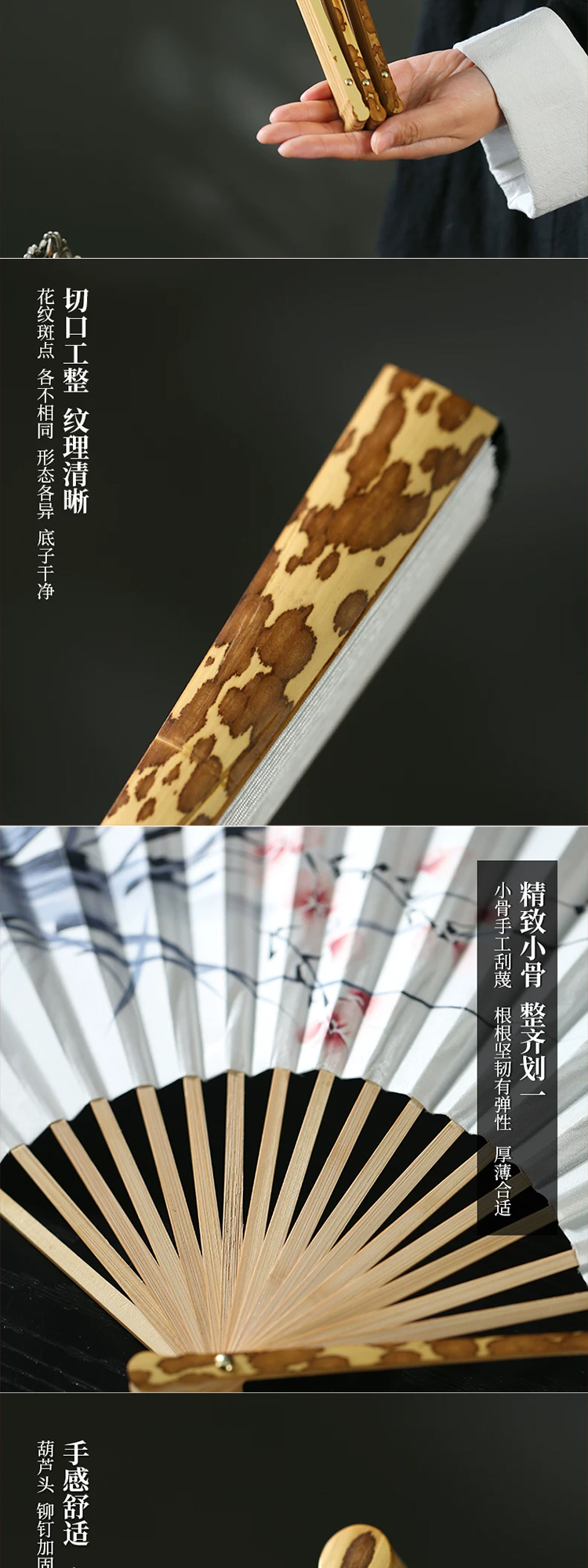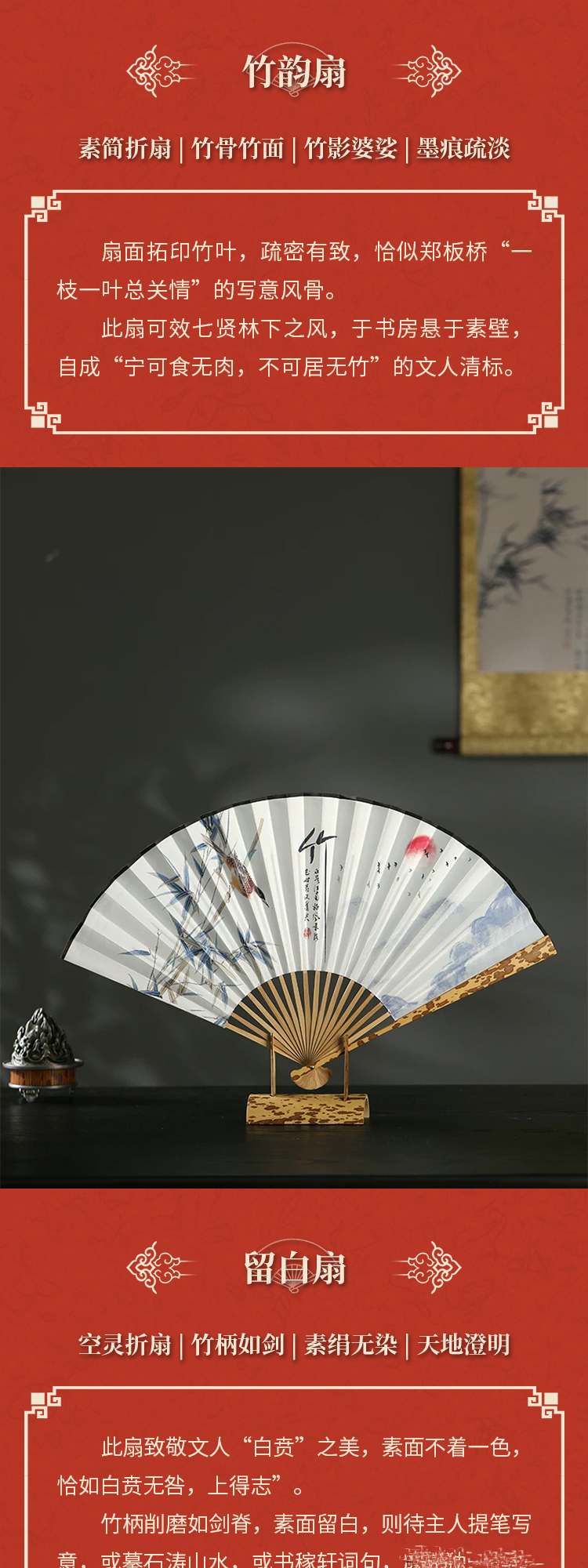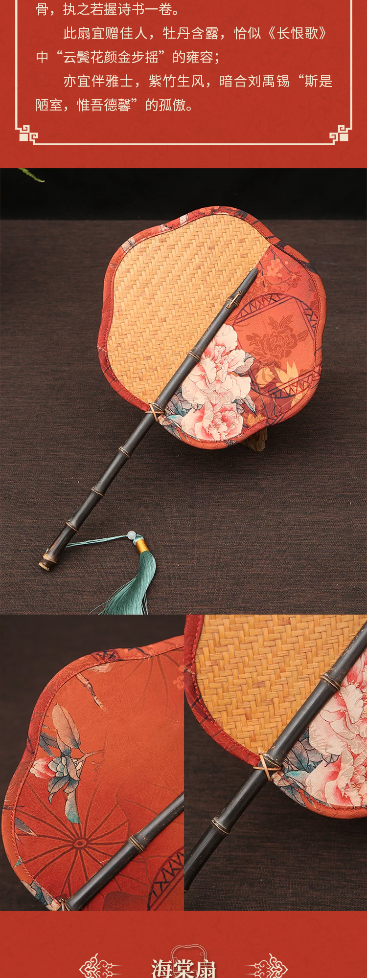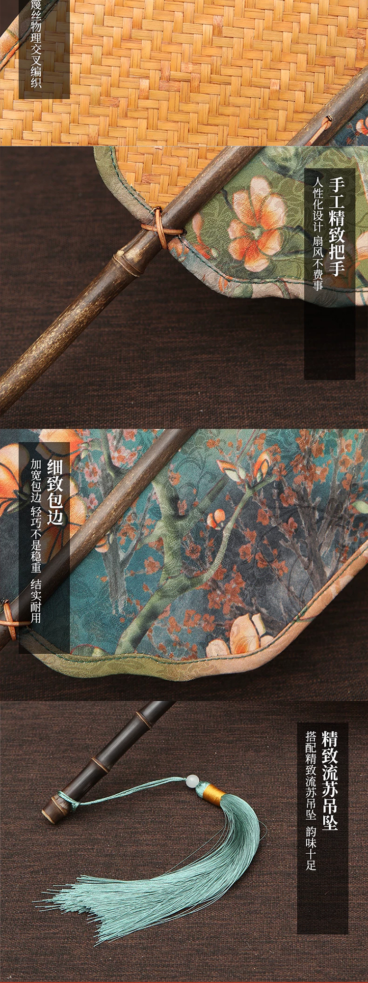 扇子 紫竹为骨缎面织锦 一扇藏尽东方美学 经典折扇 竹节为柄 萱草摇曳 花瓣流芳