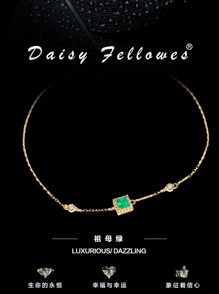 Daisy Fellowes黛西法罗 祖母绿腕饰 18K金彩宝轻奢钻石手链女