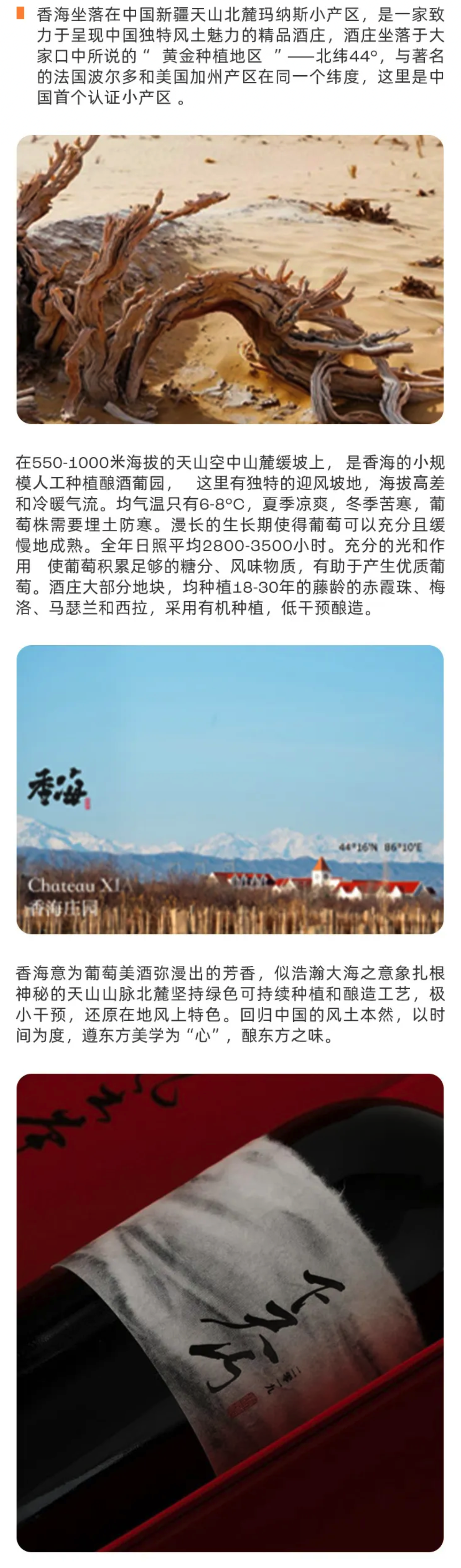 新疆新秀——香海庄园,坐落海拔超500米的"黄金种植区"超少见130年藤龄酿造的赤霞珠干白,柑橘青苹果结合草本香气限量实验酒款,惊喜愉悦感,神似清酒口感!