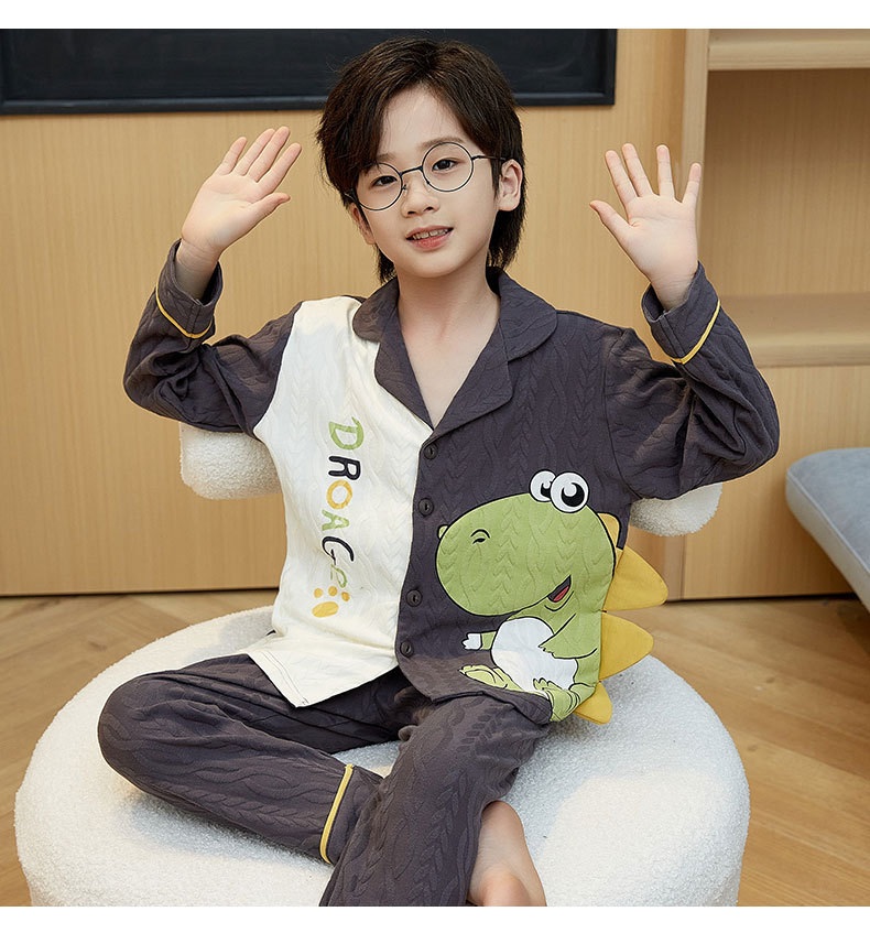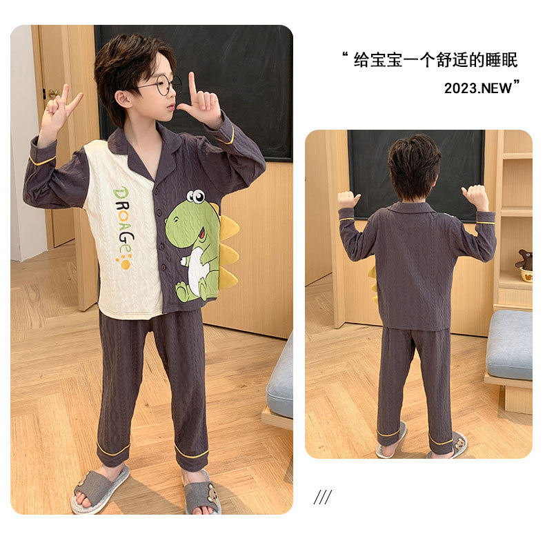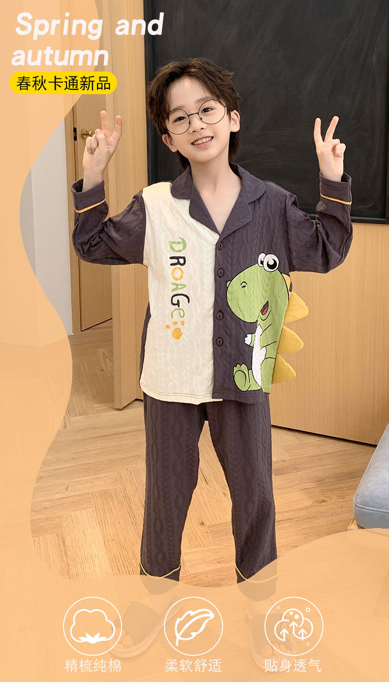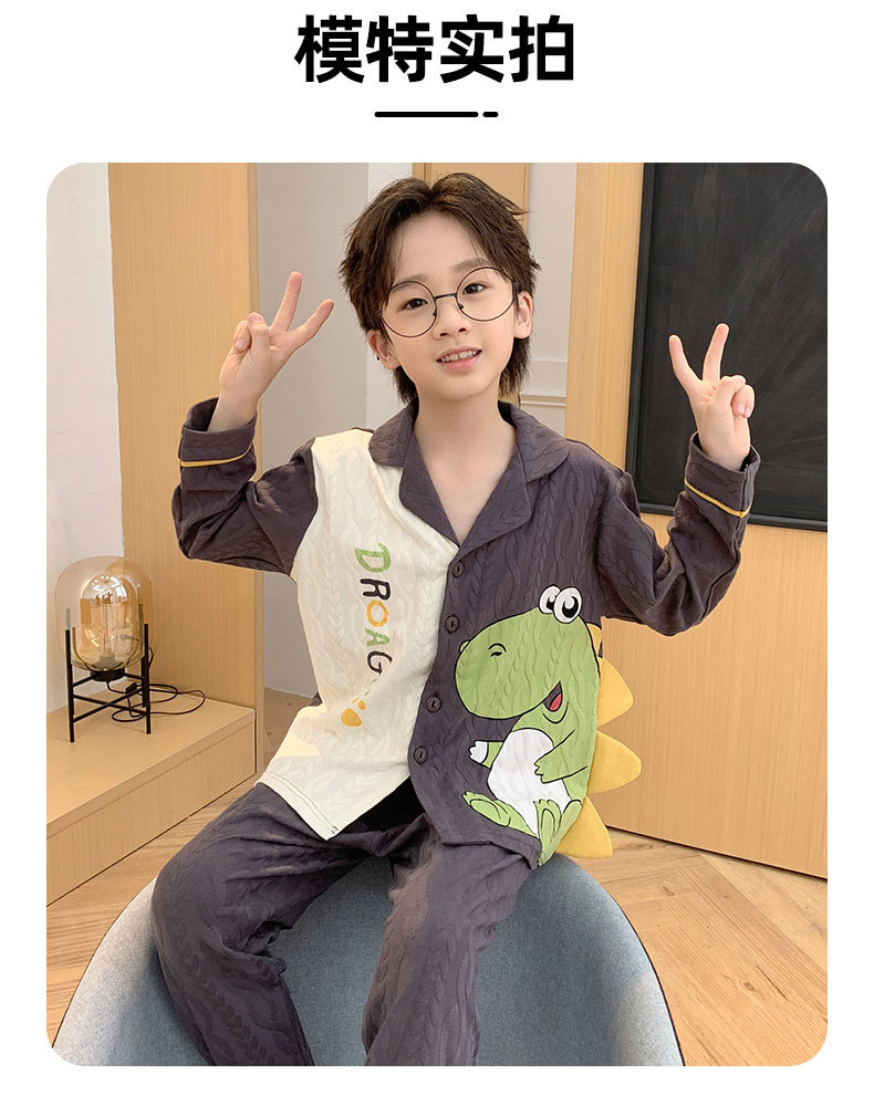 【秋季新品,纯棉长袖儿童睡衣套装,舒适柔软,透气保暖】儿童睡衣男童秋款纯棉 新款春秋季长袖 6-18岁男孩青少年套装 睡衣家居服-QQ