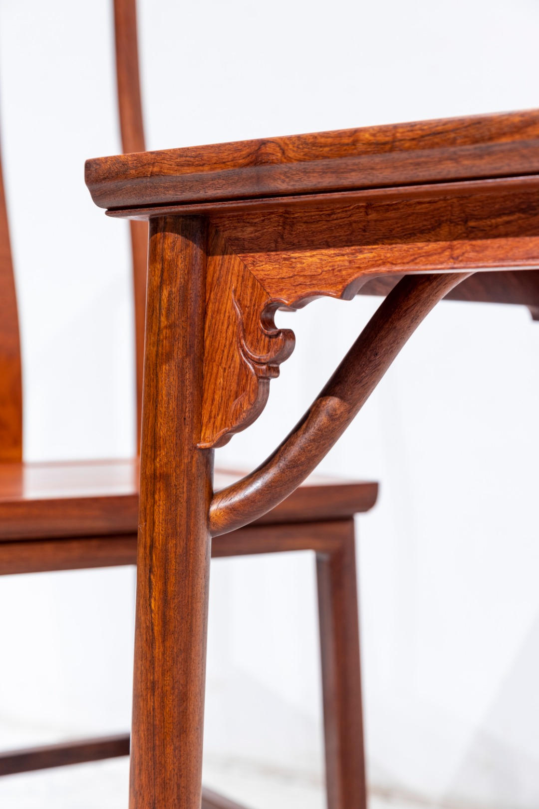 攒框镶心独板,起落堂踩鼓面,边抹压线起混面,椅盘以下紧贴平直横枨无牙子,造法如棱台平座,与传统建筑结构渊源极深,但在传统椅类中并不多见。