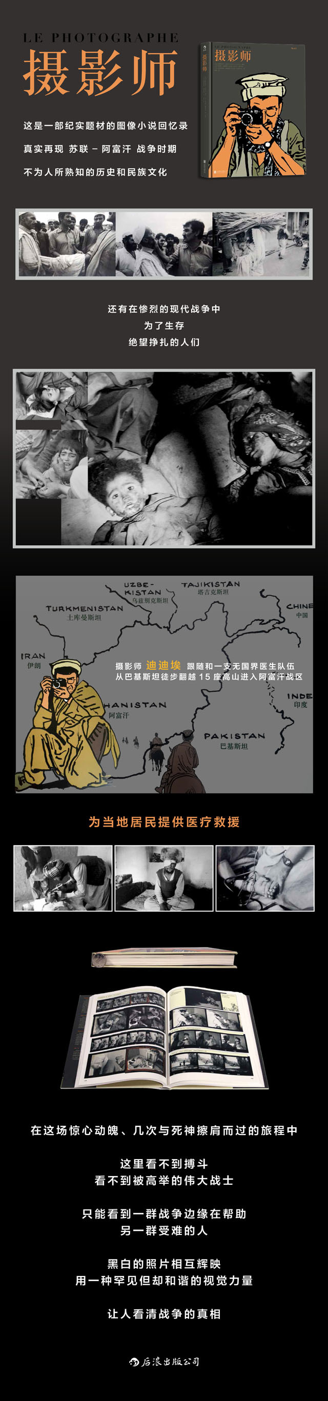 本书涉及的主题非常广泛:信仰、战争、艺术、爱情……不管是对记者、医生,还是对想了解国际关系和历史文化的人来说,都至关重要。美国知名综合类博客Boing Boing是这样评论的:《摄影师》不仅是一本伟大的摄影书和漫画书,更是一部伟大的小说,一部伟大的喜剧,一部伟大的回忆录和一部伟大的历史文本。