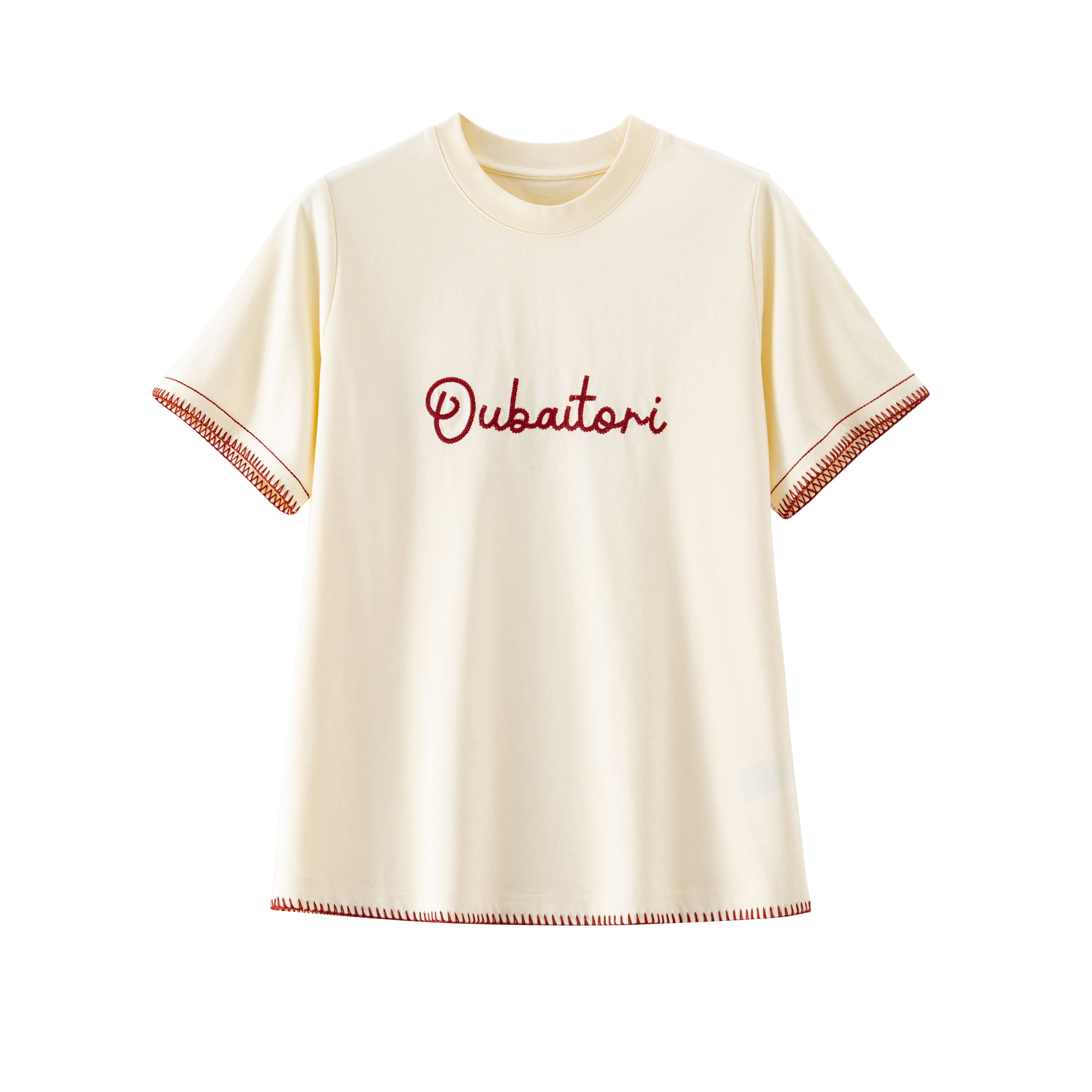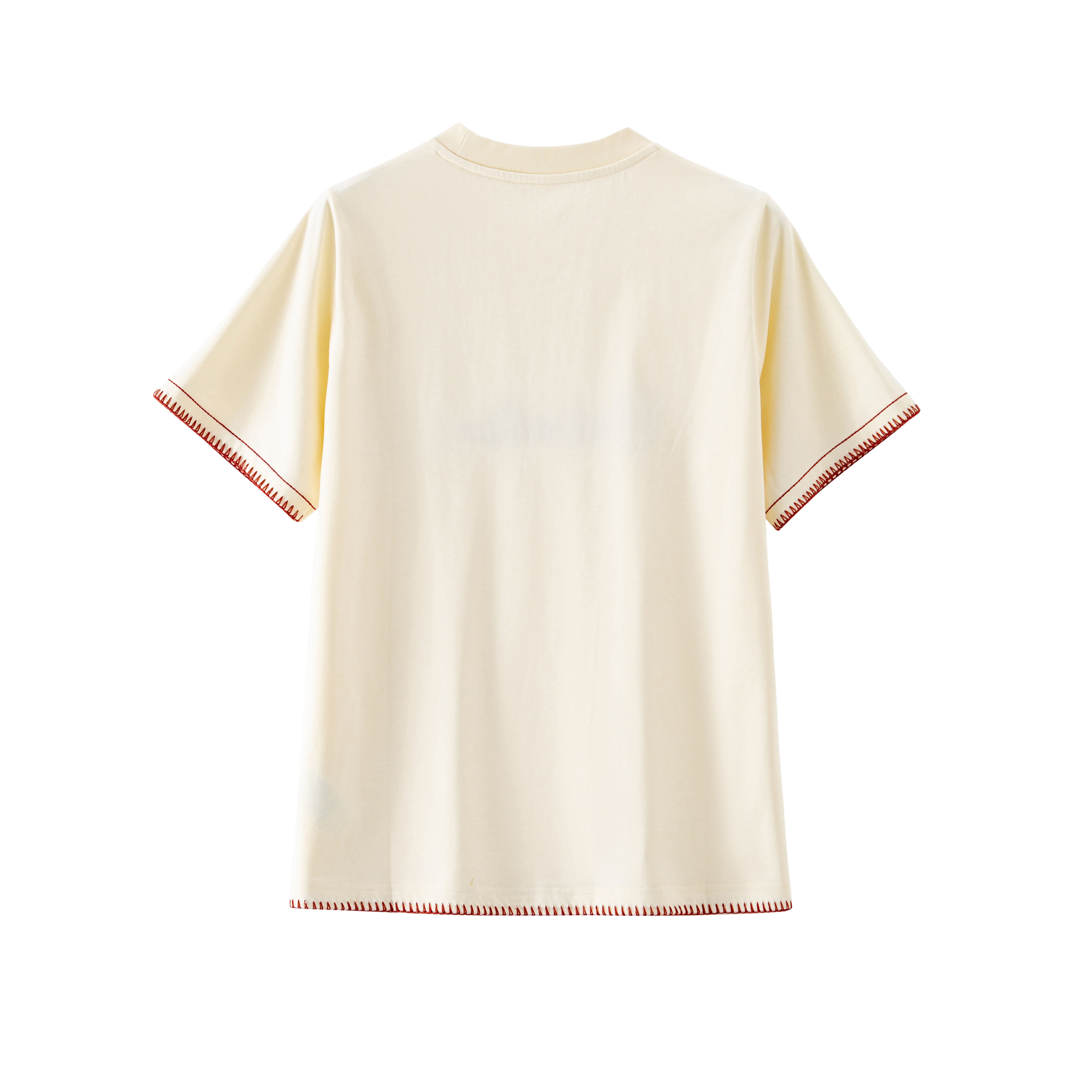 「K」洛诗琳45729复古立体字母刺绣T恤2025夏季新款正肩上衣10340