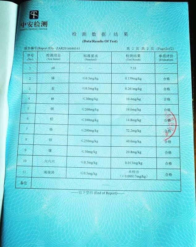 下面两张图分别为灌溉水及土壤检测报告