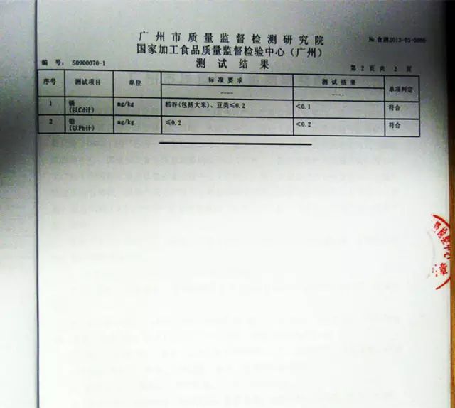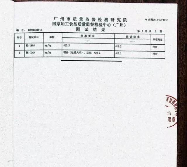 大米重金属检测报告