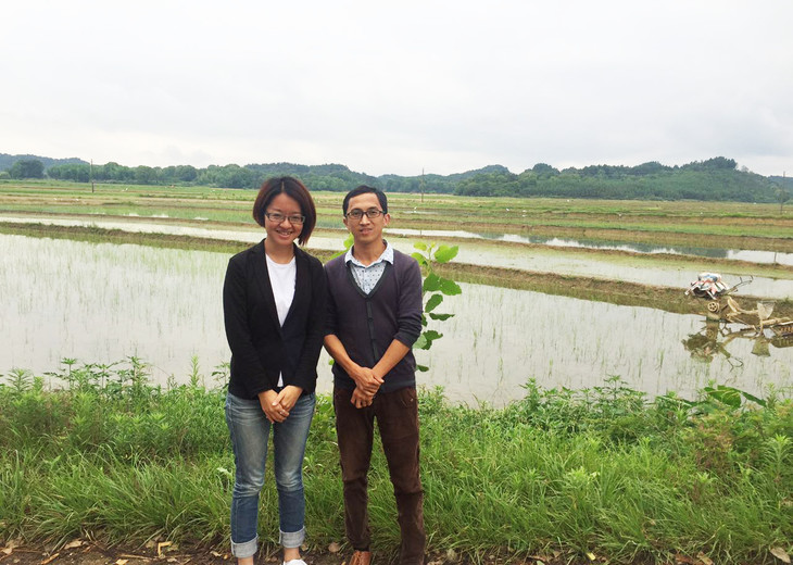 卫芸与姚社长在稻田边